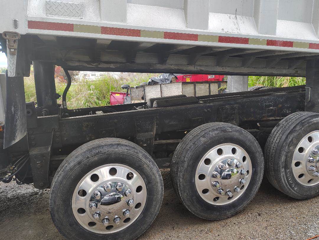 1999 Freightliner Quinn-Axle (5 Axle) Dump Truck, Caterpillar C12 6 Cylinder 4 Stroke Diesel Engine (Documented Overhaul 5 Years Ago), 251,000 Miles Since Rebuild, 430 HP, 8 Speed Eaton Fuller Manual Transmission, New Compressor, New AC Compressor & Hoses, New Radiator, Newer Tires, New Ram, New Brakes, Alfab, Inc. Aluminum 21 ft. x 8 ft. x 6 ft. Box With Stainless Steel Bed Liner and Plywood Sides, Electric Tarping System, New Tarp, New Hoses, Factory Dump, New Bushings In Suspension, Grain Door In Rear, Pulley System Lifts Mud Flaps, Aluminum Wheels, Wheelbase 270 Inches, GVWR 80,000#, Front 16,000#, 3 Tag Axles 13,000#, 2 Drive Axles 12,500#, Differential Lock on Drive Axles, Engine Brake, Cab Has Air Ride Leather Seat, Leather Interior, Heated & Power Mirrors, Custom Stereo, CB Radio System,