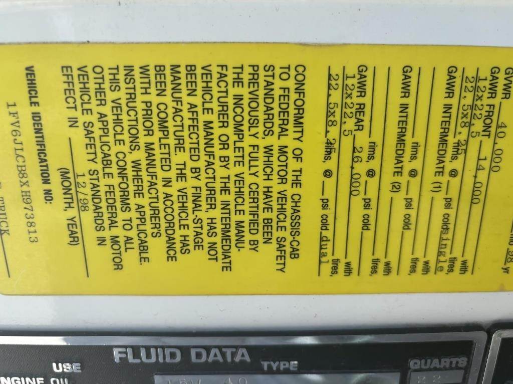 ***Buy It Now Price: $44000*** Location: Cascade, IA Cummins Diesel Powered Motor, Allison Automatic Transmission, GVWR: 40000LB, 14000LB Front Axle, Darley 1250 GPM Pump, 1000 Gallon Poly Tank, 3 Intakes, 6 Discharges, Deck Gun, Pump Tested, Multiple Door Storage, Mounted Removable Ladder, 4 Passenger, Enclosed Cab, Heat and A/C, 12R22.5 Front Tires and Rears, Pump Hours Shown: 208, VIN: 1FV6JLCB8XH973813 Miles Shown: 17550