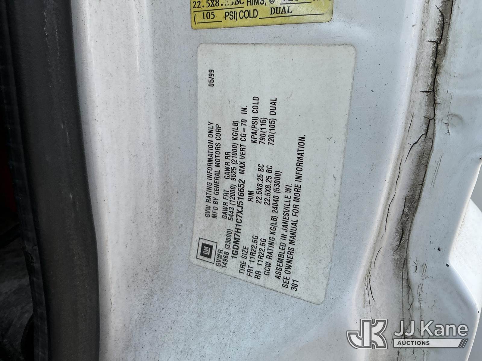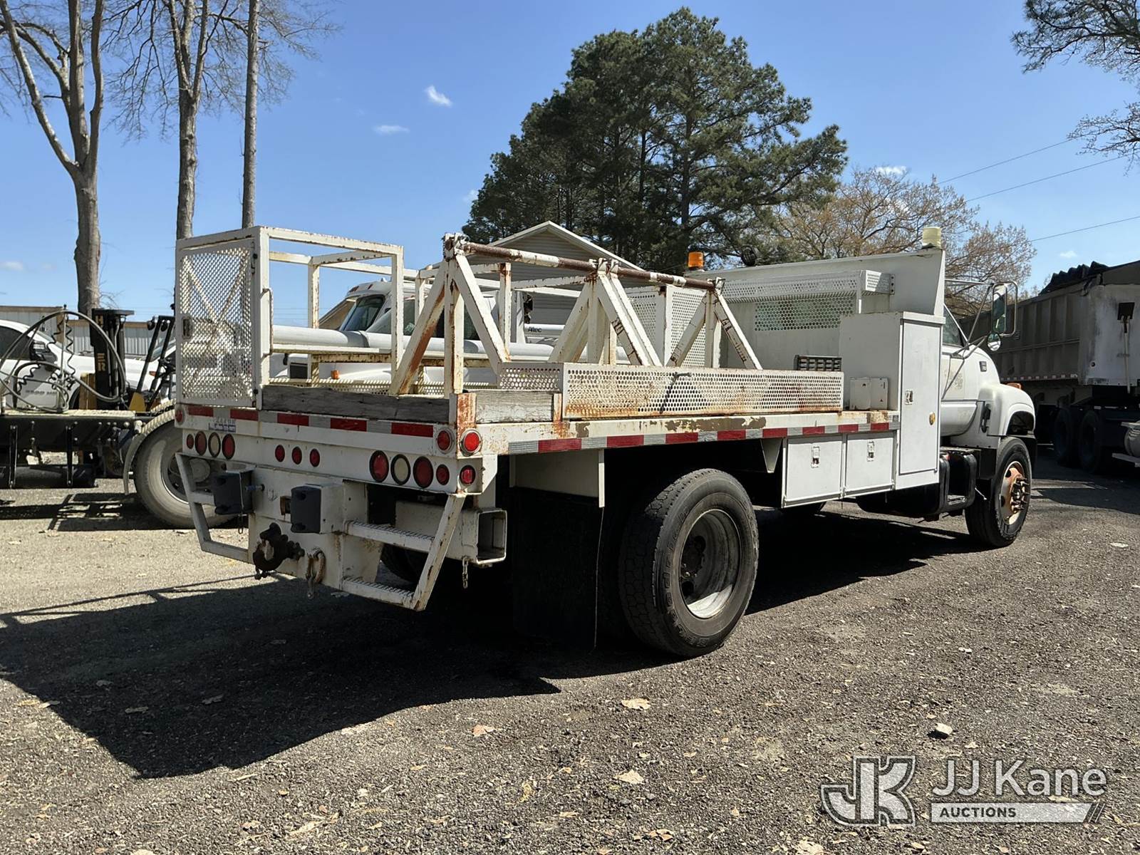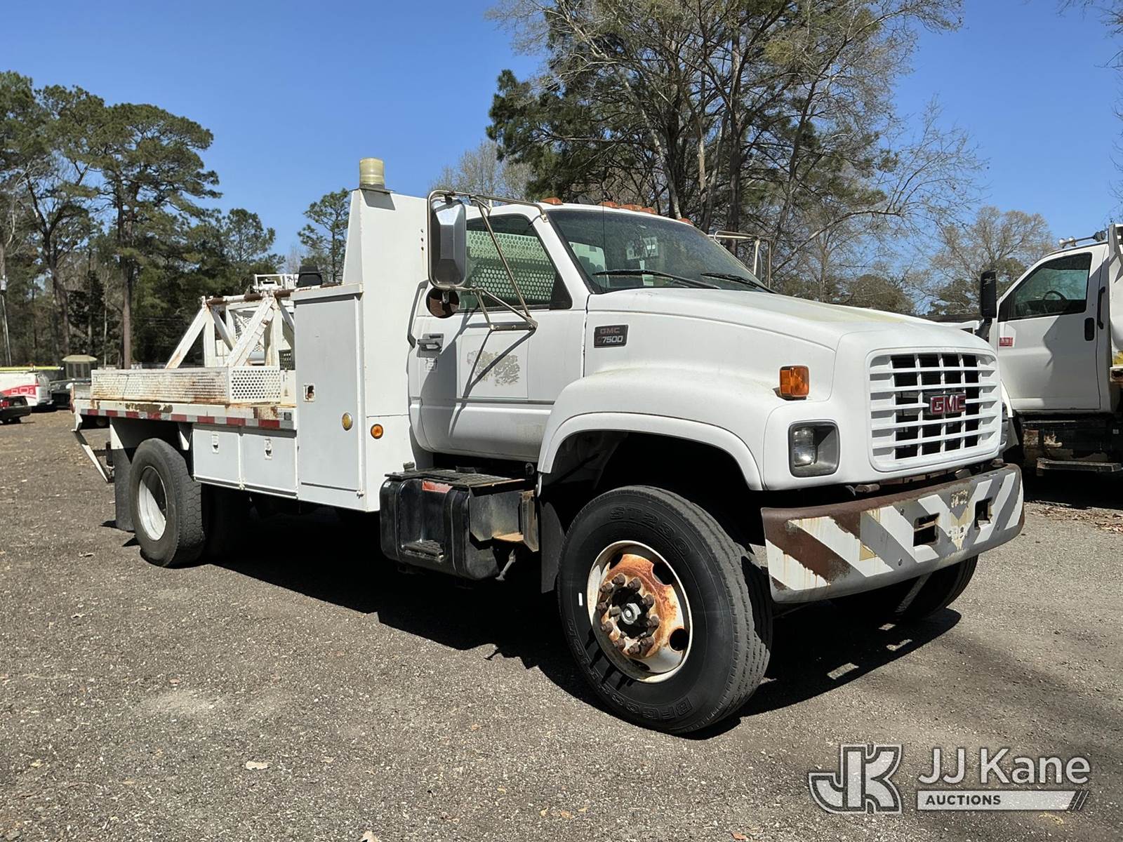 1999 GMC C7500 Flatbed Reel Truck, Cat 3126 4X2, diesel, 5-spd, 2-spd rear, A/C, with two reel carriers and backup camera, (Exempt from Odometer Disclosure - Reads 34,018 miles) (Runs & Moves) This is a Titled Item NOTE: This unit is being sold AS IS/WHERE IS via Timed Auction and is located in Moncks Corner, SC. For more information & removal arrangements please contact Pete Klimek @ 843-323-6538. (Buyer is responsible for removal. Assistance by consignor or JJ Kane Auctions is not assured.)
