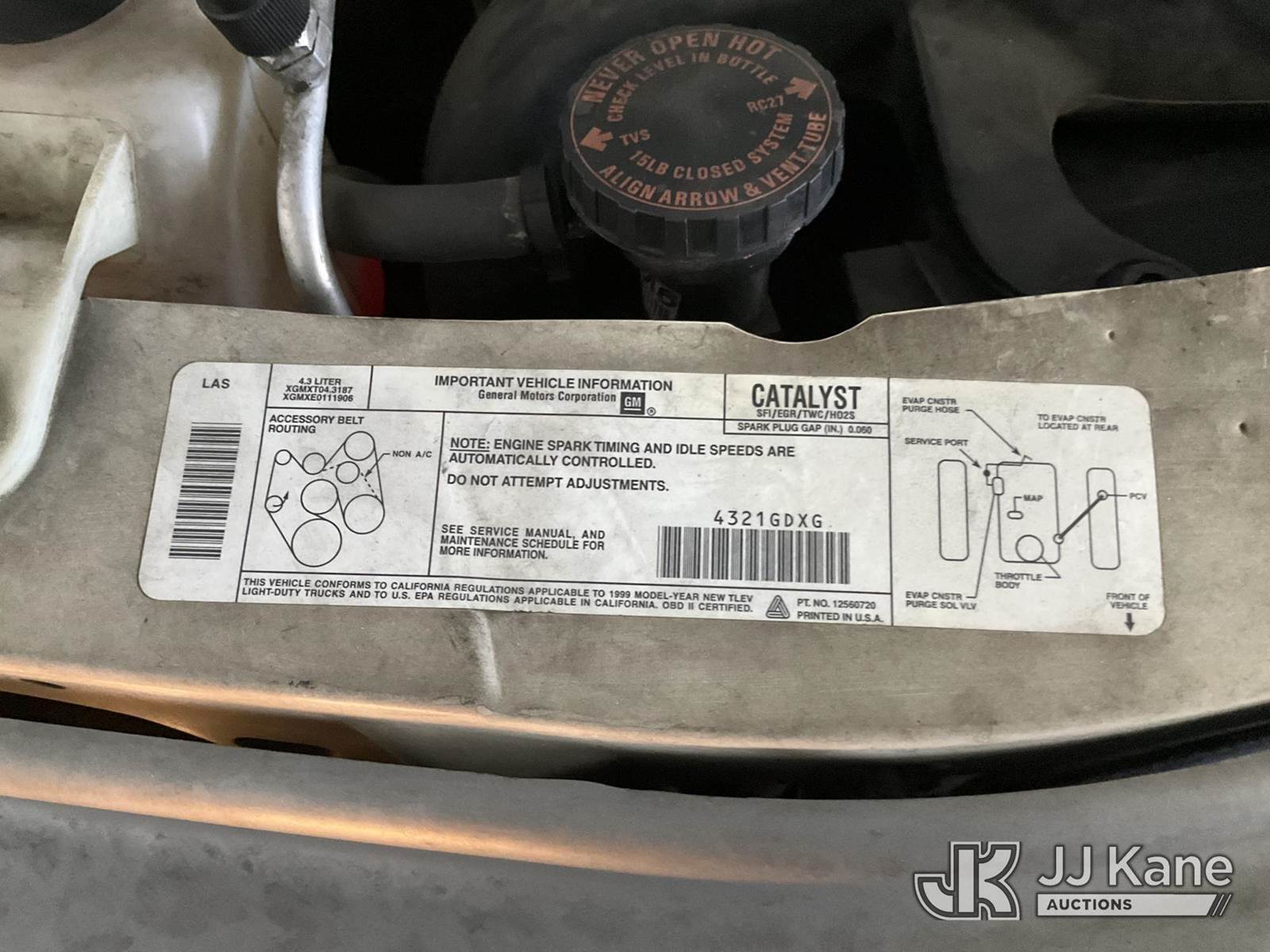 1999 GMC Safari Cargo Van, 6-cyl gas, 4-Speed Automatic, A/C, (Exempt from Odometer Disclosure - Reads 24,863 miles) (Runs & Moves) This is a Titled Item NOTE: This unit is being sold AS IS/WHERE IS via Timed Auction and is located in Jurupa Valley, CA. Inspection & preview days for this unit are the 2 business days prior to the first day of items closing for this auction, item is located at 4510 Muth Way Jurupa Valley, CA 92509 and hours of operations are 8a-4p. For pre-sale questions, please contact please contact Office Staff @ (310) 353-7140. Dealer License Number 45696. (Buyer is responsible for removal. Assistance by consignor or JJ Kane Auctions is not assured.)