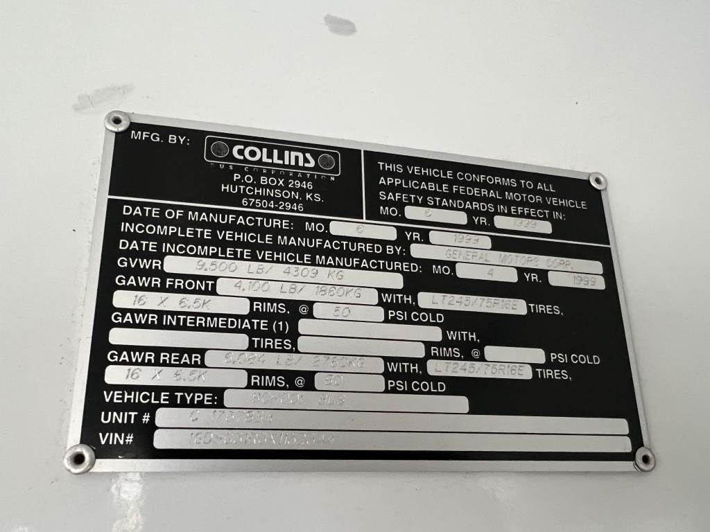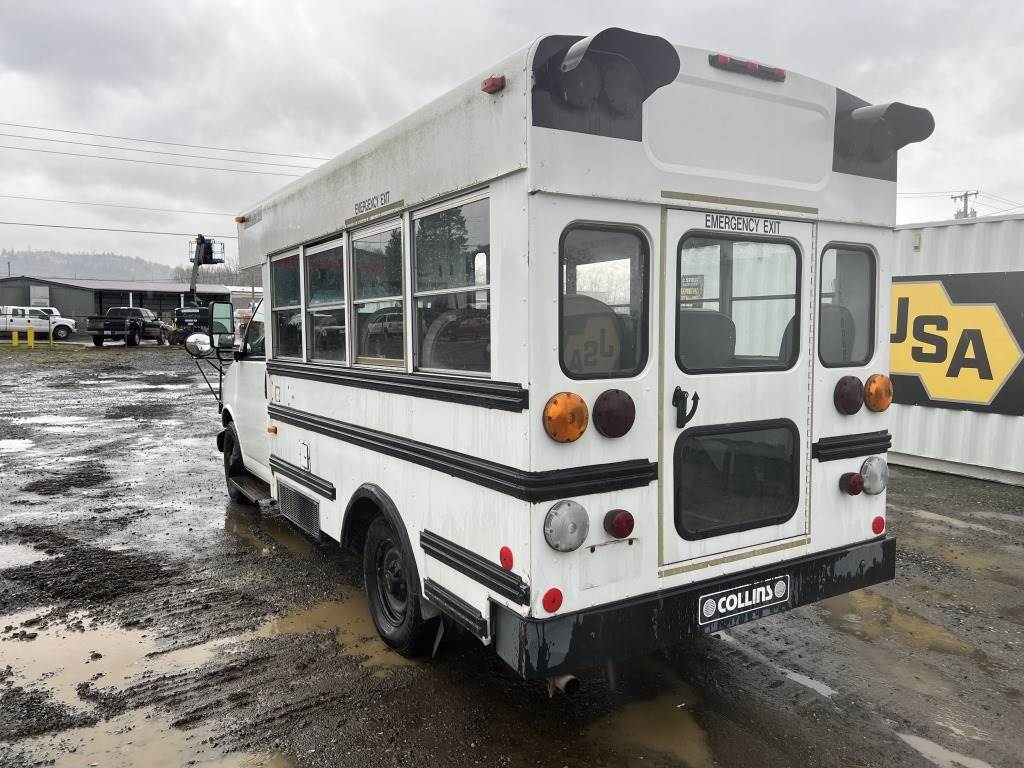 Location: Washougal WA ***End-User Consignment*** VIN: 1GDHG31R3X1132344 Engine: 5.7L 8cyl Gas Transmission: Automatic Collins bus body, rear heat, A/C, AM/FM, spring suspension, LT2455/75R16 tires. Miles: 63,038