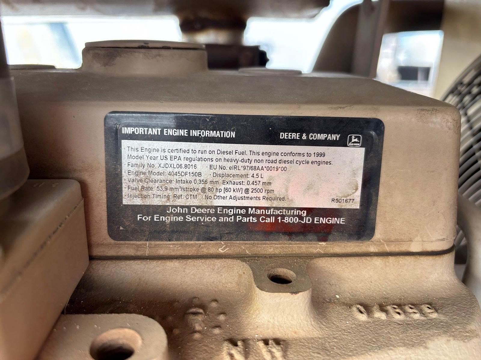 John Deere 4 Cylinder 4.5 L Diesel Engine, Lunette Ring Carrier Trailer