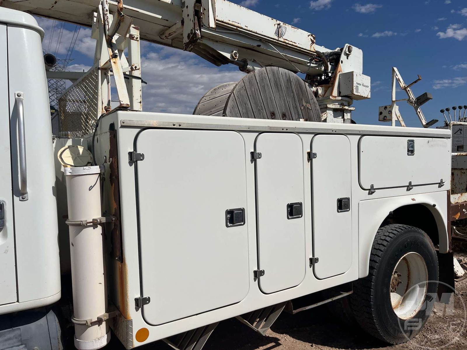 S/A BUCKET TRUCK, DETROIT DT466E, ALLISON AUTOMATIC, SPRING RIDE SUSP, 176 IN. WB, TEREX TELELECT COMMANDER BOOM, DISC WHEELS, TIRES 11R22.5, HOUR METER READS: 12194, ODOMETER READS: 118796, ***INOP***