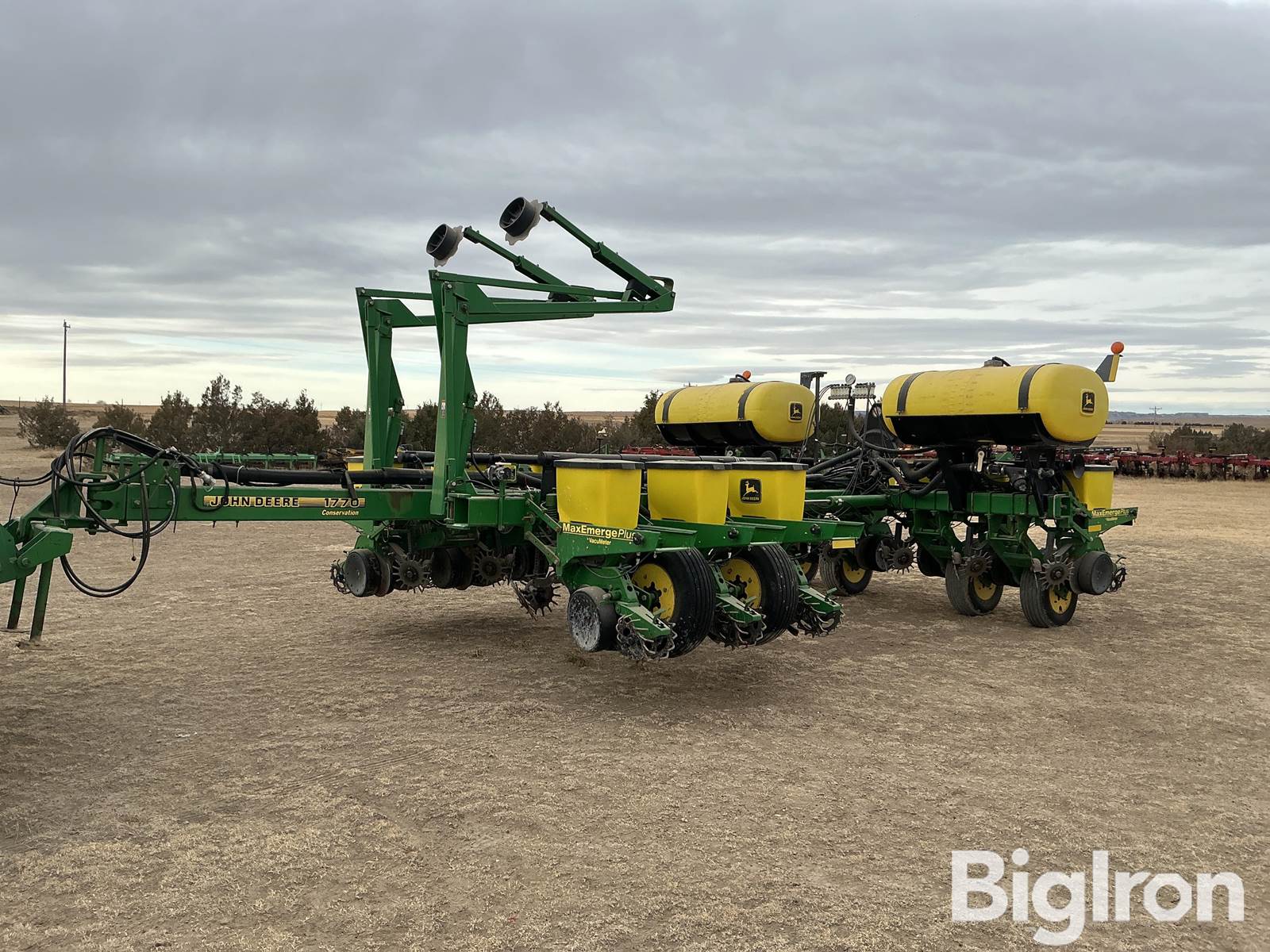 1999 John Deere 1770 Max Emerge Plus 12R30" Conservation Planter, Three Hydraulic Connections Auxiliary Hydraulics, 8 Operational Tires, 4 Transport Tires, 2 Point Hitch, Power Folding, 30' Wide, Seed Box Hoppers, 1.5 Bu Hoppers, Poly Primary Tank, Ground Drive, Row Cleaners, Vacuum Meter, John Deere, Corn Discs, Spring Down Force, 14" Opening Disk Measurement, 250 Gallon, Harrow Attachment, Folding Markers, Computer Track 250, Flex Frame, Operator's Manual, 9.5x15 Tires, 12 extra seed discs included (2/box seen in photos), Keaton Seed Firmers, Implement Guidance Harness and Bracket will NOT be included in sale even though it’s seen in the pictures.