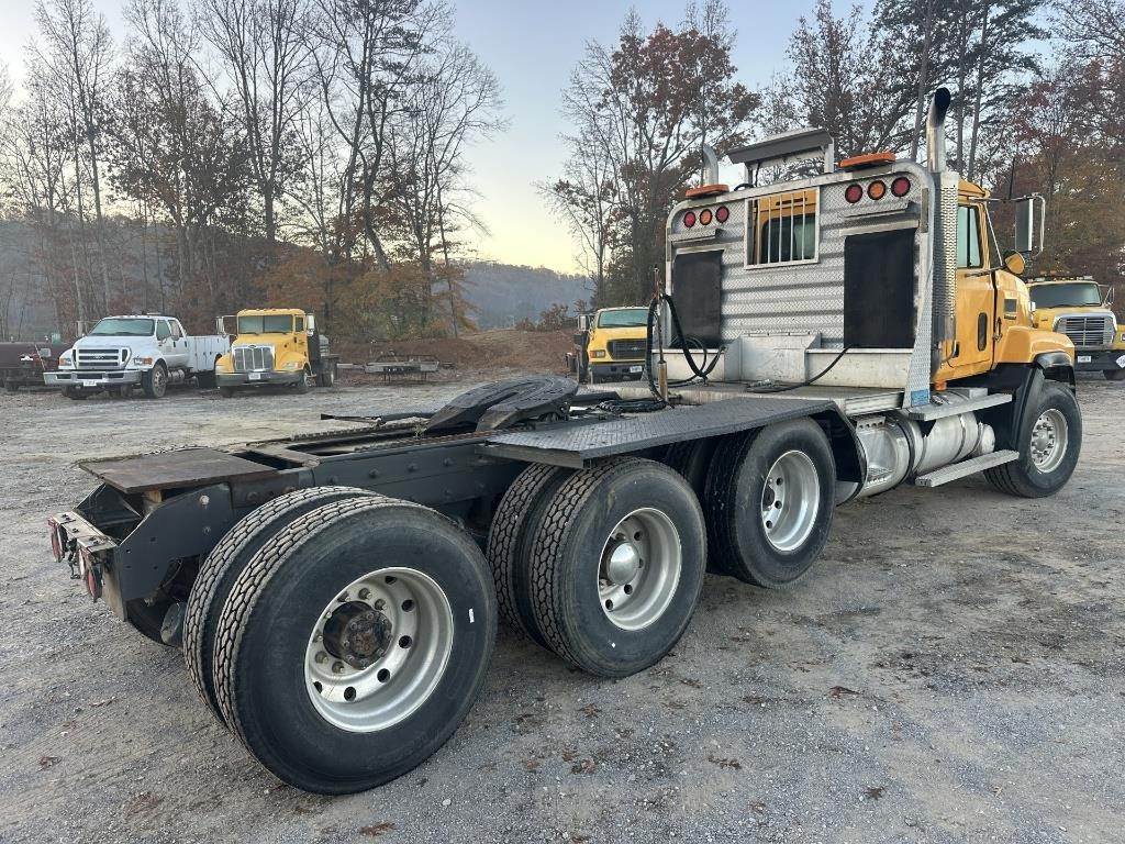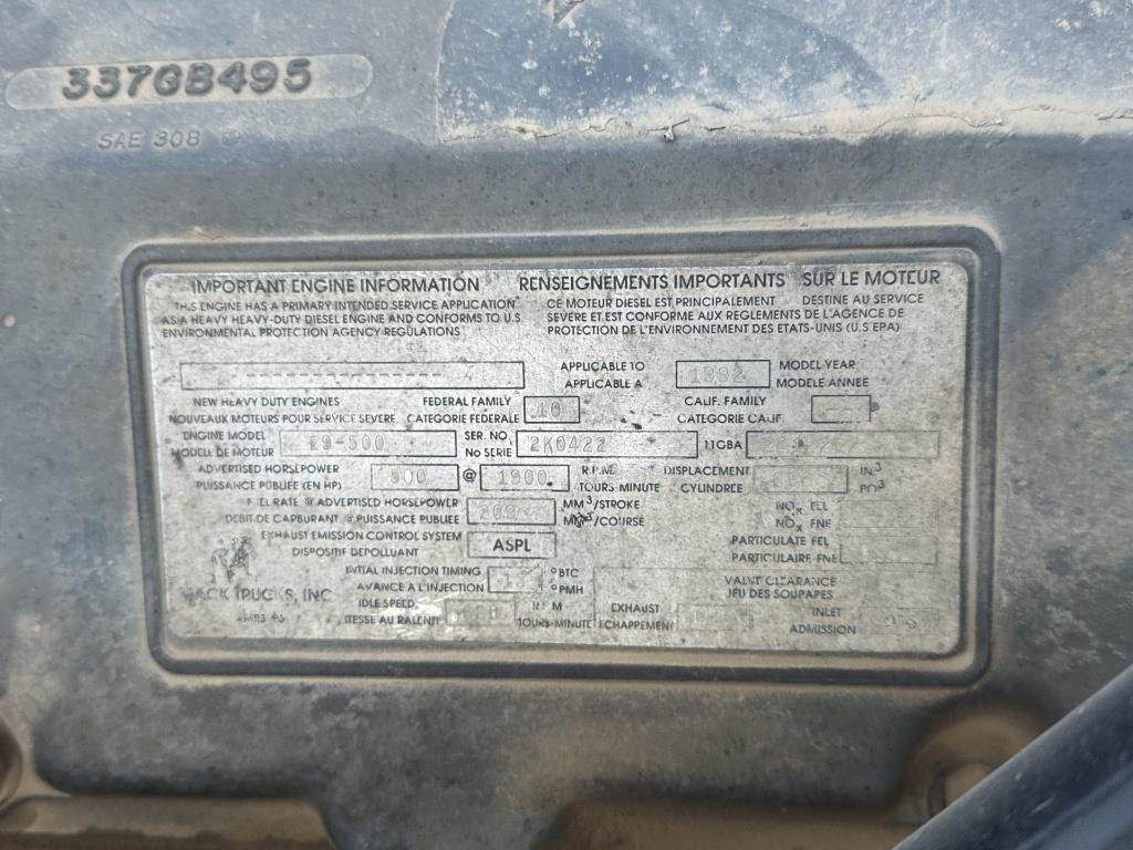 Location: Athens, TN 500HP Mack E9 8 Cylinder Turbo Diesel Engine, 18 Speed Manual Transmission, Camelback Suspension, PTO, Wet Kit, Air Lift Pusher Axle, Air Release Fifth Wheel Slide, Double Frame, Aluminum Headache Rack, Air Ride Seat, Heat, A/C, Radio, Aluminum Outer Rims, 425/65R22.5 Front Tires, 11R22.5 Pusher and Drive Tires, VIN: 1M2AD12Y5XW008275 Miles Shown: 1676