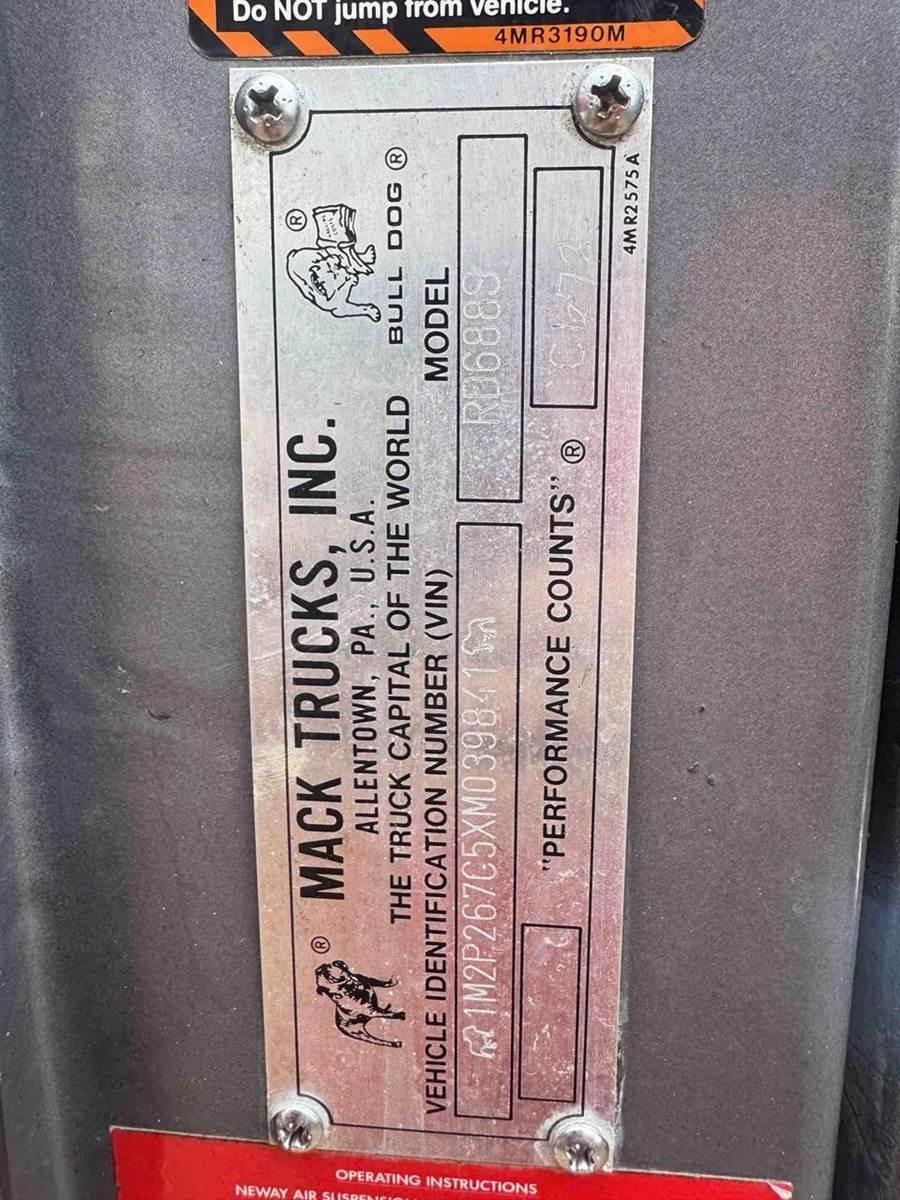 SUPER CLEAN 1999 MACK RD 688S DUMP TRUCK, 390K VERIFIED MILES, MACK E7 400 HP ENGINE, EATON FULLER 8LL TRANSMISSION, 18K LB FRONT AXLE, 44K LB REAR AXLES, 13K LB PUSHER AXLE, CAMELBACK SUSPENSION, ROGERS DUMP 16 FOOT DUMP BODY, ELECTRIC TARP, 11R/24.5 REAR TIRES, FLOTATION FRONT TIRES ON ALUMINUM RIMS, LOCKING REAR DIFFS. NICE SOUTHERN DUMP TRUCK. CALL FOR MORE DETAILS.