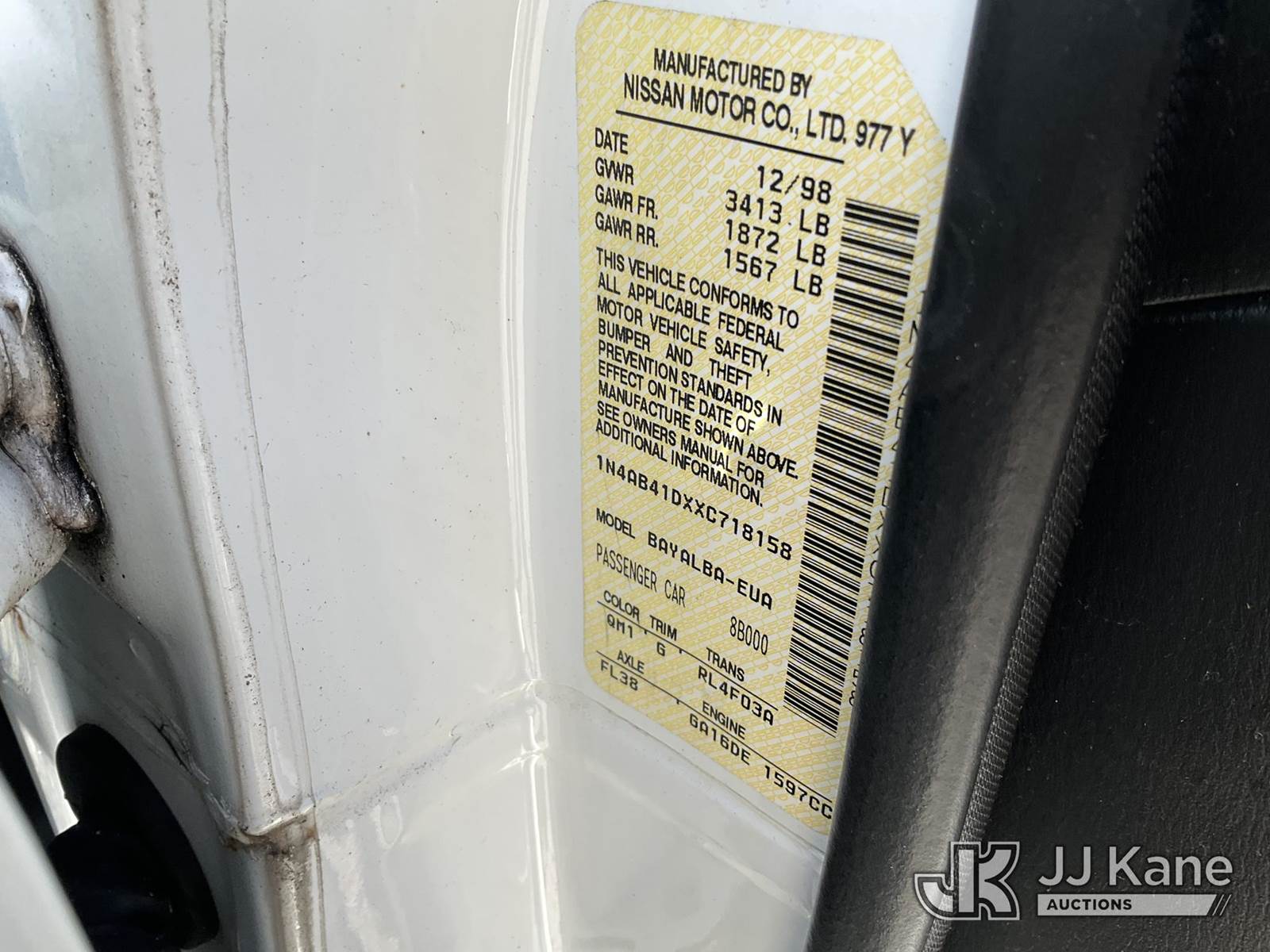 1999 Nissan Sentra 4-Door Sedan, 1.6L L4 OHC 16V Auto, FWD, GAS, A/C, (Exempt from Odometer Disclosure - Reads 160,553 miles) (Runs & Moves)(Runs Rough, Paint Damage, Oil Leak)(FL Residents Purchasing Titled Items - tax, title & registration fees will be collected at the maximum rate of $400.00 under 25,999 and $800.00 for Over 26,000 and $250.00 trailers - Proof of insurance is mandatory; Out of State Residents Purchasing Title Items - tax will be collected based upon your state rate.) This is a Titled Item NOTE: This unit is being sold AS IS/WHERE IS via Timed Auction and is located in Thonotosassa, FL. Inspection & preview days for this unit are the 2 business days prior to the first day of items closing for this auction, item is located at 11720 N US 301 Thonotosassa, Fl 33592 and hours of operations are 8a-4p. For pre-sale questions, please contact Office Staff @ (813) 986-2485. (Buyer is responsible for removal. Assistance by consignor or JJ Kane Auctions is not assured.)