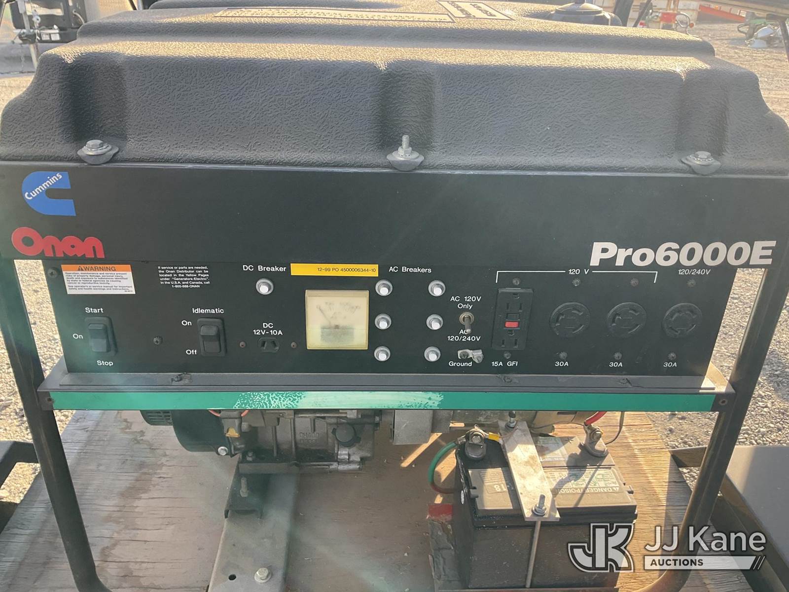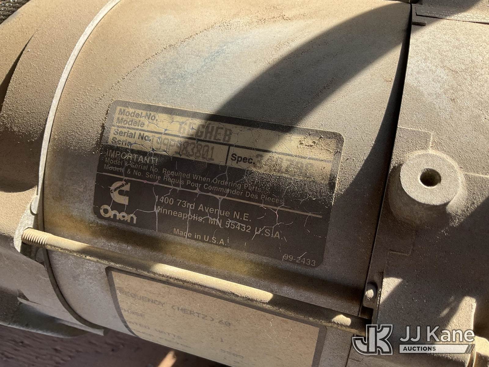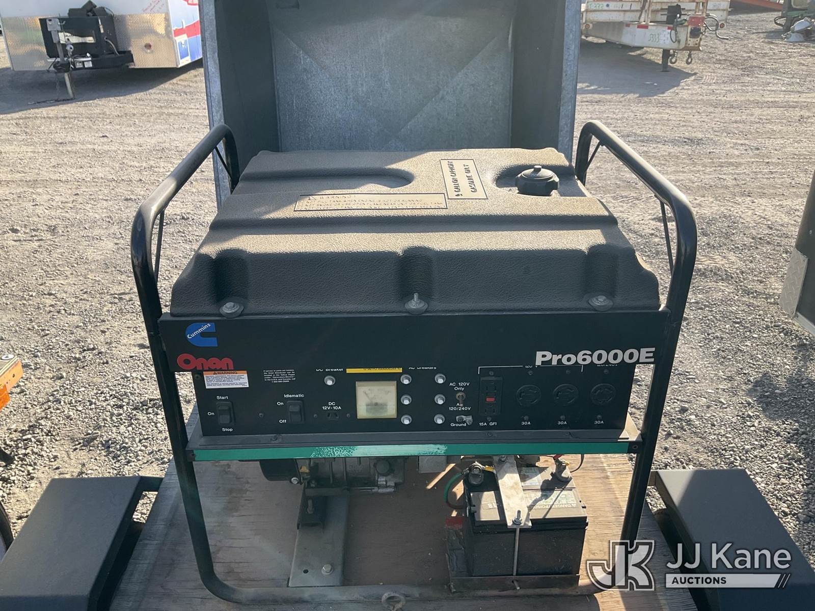 1999 Onan Pro6000E Enclosed Portable Generator, s/n LCAUSO41XXT294936, Onan Gas, with ball hitch, (Not Running, Operation Unknown) (True Hours Unknown, VIN Plate Is Damaged/Barely Legible) NOTE: This unit is being sold AS IS/WHERE IS via Timed Auction and is located in Jurupa Valley, CA. Inspection & preview days for this unit are the 2 business days prior to the first day of items closing for this auction, item is located at 4510 Muth Way Jurupa Valley, CA 92509 and hours of operations are 8a-4p. For pre-sale questions, please contact please contact Office Staff @ (310) 353-7140. Dealer License Number 45696. (Buyer is responsible for removal. Assistance by consignor or JJ Kane Auctions is not assured.)