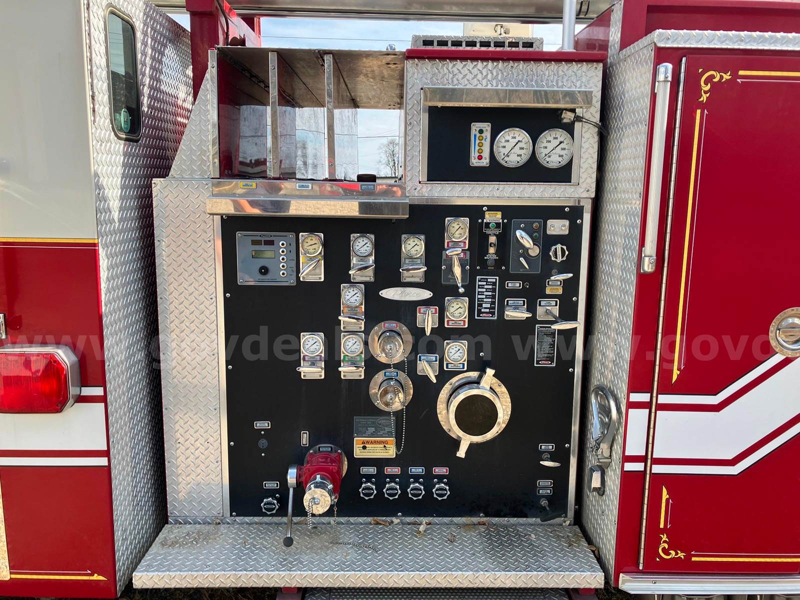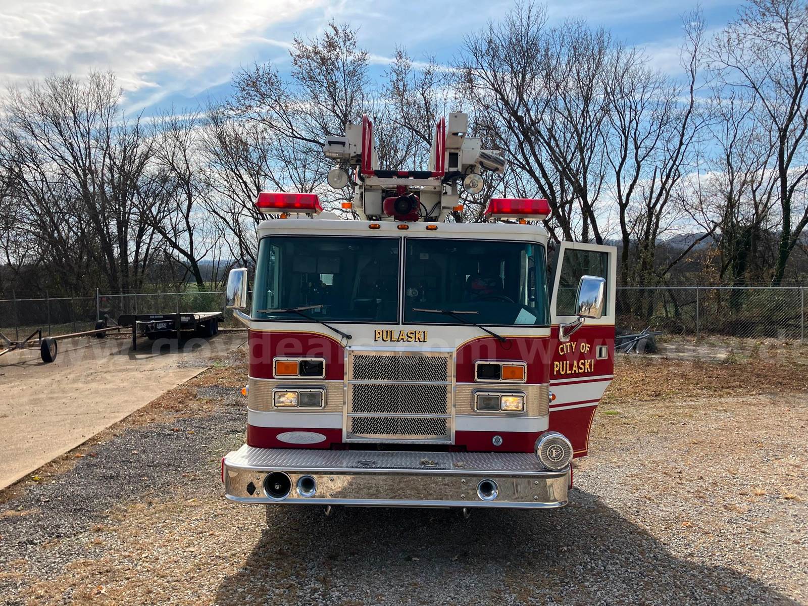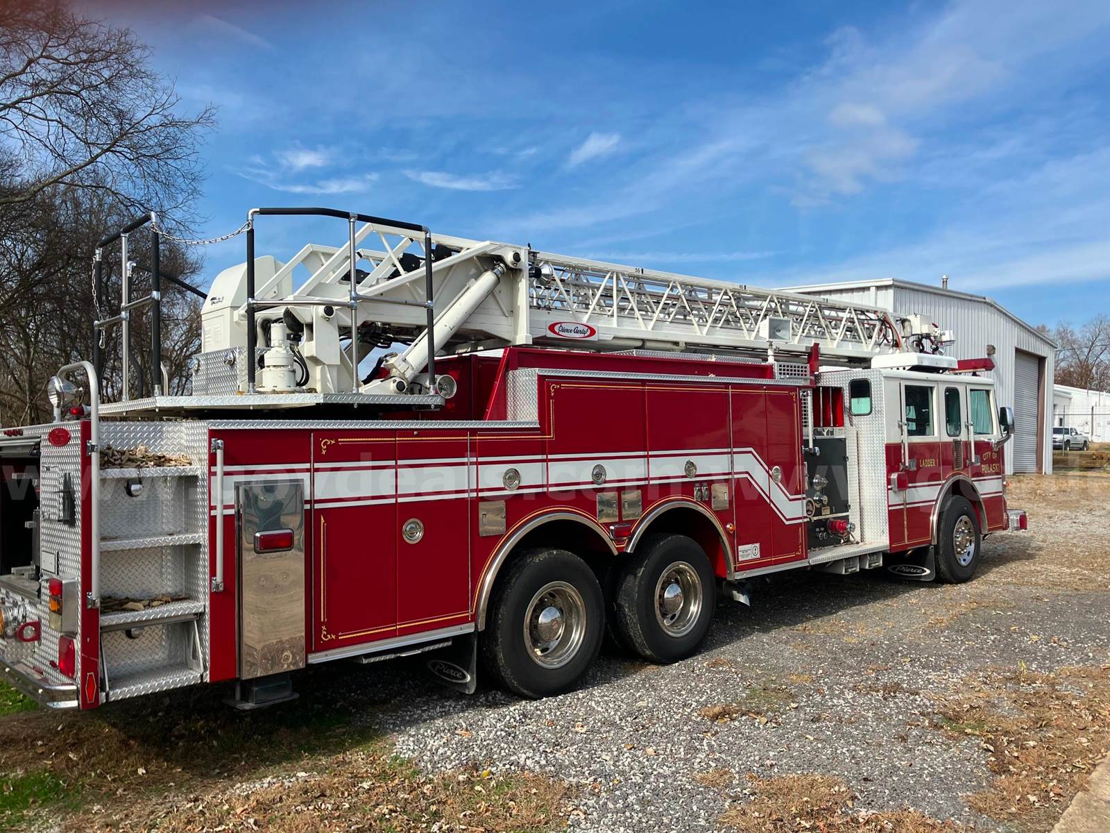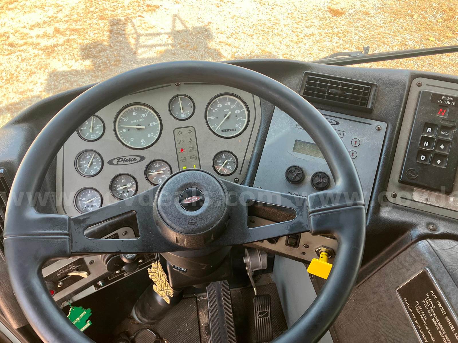 1999 Pierce Model Tilt Cab FIRE TRUCK, 12.7L L6 DIESEL. 75’ Steel Ladder 1500 GPM Hale Pump 500 Gallon Poly tank On-board Generator – will start and run but not produce power Detroit Engine, Allison Transmission Engine has an oil leak and runs but smokes Transmission has a fluid leak Pump does work but will not communicate with transmission, computer system will need to be upgraded to fix Misc lights missing Ground Ladders will be removed before sale All ladder hydraulic cylinders were rebuilt in Spring 2023 Passed Pump and Aerial testing in 2024, not tested in 2025 due to replacement Paint is faded, does have scratches and a few dents Interior is good shape, driver seat is worn, has 5 SCBA seats with brackets Tires in decent shape