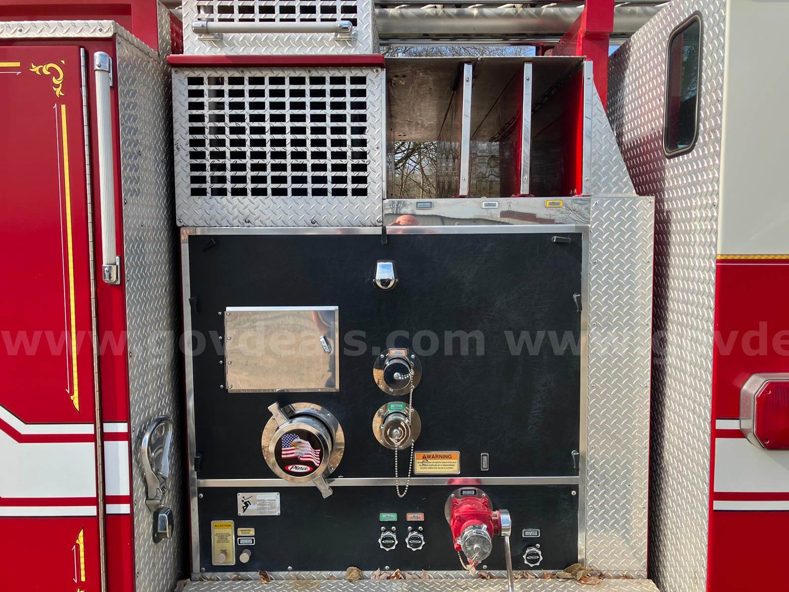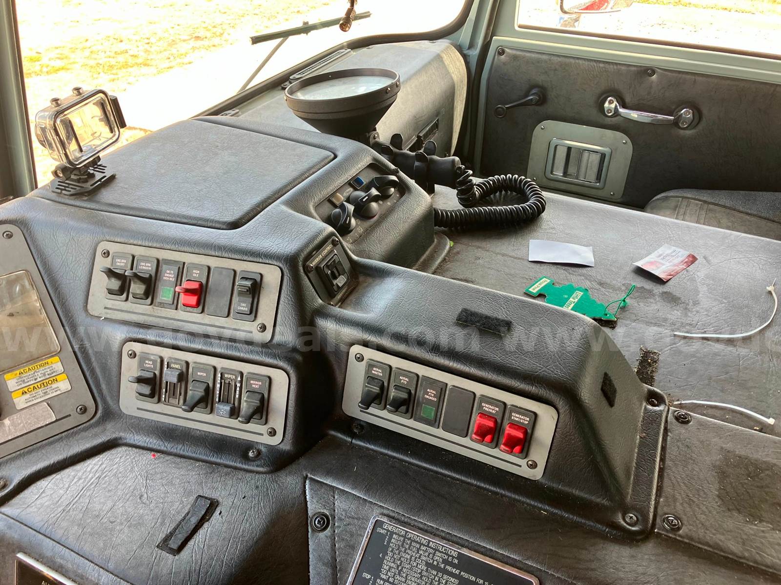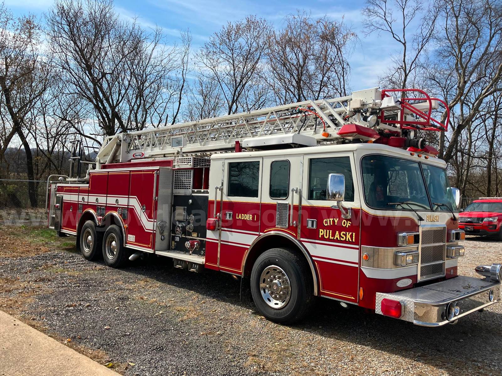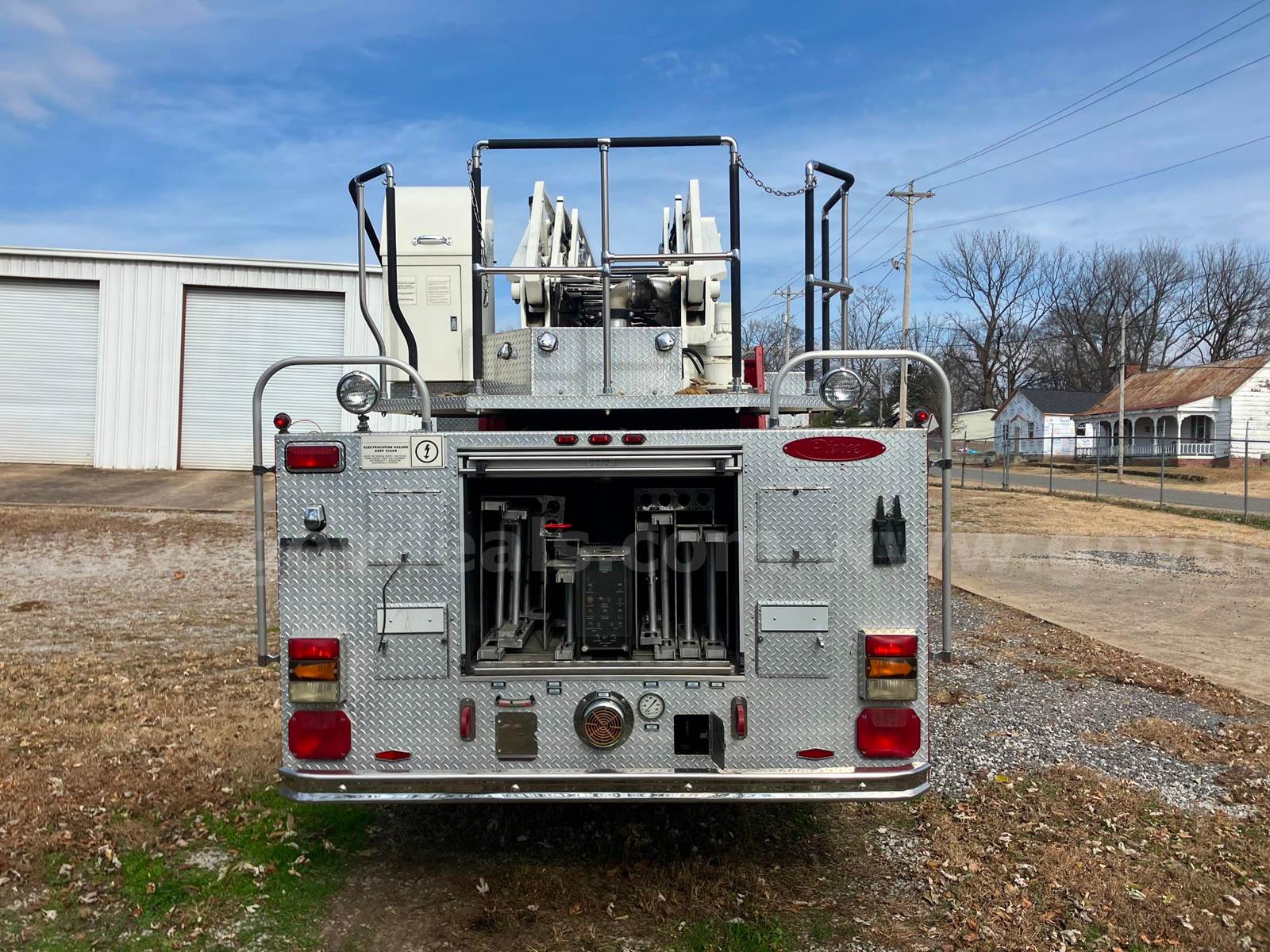 1999 Pierce Model Tilt Cab FIRE TRUCK, 12.7L L6 DIESEL. 75’ Steel Ladder 1500 GPM Hale Pump 500 Gallon Poly tank On-board Generator – will start and run but not produce power Detroit Engine, Allison Transmission Engine has an oil leak and runs but smokes Transmission has a fluid leak Pump does work but will not communicate with transmission, computer system will need to be upgraded to fix Misc lights missing Ground Ladders will be removed before sale All ladder hydraulic cylinders were rebuilt in Spring 2023 Passed Pump and Aerial testing in 2024, not tested in 2025 due to replacement Paint is faded, does have scratches and a few dents Interior is good shape, driver seat is worn, has 5 SCBA seats with brackets Tires in decent shape