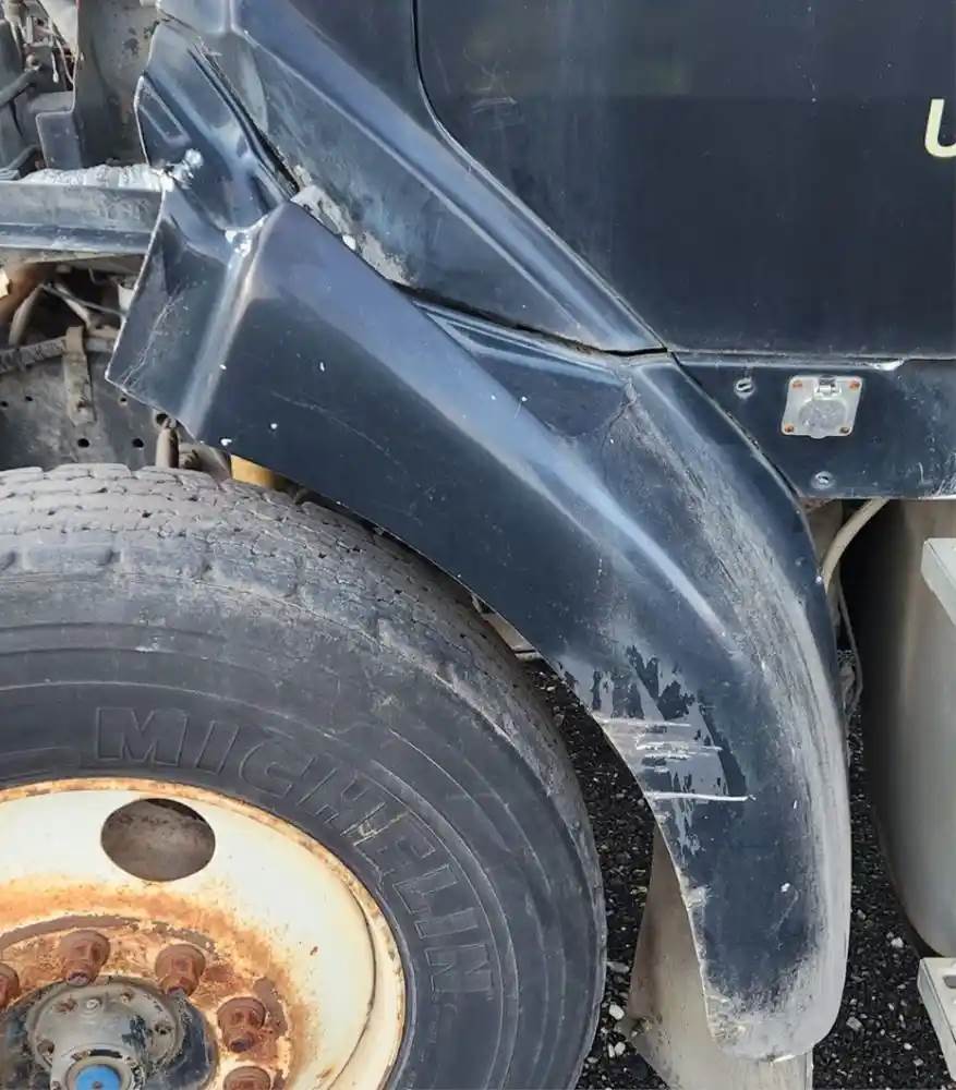 (Used) 1999 Sterling A9513, FENDER EXTENSION- Side: Driver Left Side, Color: Black, Material: Fiberglass, Damage Reference images for condition, For more information about this item, give us a call. We ship Worldwide! (CRG HEAVY TRUCK PARTS) 929 W PULASKI HWY ELKTON, MD 21921