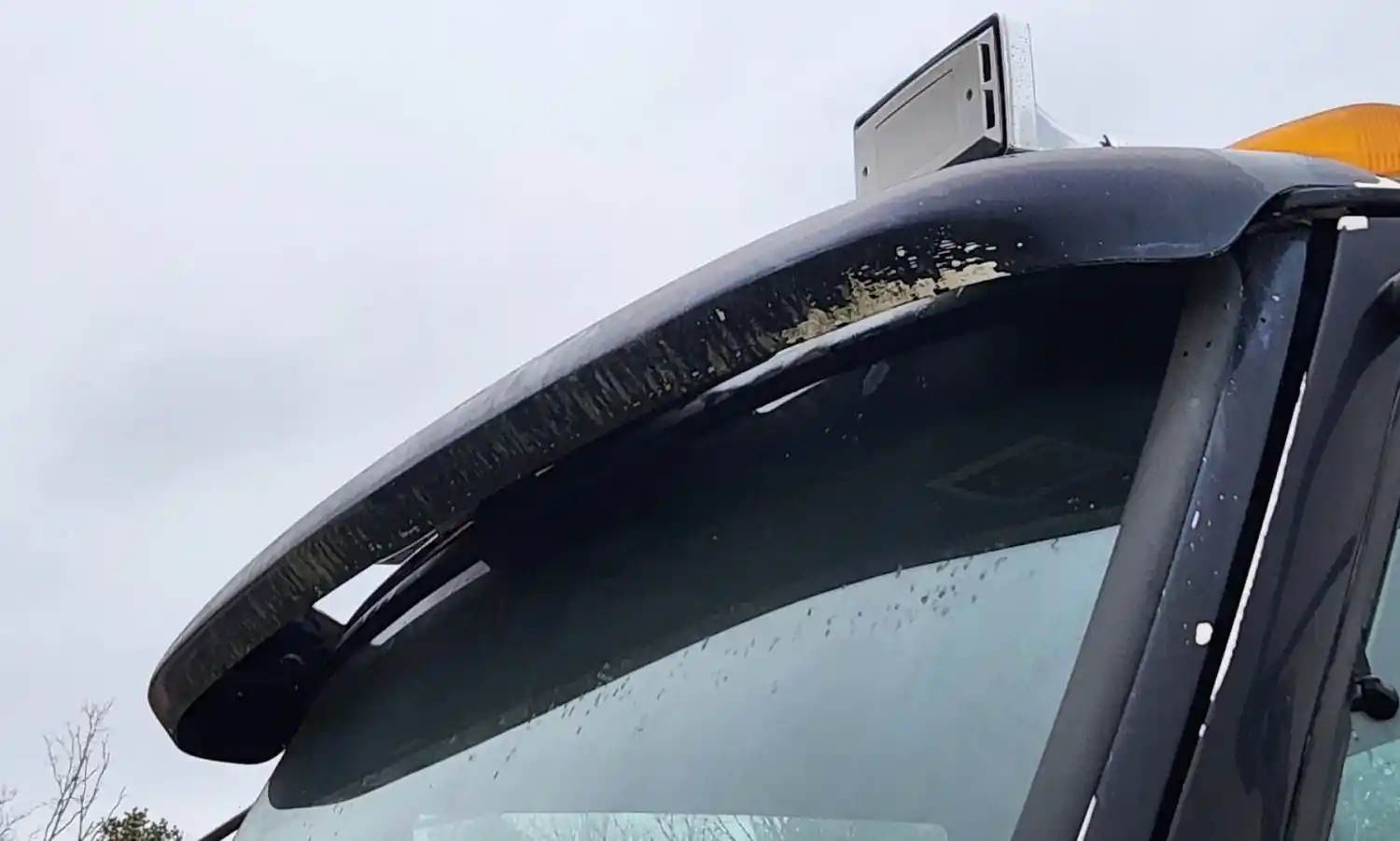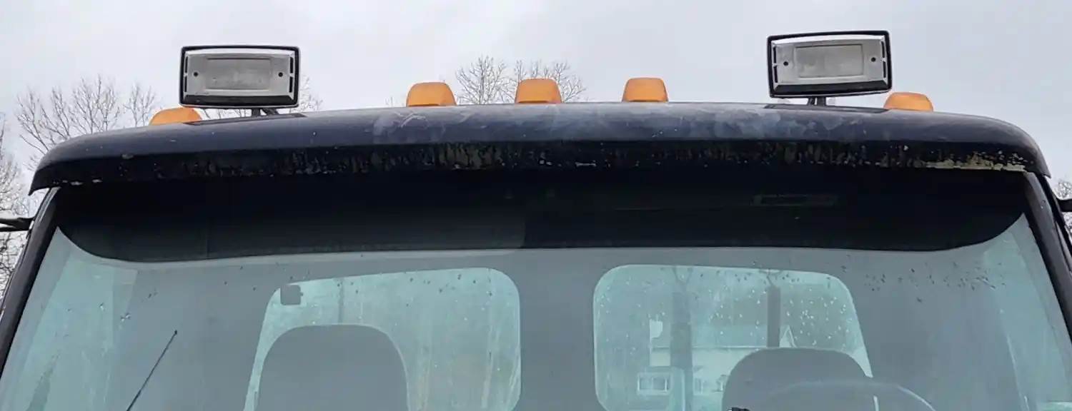 (Used) 1999 Sterling A9513, EXTERIOR SUN VISOR- Side: Center Of Truck, Color: Black, Material: Fiberglass, Reference images for condition, For more information about this item, give us a call. We ship Worldwide! (CRG HEAVY TRUCK PARTS) 929 W PULASKI HWY ELKTON, MD 21921