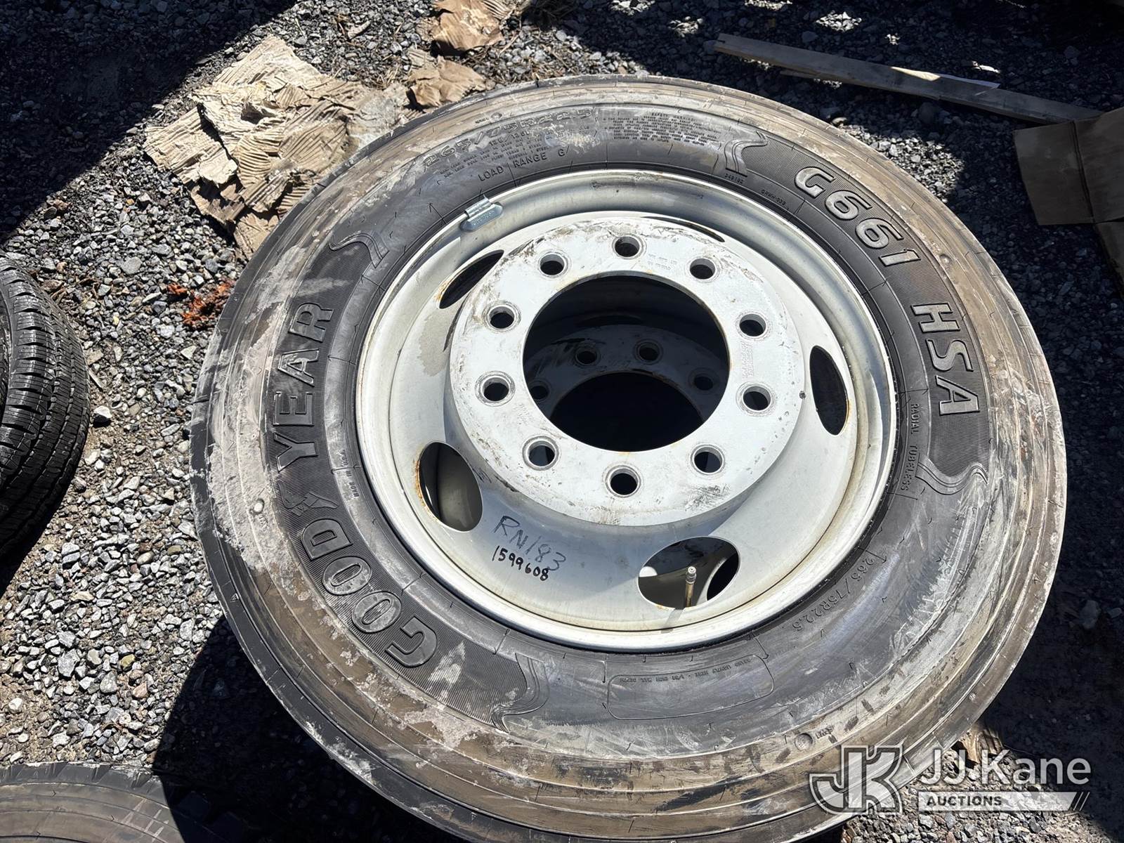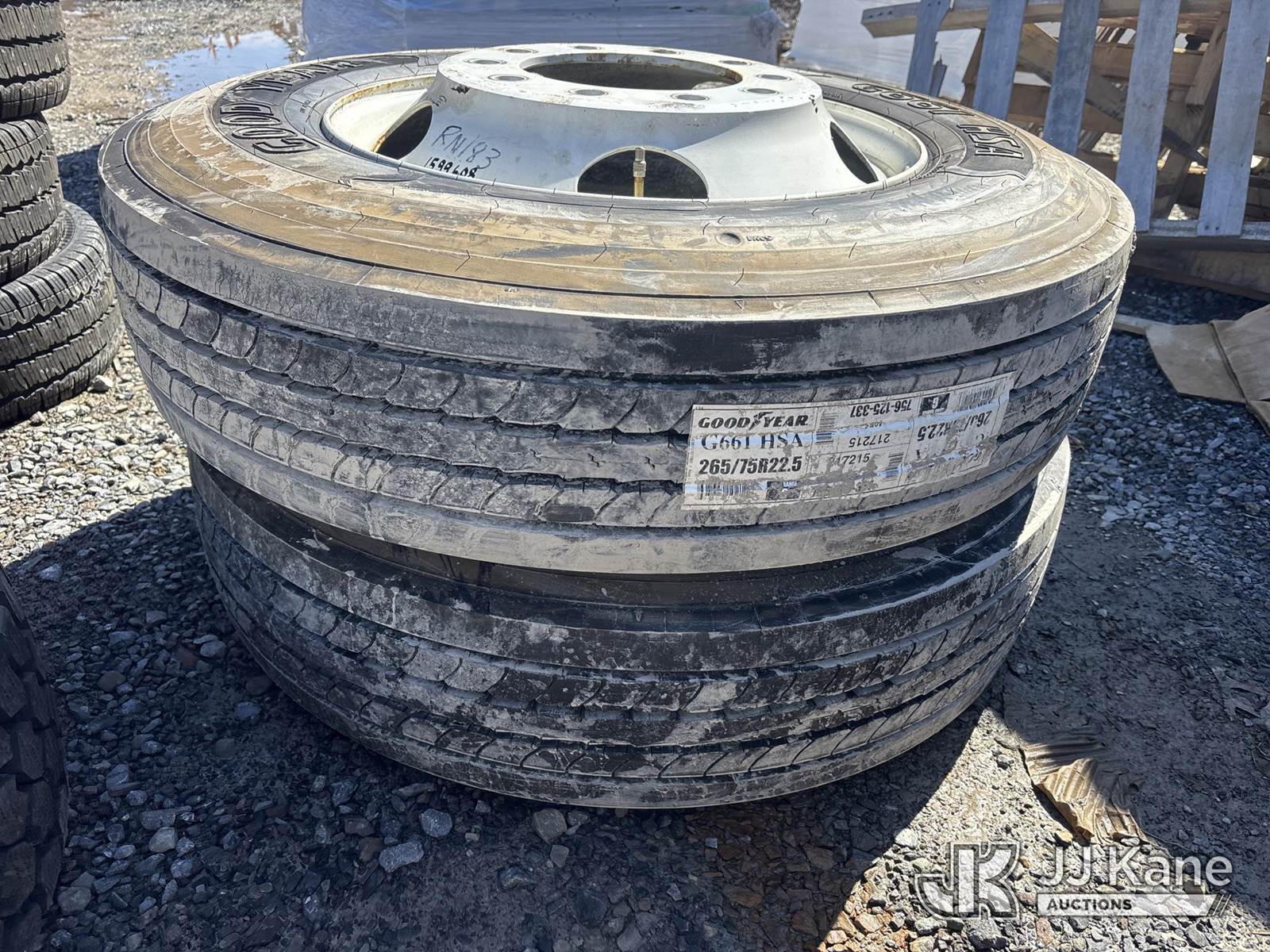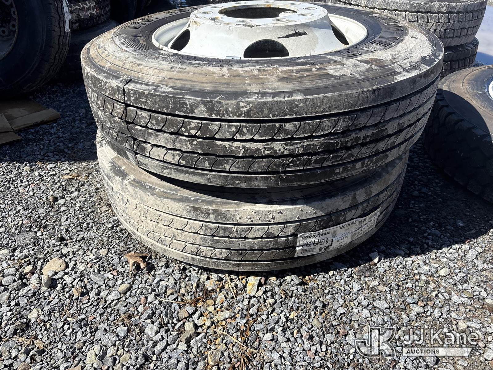 (2) Goodyear 265/75R22.5 Tires On Rim NOTE: This unit is being sold AS IS/WHERE IS via Timed Auction and is located in Rome, NY. Inspection & preview days for this unit are the 2 business days prior to the first day of items closing for this auction, item is located at 5835 Success Dr Rome, NY 13440 and hours of operations are 8a-4p. For pre-sale questions, please contact Ryan Jackson @ (315) 749-3790 or Ryan.Jackson@jjkane.com. (Buyer is responsible for removal. Assistance by consignor or JJ Kane Auctions is not assured.)