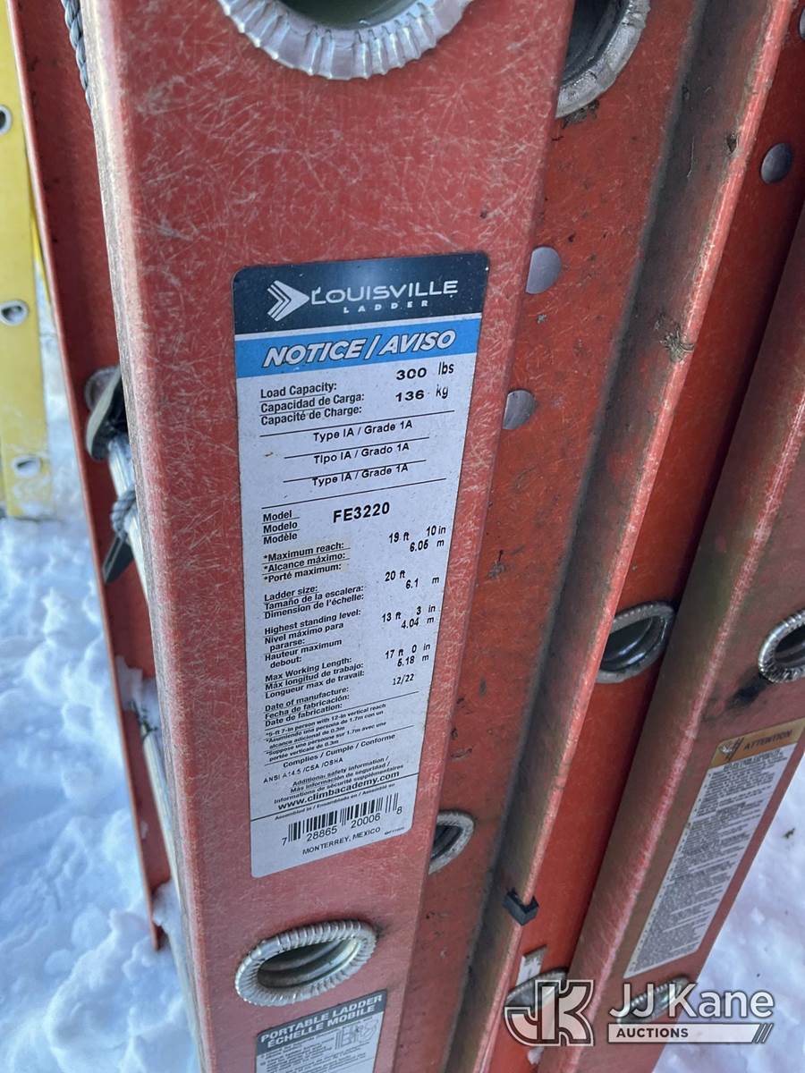 (2) Louisville 20 ft Fiberglass Extension Ladders NOTE: This unit is being sold AS IS/WHERE IS via Timed Auction and is located in Rome, NY. Inspection & preview days for this unit are the 2 business days prior to the first day of items closing for this auction, item is located at 5835 Success Dr Rome, NY 13440 and hours of operations are 8a-4p. For pre-sale questions, please contact Ryan Jackson @ (315) 749-3790 or Ryan.Jackson@jjkane.com. (Buyer is responsible for removal. Assistance by consignor or JJ Kane Auctions is not assured.)