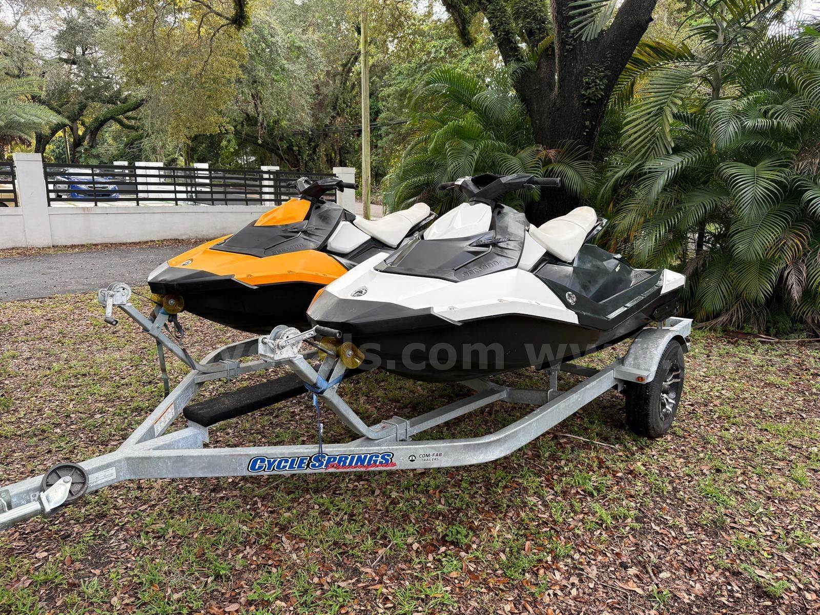 - RUN AND DRIVE- CLEAN TITLE'S- 2 X SEADOO SPARK - VIN1# 000CAYDV18900F414- VIN2# 000CAYDV18846F414- BOTH WITH 50 HOURS- DOUBLE TRAILER INCLUDED- BOTH JETSKI'S START WITH JUMP START- THIS SALE IS FOR 2 JETSKI'S AND DOUBLE LIKE NEW CONDITION TRAILER INLCUDED.- BOTH JETSKI'S COME WITH CLEAN FLORIDA TITLE'SIf you are the awarded bidder and you are seeking tax exemption, please submit the tax exemption form using the link in the Sales Tax section below.Florida buyers are required by law to pay tax directly to sellers without exception.Please contact LOT_taxhelp@LiquidityServices.onmicrosoft.com for reimbursement on the tax collected by GovDeals.Assets are Sold “As Is”. Inspections are encouraged during the auction.If shipping, buyer agrees to pay for transportation and sale is final once shipped.