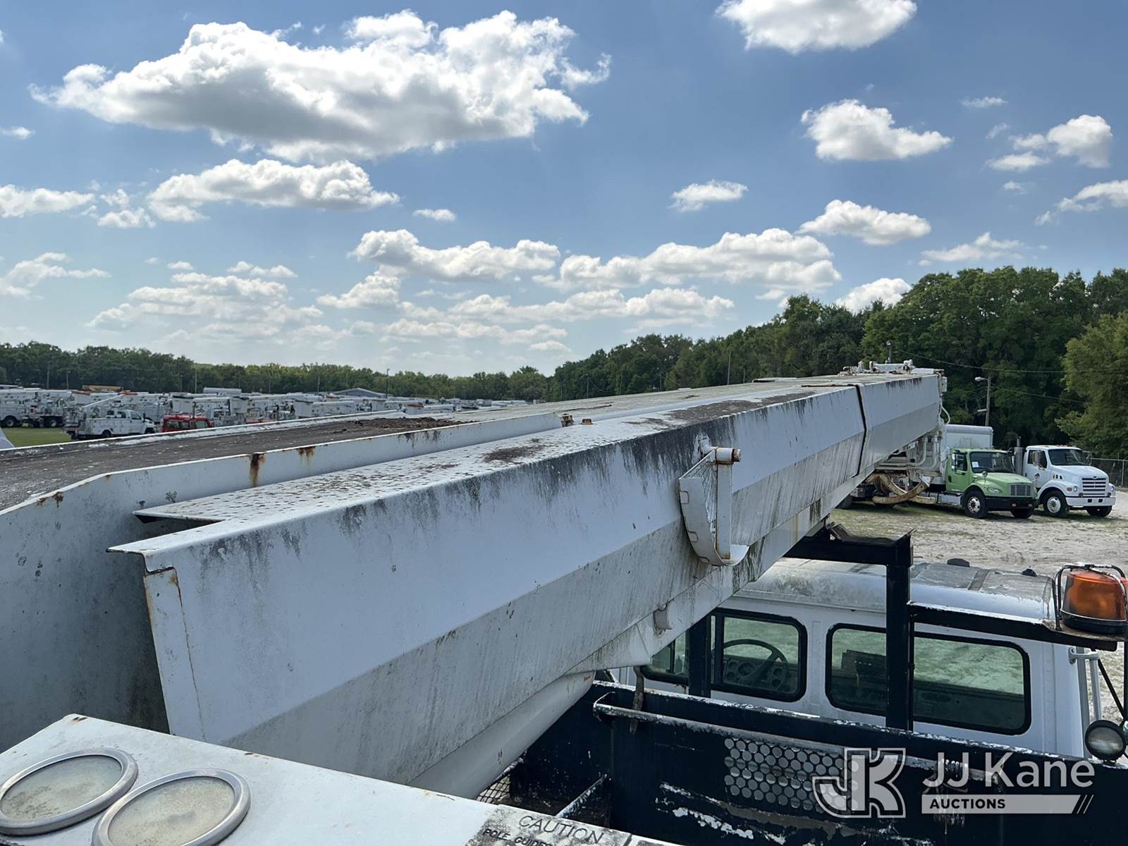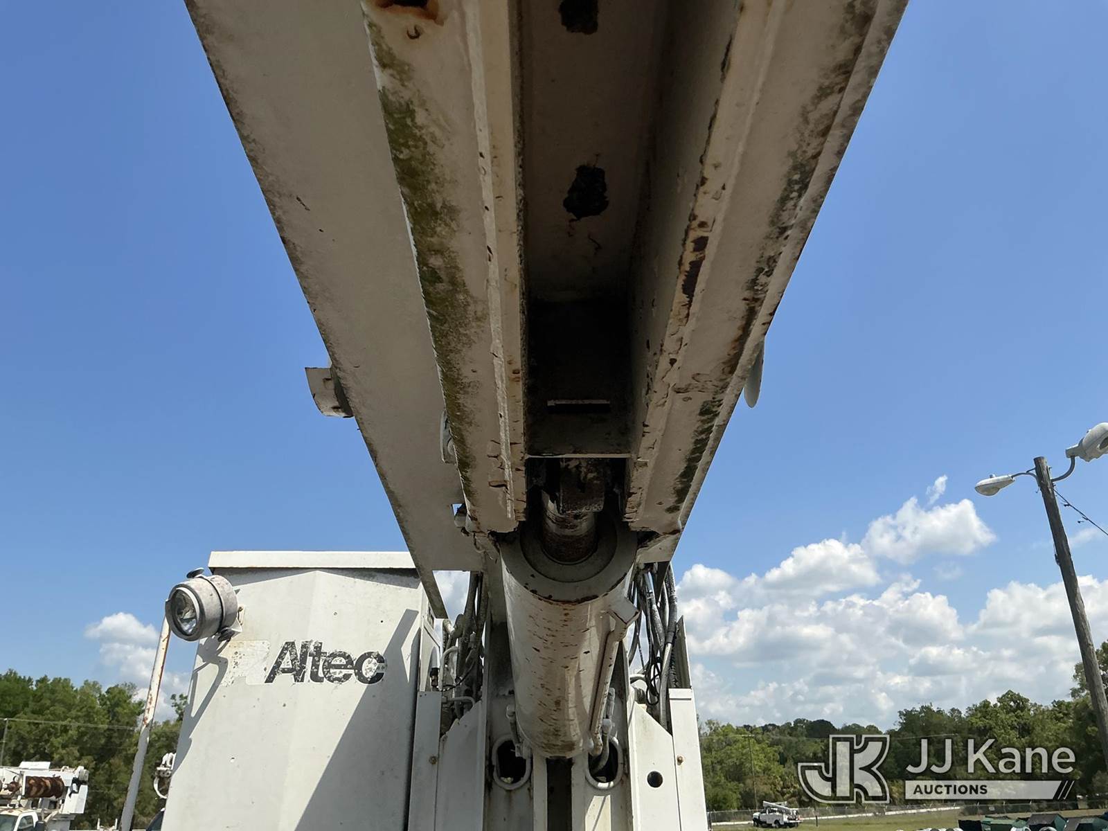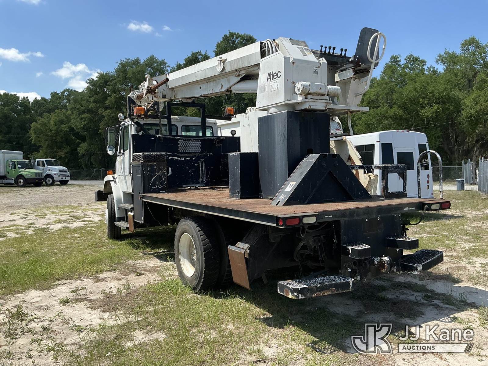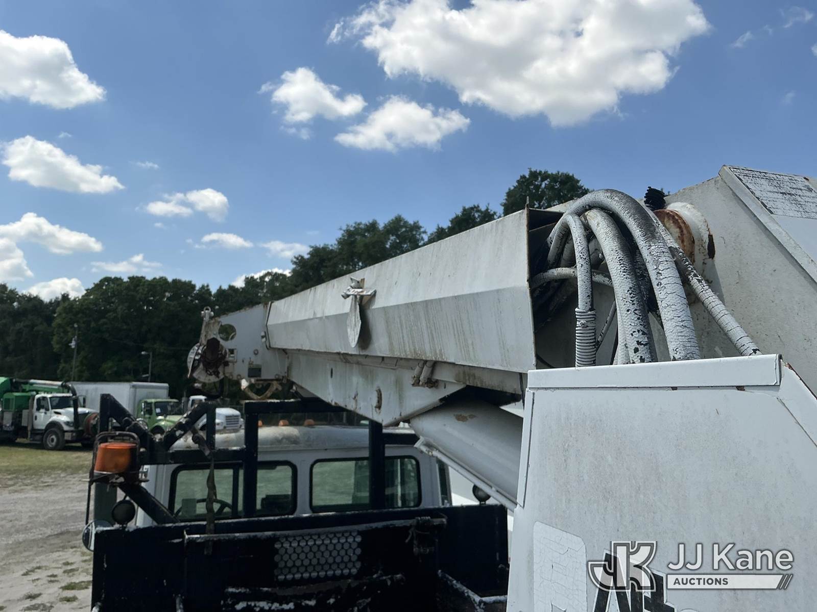 Altec D947-BR, 17,850 Lb Digger Derrick s/n 0999BA1955, with 47 ft sheave height, 2-spd digger, tip winch, pole grabs & riding console, rear mounted on 2000 Freightliner FL80 4x4 Flatbed/Utility Truck, Cat 3126 diesel, 7-spd, A/C, with front winch, (Exempt from Odometer Disclosure - Reads 113,777 miles) (Not Running, Condition Unknown) (Missing Auger, Rust/Mold Damage). The manufacturer has notified JJ Kane that this unit to has reached the End of Service life and it will not provide service for the unit. Parts and/ or technical support for the unit may be limited. Also, this equipment is subject to an open recall. 244D (CSN) Digger Hanger Bracket and Latch Inspection 246D (CSN) Turntable Tilt Procedure Correction The equipment should not be operated until this is addressed. Buyer is responsible for reviewing the recall notice and contacting the manufacturer to schedule the recommended corrective actions. Associated costs may be covered by the manufacturer in some cases. (FL Residents Purchasing Titled Items – tax, title & registration fees will be collected at the maximum rate of $400.00 under 25,999 and $800.00 for Over 26,000 and $250.00 trailers – Proof of insurance is mandatory; Out of State Residents Purchasing Title Items – tax will be collected based upon your state rate.)) This is a Titled Item NOTE: This unit is being sold AS IS/WHERE IS via Timed Auction and is located in Thonotosassa, FL. Inspection & preview days for this unit are the 2 business days prior to the first day of items closing for this auction, item is located at 11720 N US 301 Thonotosassa, Fl 33592 and hours of operations are 8a-4p. For pre-sale questions, please contact Office Staff @ (813) 986-2485. (Buyer is responsible for removal. Assistance by consignor or JJ Kane Auctions is not assured.)