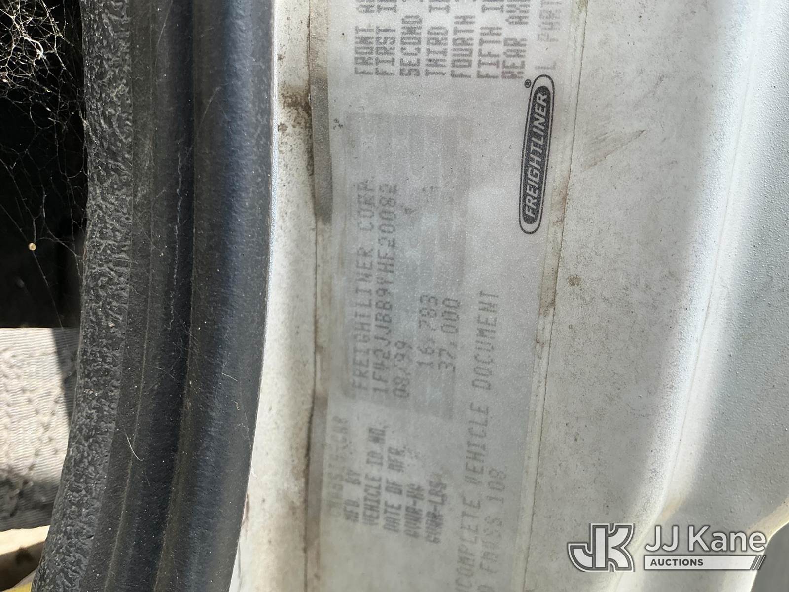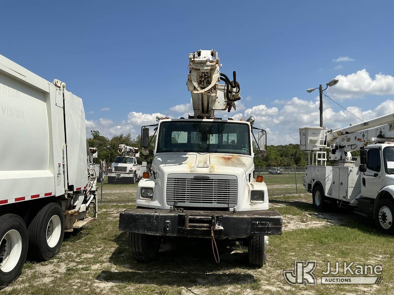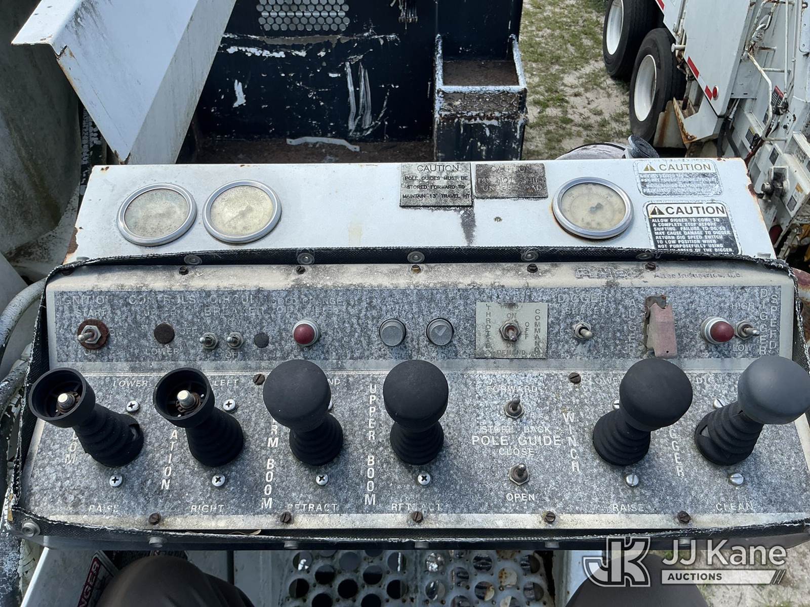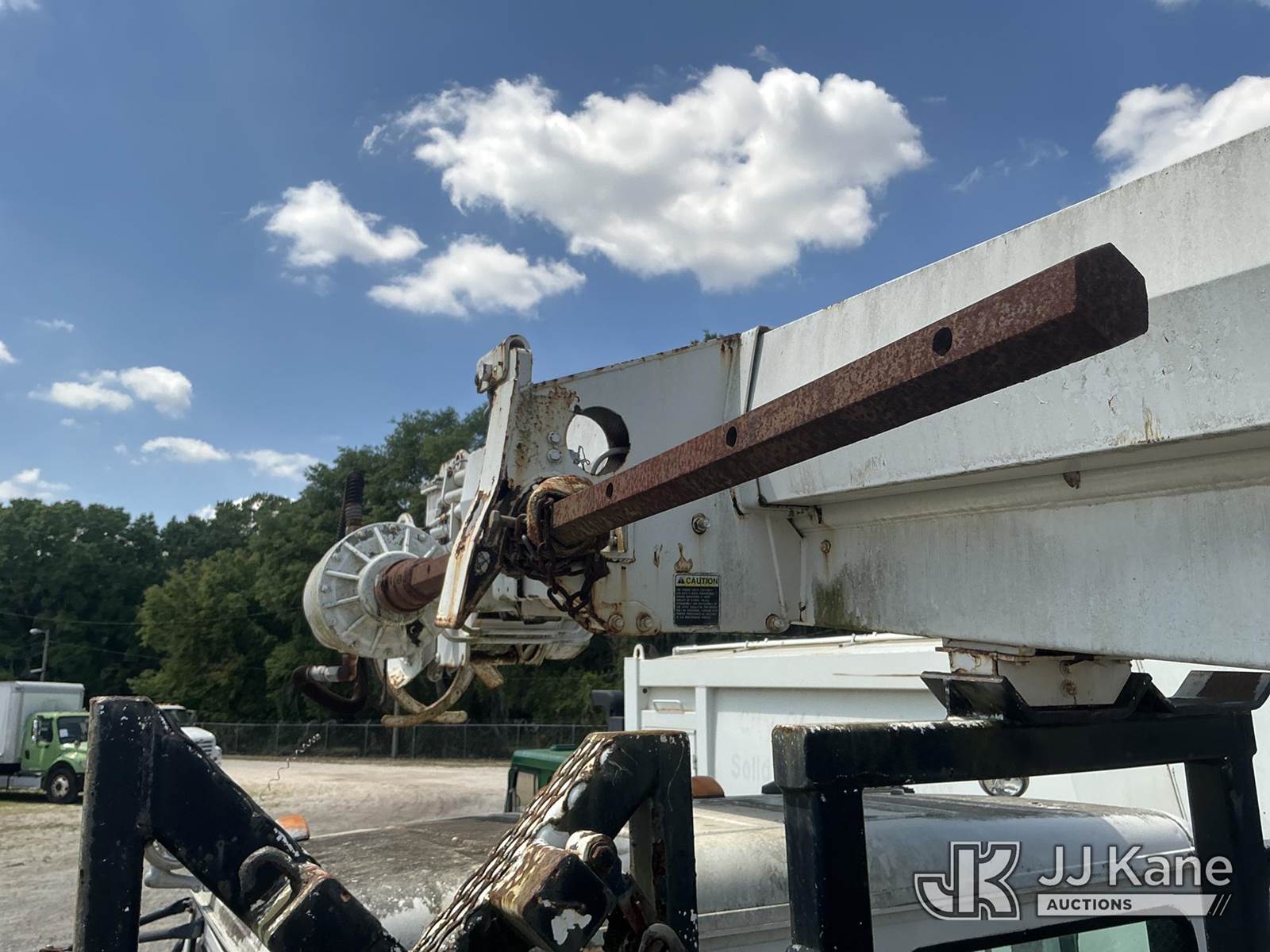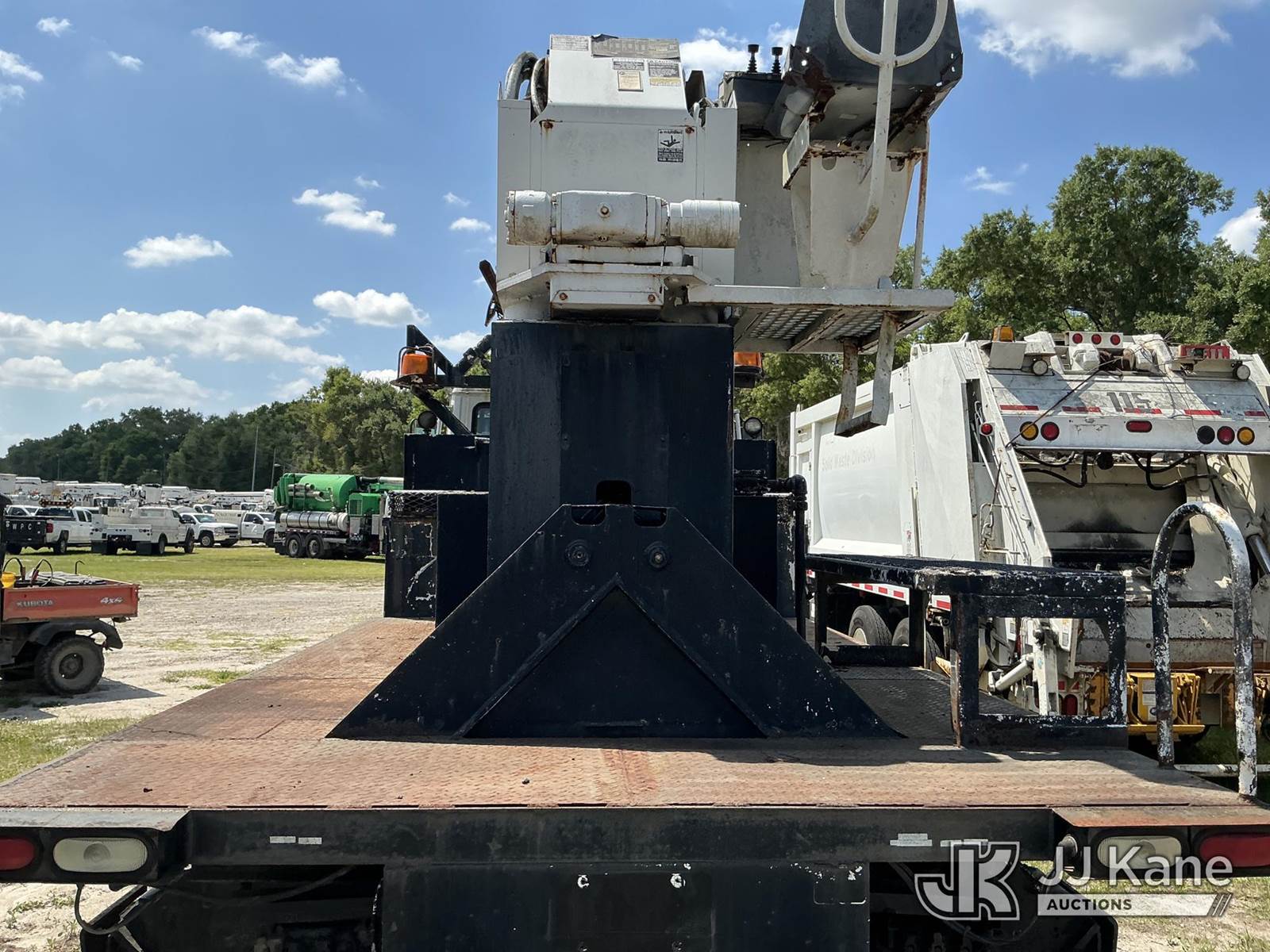 Altec D947-BR, 17,850 Lb Digger Derrick s/n 0999BA1955, with 47 ft sheave height, 2-spd digger, tip winch, pole grabs & riding console, rear mounted on 2000 Freightliner FL80 4x4 Flatbed/Utility Truck, Cat 3126 diesel, 7-spd, A/C, with front winch, (Exempt from Odometer Disclosure - Reads 113,777 miles) (Not Running, Condition Unknown) (Missing Auger, Rust/Mold Damage). The manufacturer has notified JJ Kane that this unit to has reached the End of Service life and it will not provide service for the unit. Parts and/ or technical support for the unit may be limited. Also, this equipment is subject to an open recall. 244D (CSN) Digger Hanger Bracket and Latch Inspection 246D (CSN) Turntable Tilt Procedure Correction The equipment should not be operated until this is addressed. Buyer is responsible for reviewing the recall notice and contacting the manufacturer to schedule the recommended corrective actions. Associated costs may be covered by the manufacturer in some cases. (FL Residents Purchasing Titled Items – tax, title & registration fees will be collected at the maximum rate of $400.00 under 25,999 and $800.00 for Over 26,000 and $250.00 trailers – Proof of insurance is mandatory; Out of State Residents Purchasing Title Items – tax will be collected based upon your state rate.)) This is a Titled Item NOTE: This unit is being sold AS IS/WHERE IS via Timed Auction and is located in Thonotosassa, FL. Inspection & preview days for this unit are the 2 business days prior to the first day of items closing for this auction, item is located at 11720 N US 301 Thonotosassa, Fl 33592 and hours of operations are 8a-4p. For pre-sale questions, please contact Office Staff @ (813) 986-2485. (Buyer is responsible for removal. Assistance by consignor or JJ Kane Auctions is not assured.)