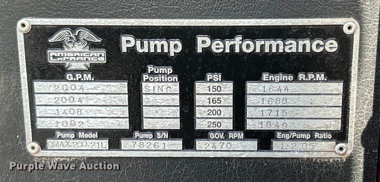 2007 Chevrolet C8500 pumper fire truck, Miles: 7,820 on odometer, VIN: 1GBP8C1B77F421797, Engine, Isuzu LF8, Displacement: 7.8L, Cylinders...