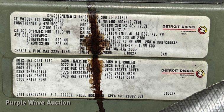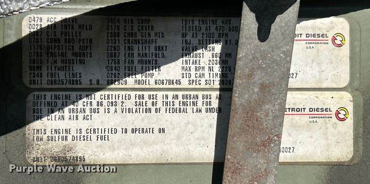 2002 International MA035 pumper fire truck, Miles: 225,866 on odometer, VIN: 1HTMKAAN62H407484, Engine, International DT466, Displacement:...