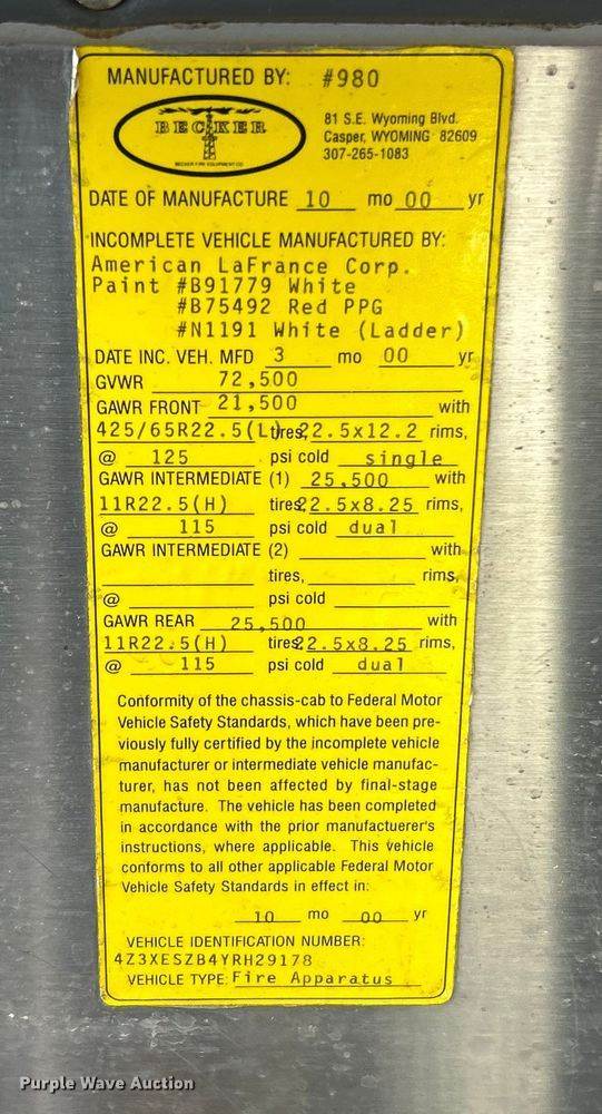 Ladder inspection documents available upon request to alan.mick@purplewave.com