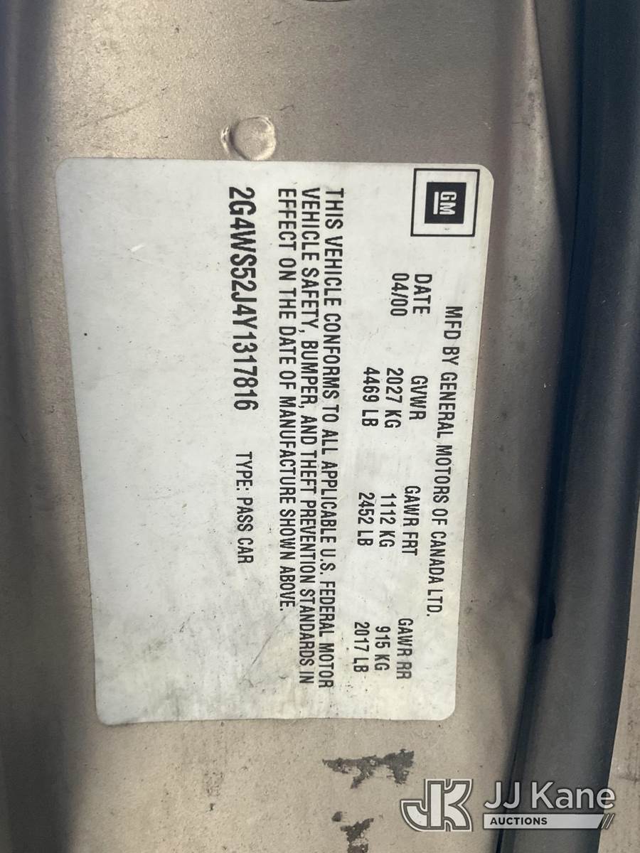 2000 Buick Century 4-Door Sedan, 6-cyl gas, 4-Speed Automatic, A/C, (Exempt from Odometer Disclosure - Reads 88,670 miles) (Runs & Moves)(Vehicle previously used with a 'cold plate' or protected record registration. Due to the prior status, VIN may not appear in NMVTIS, which could affect DMV title/registration processing. Buyer acknowledges and accepts this) This is a Titled Item NOTE: This unit is being sold AS IS/WHERE IS via Timed Auction and is located in Jurupa Valley, CA. Inspection & preview days for this unit are the 2 business days prior to the first day of items closing for this auction, item is located at 4510 Muth Way Jurupa Valley, CA 92509 and hours of operations are 8a-4p. For pre-sale questions, please contact please contact Office Staff @ (310) 353-7140. Dealer License Number 45696. (Buyer is responsible for removal. Assistance by consignor or JJ Kane Auctions is not assured.)