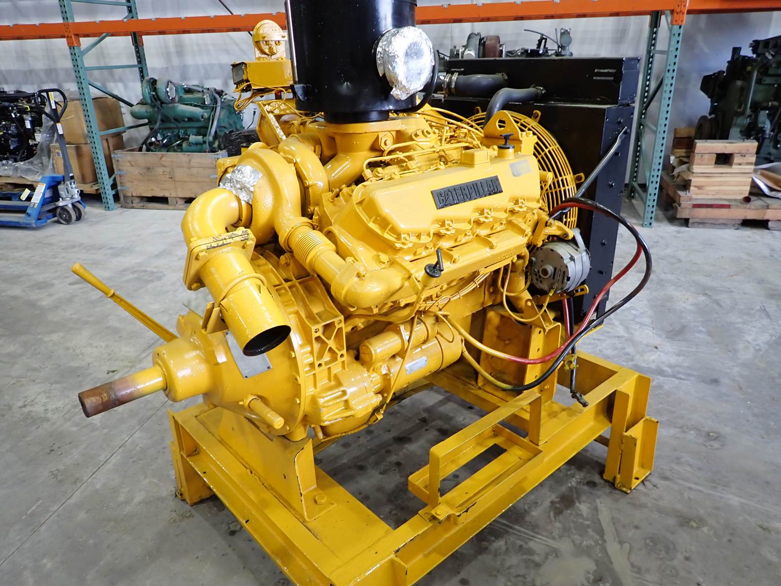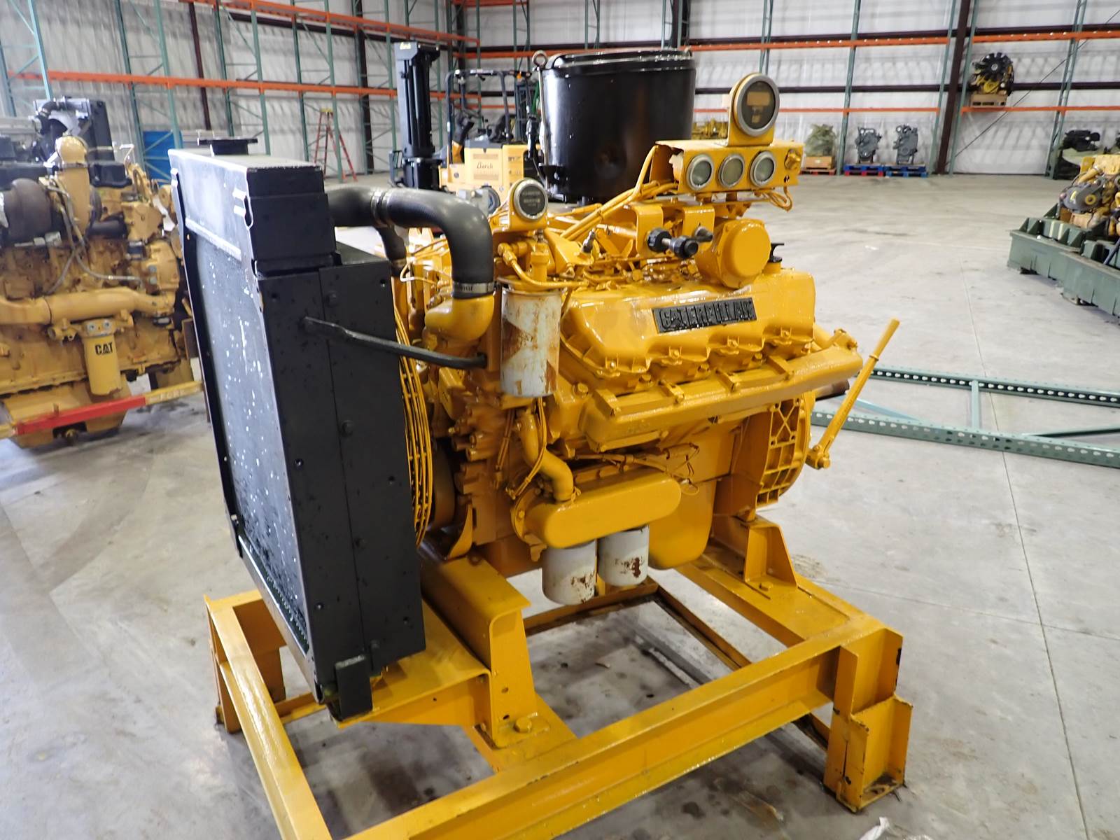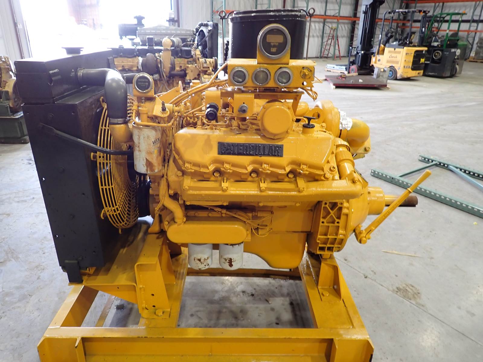 2000 Caterpillar 3208 diesel engine, turbocharged, mechanical fuel system, arrangement # 2W-8227 (2W8227,) 250 HP at 2600 RPM rating, showing 2999 hours on meter, COMPLETE power unit w/ start switch, control panel, elevated irrigation style skid, Twin Disc power take off clutch, SAE # 2 housing, radiator & other accessories as pictured. STRONG RUNNING ENGINE -- SEE VIDEO. THE WHOLE ENCHILADA HERE -- EXCELLENT FOR STATIONARY/INDUSTRIAL POWER NEEDS -- THIS ONE COMES WITH EVERYTHING !!