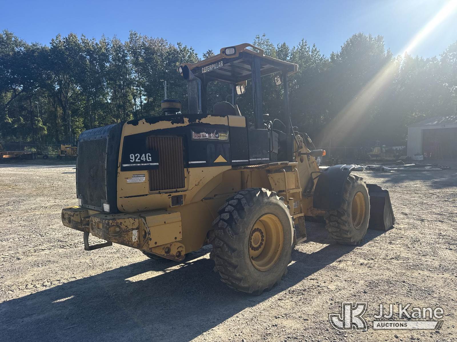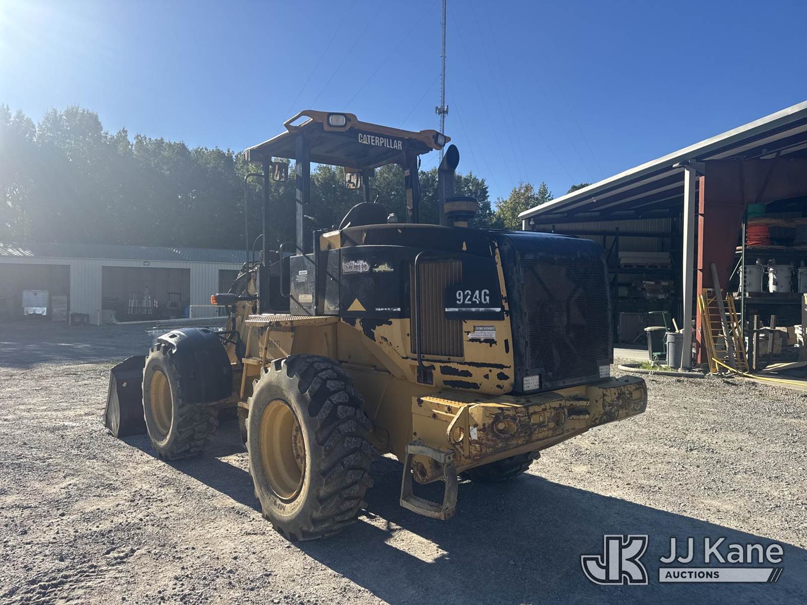 2000 Caterpillar 924G Wheel Loader, s/n 9SW00816, Cat diesel, powershift, with hyd Q/C loader bucket, 48 in forks, aux hyd, 17.5x25 & ROPS, (Runs, Moves & Operates) (Engine Leaks, Body/Rust Damage, True Hours Unknown) NOTE: This unit is being sold AS IS/WHERE IS via Timed Auction and is located in Columbia, SC. For more information please contact Pete @ 843-323-6538. (Buyer is responsible for removal. Assistance by consignor or JJ Kane Auctioneers is not assured.)