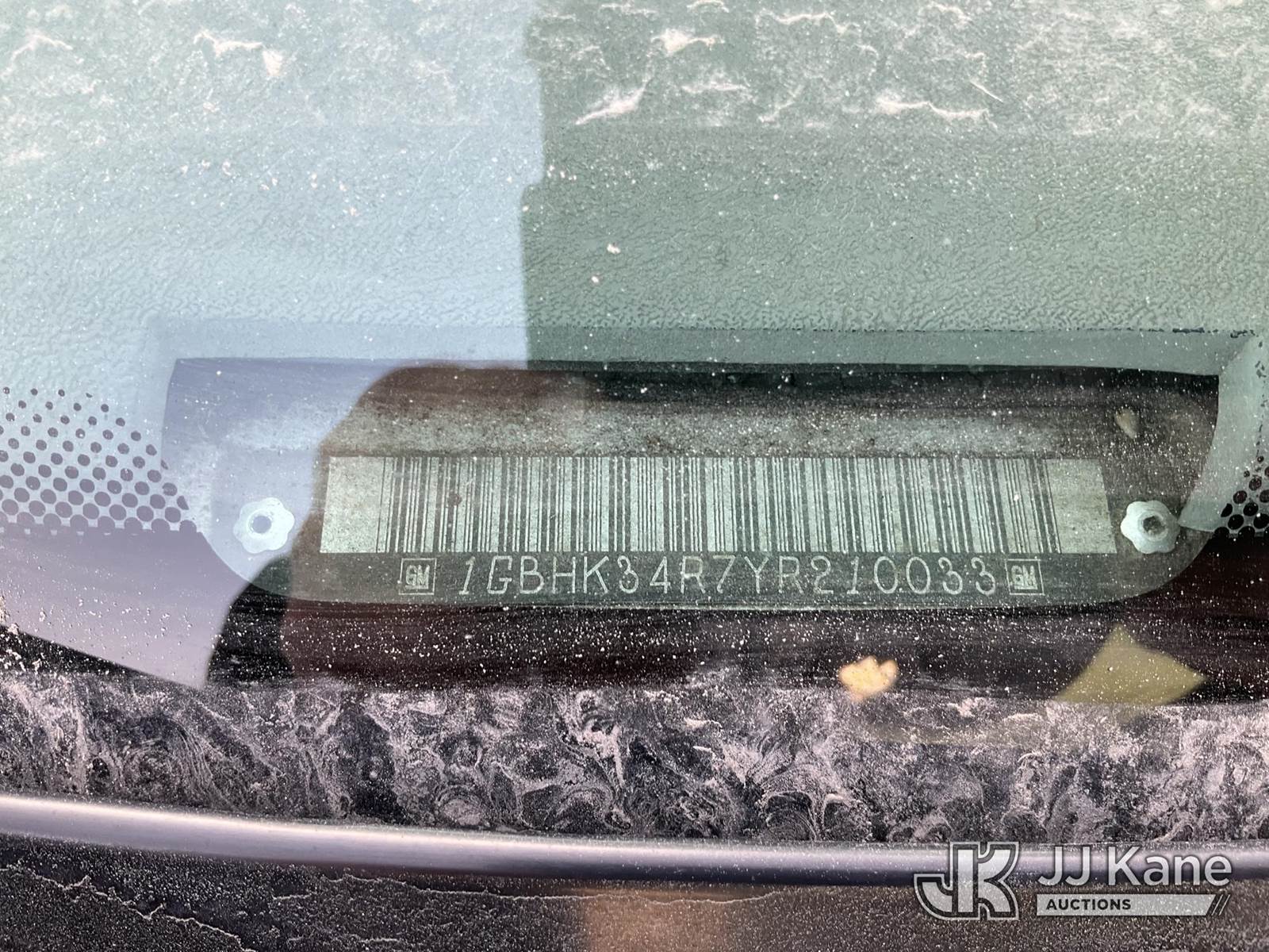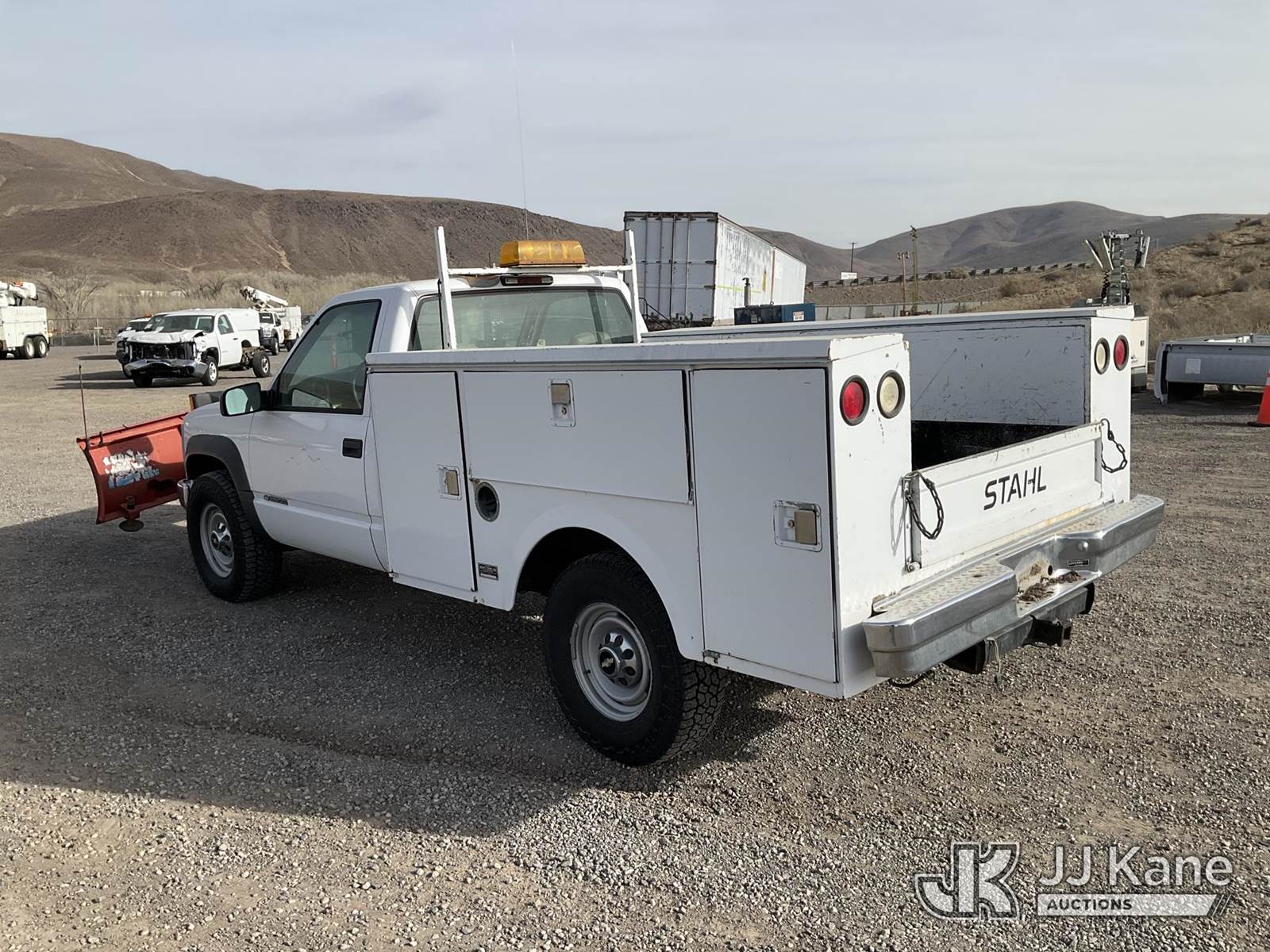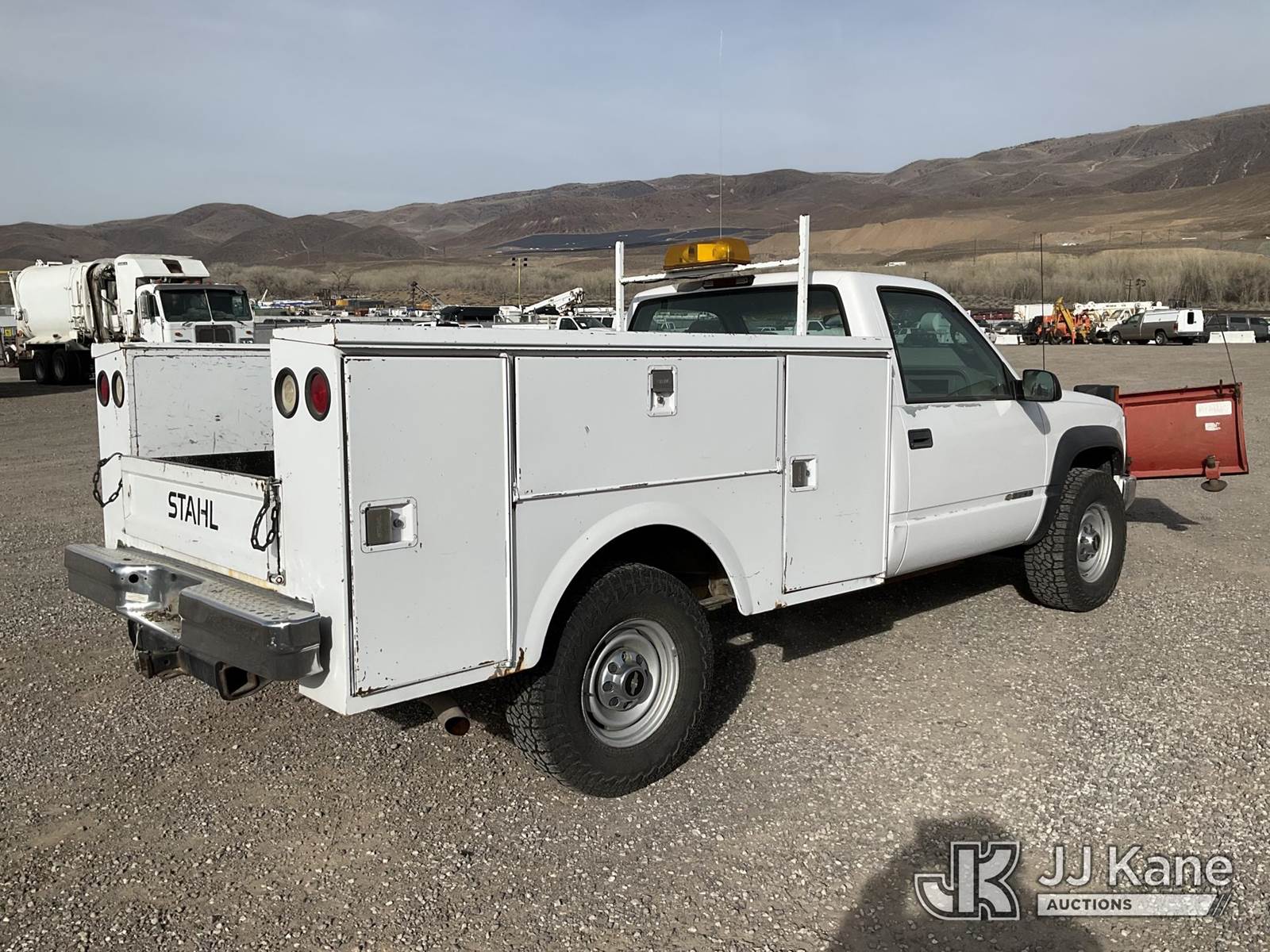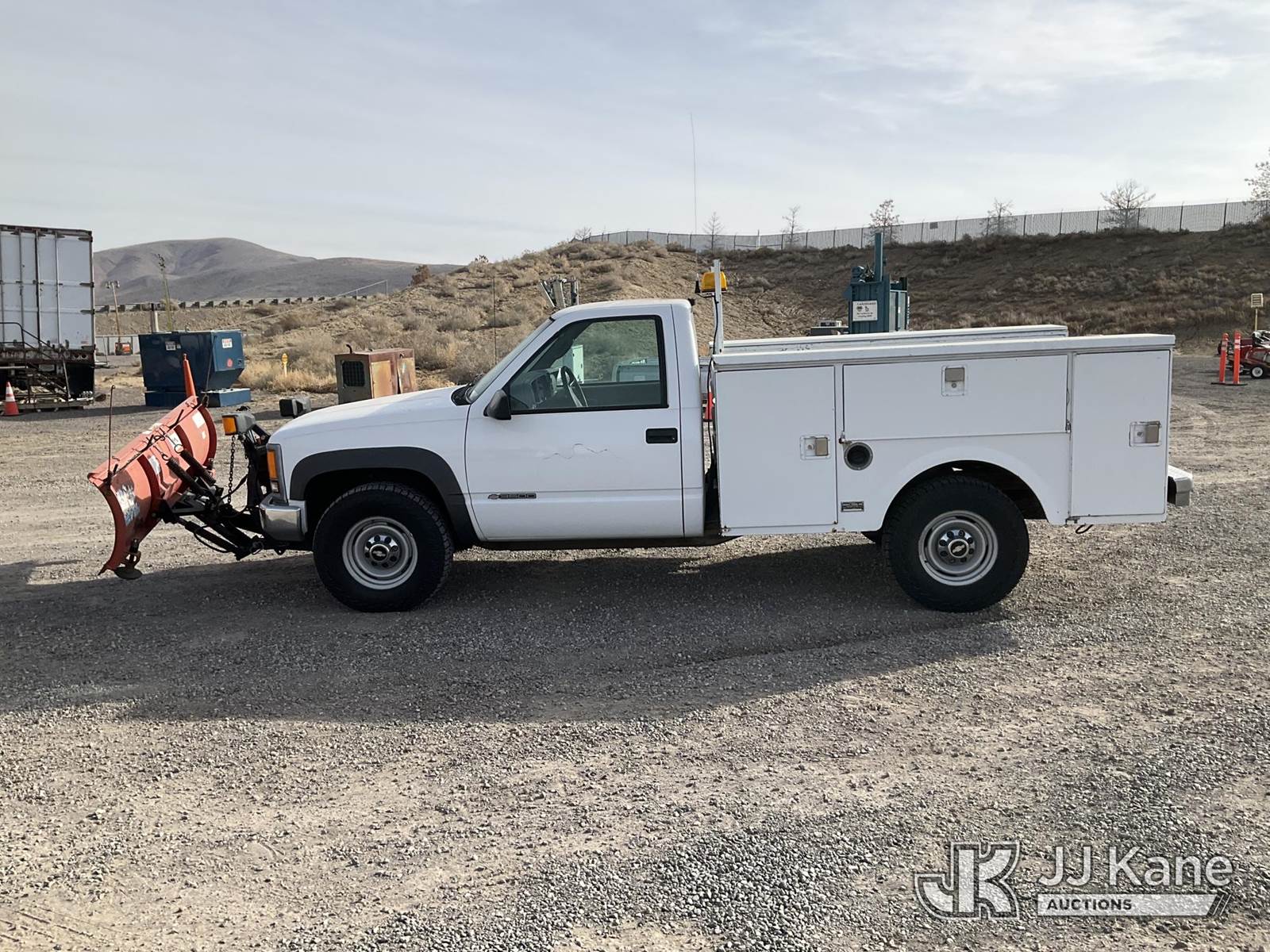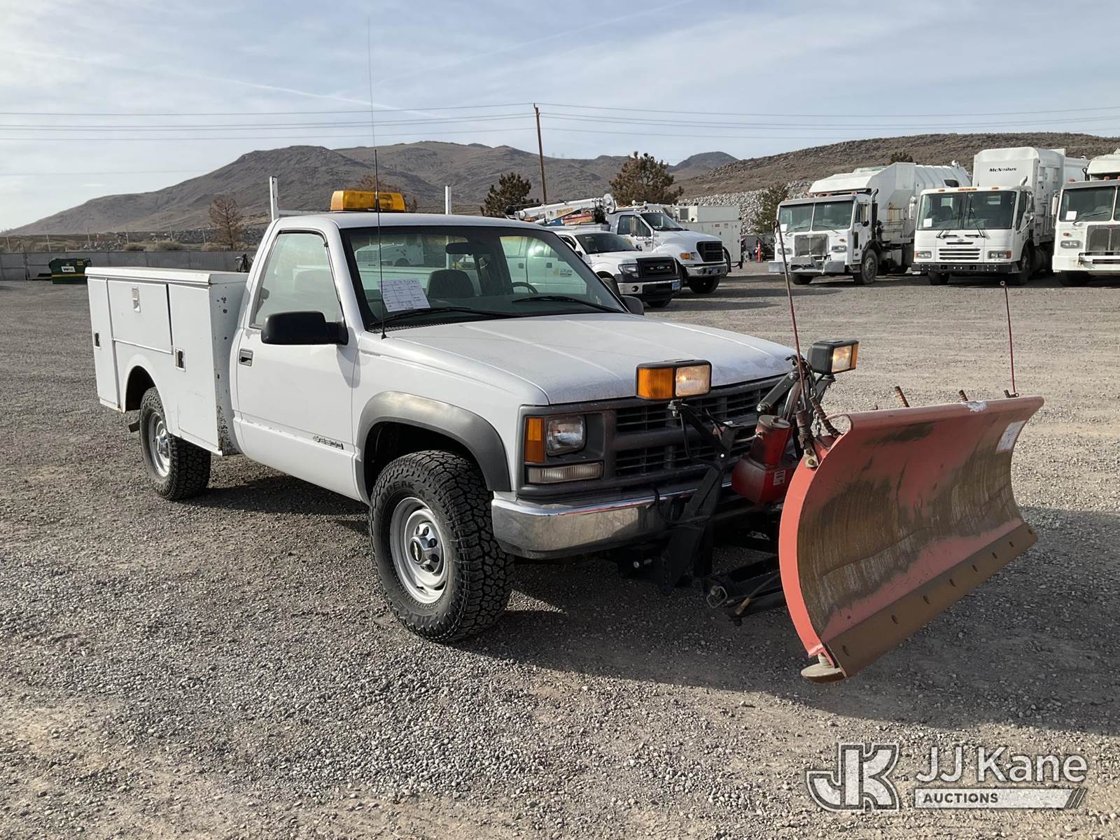 2000 Chevrolet K3500 Service Truck, 8-cyl gas, 4wd, 4-Speed Automatic, A/C, with plow, (Exempt from Odometer Disclosure - Reads 82,620 miles) (Runs & Moves, Operates)(Jump to Start, Paint Damage, Drivers Side Door Panel Has Damaged Parts But Functional) This is a Titled Item NOTE: This unit is being sold AS IS/WHERE IS via Timed Auction and is located in Sparks, NV. Inspection & preview days for this unit are the 2 business days prior to the first day of items closing for this auction, item is located at 601 Britain Dr Sparks, NV 89437 and hours of operations are 8a-4p. Titles executed exactly as bidder registered. Ensure your name and/or business name and address in JJ Kane and/or ProxiBid is correct before bidding. For pre-sale questions, please contact Office Staff @ (801) 519-0123 and provide sale date and lot number. Sparks Dealer License Number DLR000052908 / OHV000052909. (Buyer is responsible for removal. Assistance by consignor or JJ Kane Auctions is not assured.)