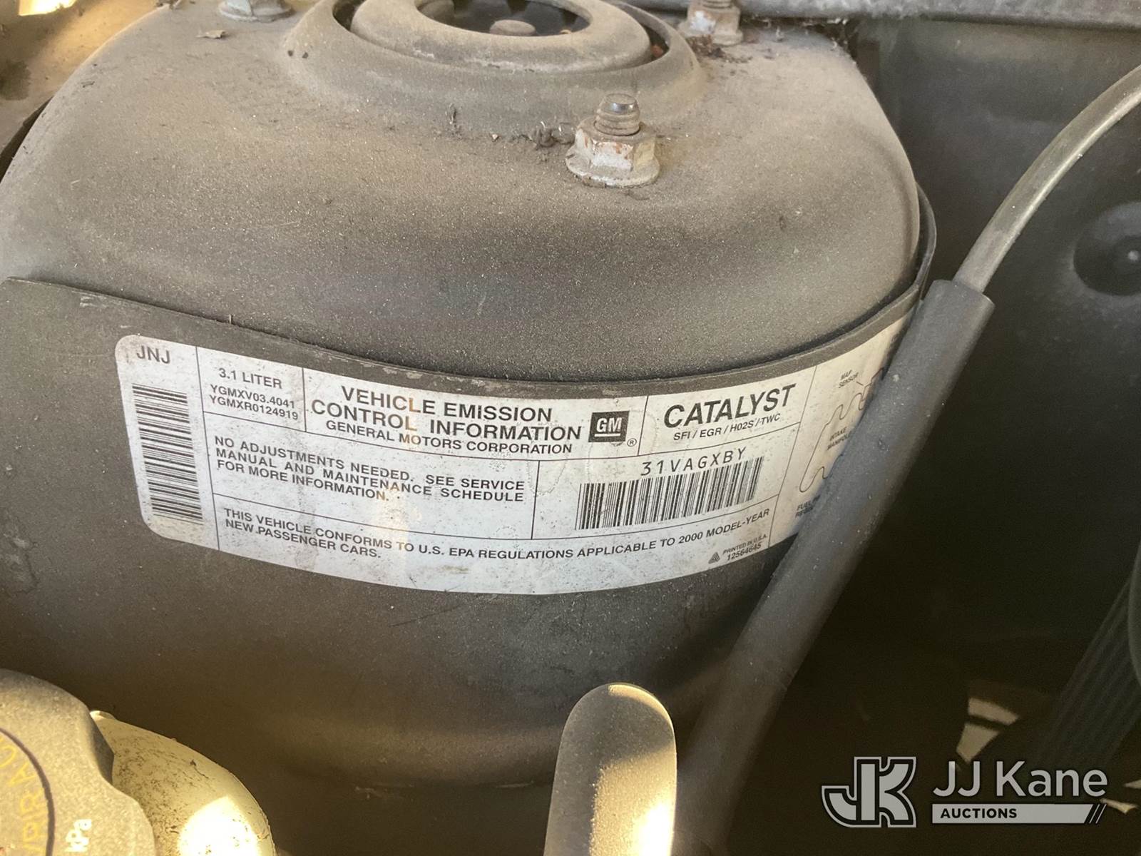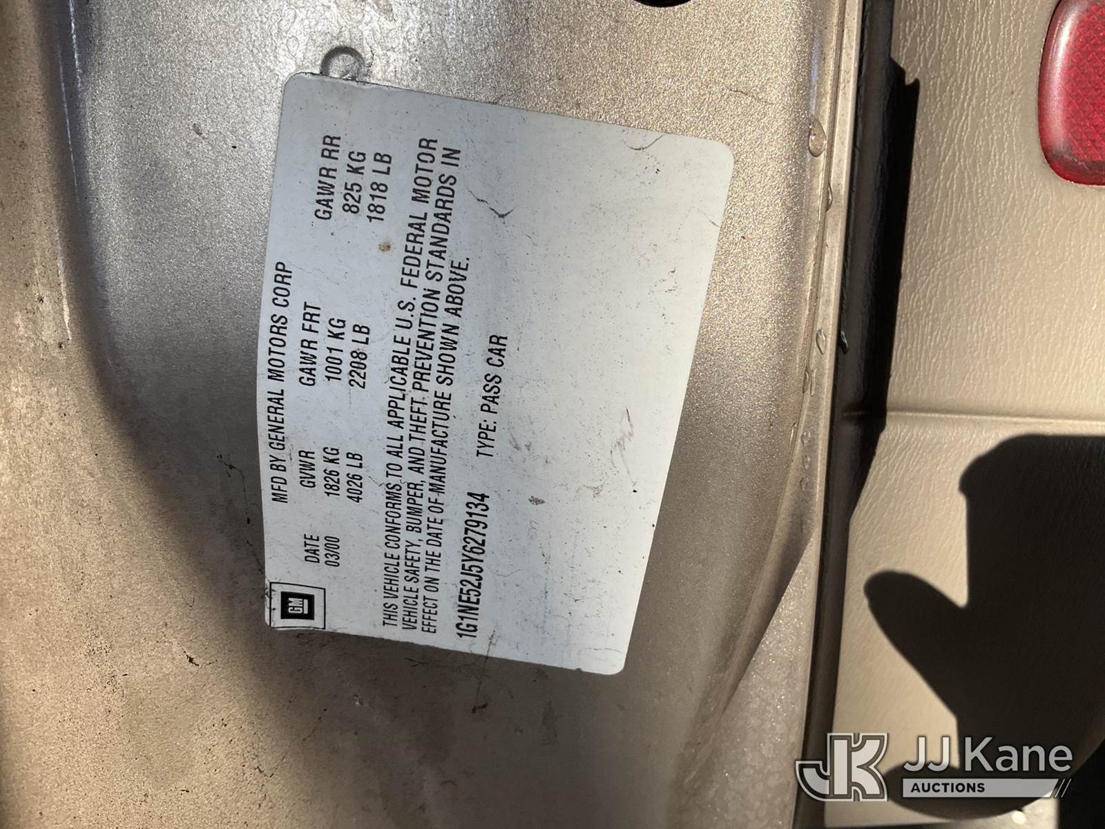 2000 Chevrolet Malibu 4-Door Sedan, s/n 1G1NE52J5Y6279134, 3.1L V6 OHV 12V Gas, FWD, 4-Speed Automatic, A/C, (Exempt from Odometer Disclosure - Reads 89,240 miles) (Runs & Moves) (Interior Damage, Driver Side Door Damage, Glove Box Damage, 1 Open Recall) This is a Titled Item NOTE: This unit is being sold AS IS/WHERE IS via Timed Auction and is located in Jurupa Valley, CA. Inspection & preview days for this unit are the 2 business days prior to the first day of items closing for this auction, item is located at 4510 Muth Way Jurupa Valley, CA 92509 and hours of operations are 8a-4p. For pre-sale questions, please contact please contact Office Staff @ (310) 353-7140. Dealer License Number 45696. (Buyer is responsible for removal. Assistance by consignor or JJ Kane Auctions is not assured.)