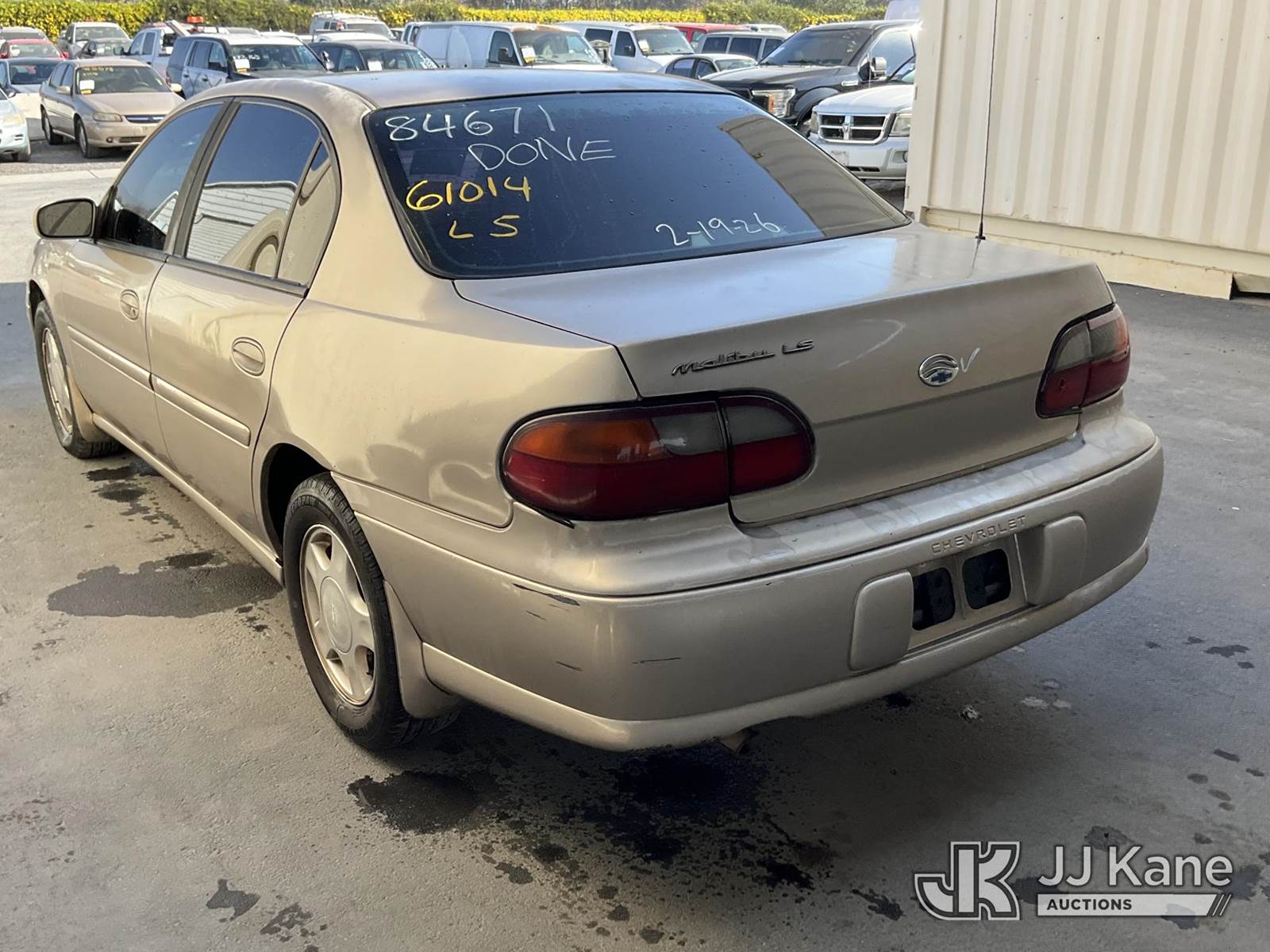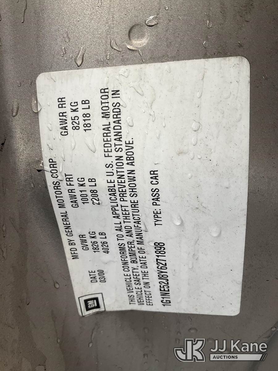 2000 Chevrolet Malibu LS 4-Door Sedan, s/n 1G1NE52J8Y6271898, 3.1L V6 OHV 12V FWD, GAS, 4-Speed Automatic, A/C, (Exempt from Odometer Disclosure - Reads 96,657 miles) (Runs & Moves) This is a Titled Item NOTE: This unit is being sold AS IS/WHERE IS via Timed Auction and is located in Jurupa Valley, CA. Inspection & preview days for this unit are the 2 business days prior to the first day of items closing for this auction, item is located at 4510 Muth Way Jurupa Valley, CA 92509 and hours of operations are 8a-4p. For pre-sale questions, please contact please contact Office Staff @ (310) 353-7140. Dealer License Number 45696. (Buyer is responsible for removal. Assistance by consignor or JJ Kane Auctions is not assured.)