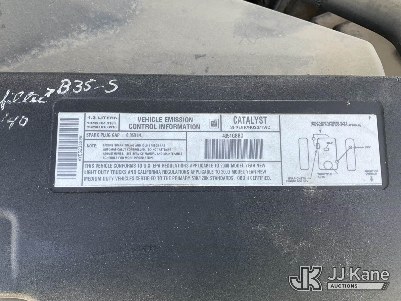 2000 Chevrolet Silverado 1500 Pickup Truck, 4.3L V6 OHV 12V gas, RWD, 4-Speed Automatic, A/C, (Exempt from Odometer Disclosure - Reads 99,146 miles) (Runs & Moves) (Tear on Drivers Seat, Body/Paint Damage) This is a Titled Item NOTE: This unit is being sold AS IS/WHERE IS via Timed Auction and is located in Sparks, NV. Inspection & preview days for this unit are the 2 business days prior to the first day of items closing for this auction, item is located at 601 Britain Dr Sparks, NV 89437 and hours of operations are 8a-4p. Titles executed exactly as bidder registered. Ensure your name and/or business name and address in JJ Kane and/or ProxiBid is correct before bidding. For pre-sale questions, please contact Office Staff @ (801) 519-0123 and provide sale date and lot number. Sparks Dealer License Number DLR000052908 / OHV000052909. (Buyer is responsible for removal. Assistance by consignor or JJ Kane Auctions is not assured.)