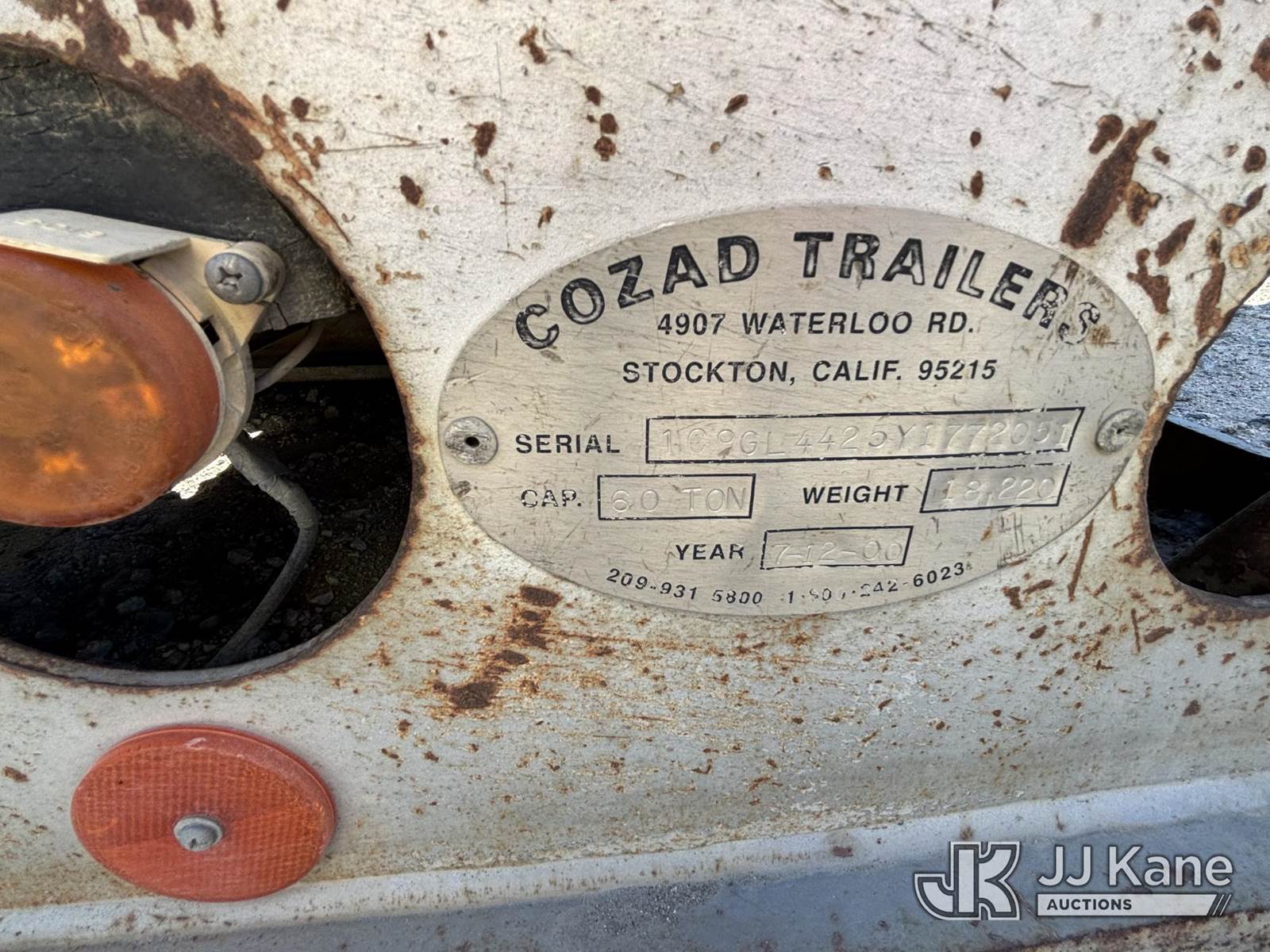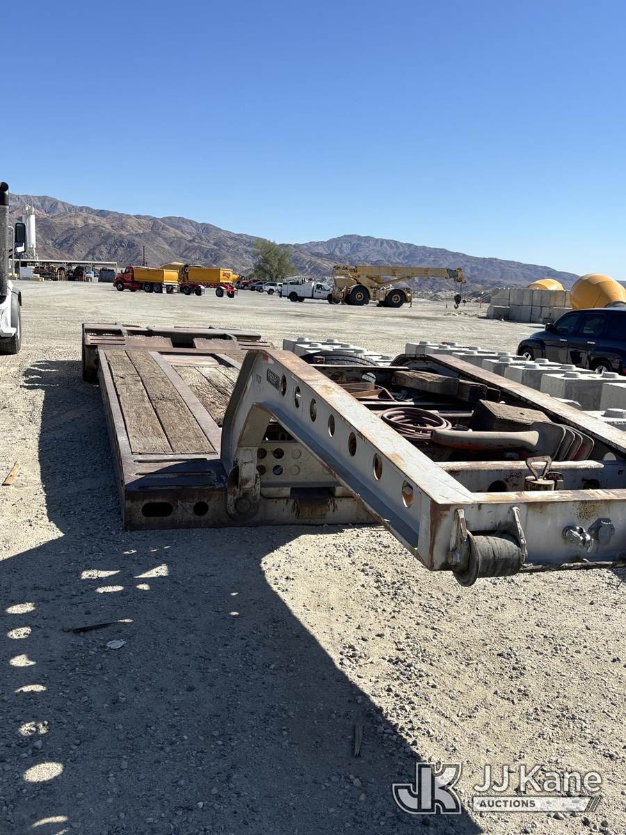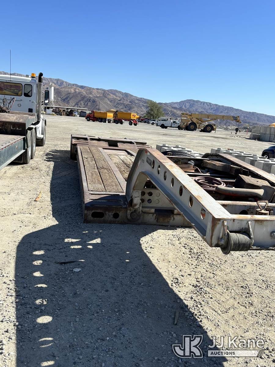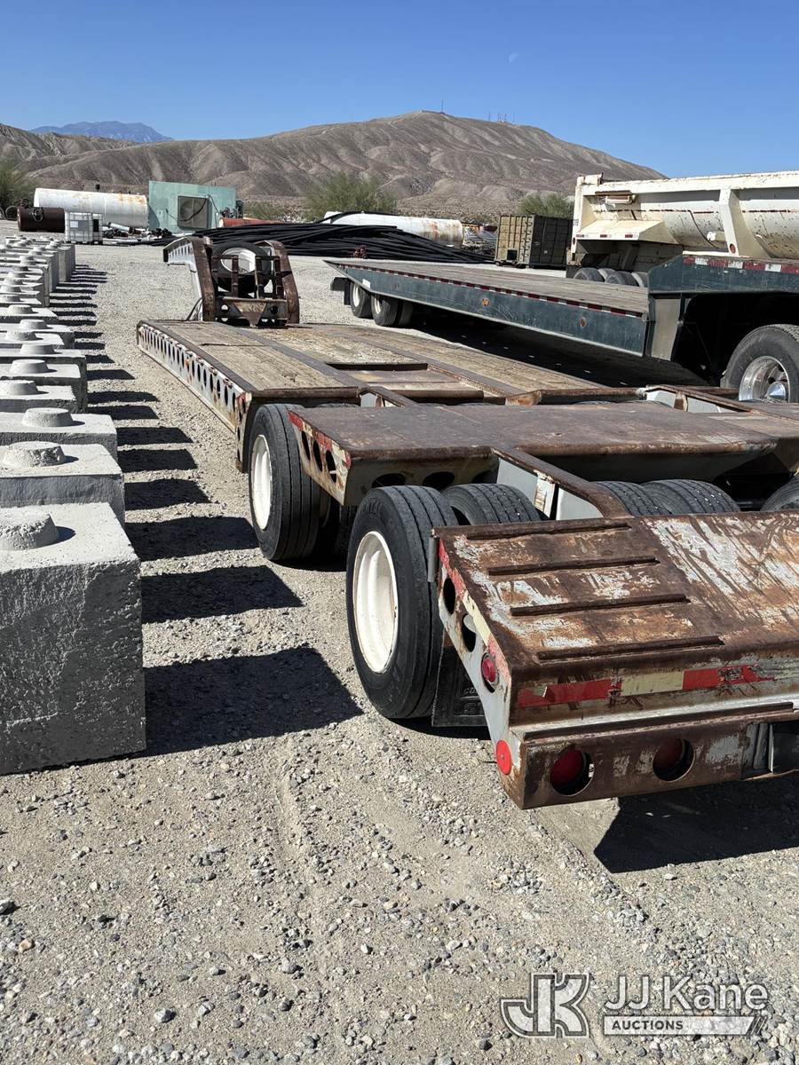 2000 COZAD 60-Ton Hydraulic Detachable Gooseneck Lowboy, with 18,220-lb tare. Heavy-haul Cozad with 60-ton rating, (Runs) (Rust Damage, Weathered Deck Boards) This is a Titled Item NOTE: This unit is being sold AS IS/WHERE IS via Timed Auction and is located in Desert Hot Springs, CA. For more information & removal arrangements please contact Tony Tully @ 503-307-1348. (Buyer is responsible for removal. Assistance by consignor or JJ Kane Auctioneers is not assured.)