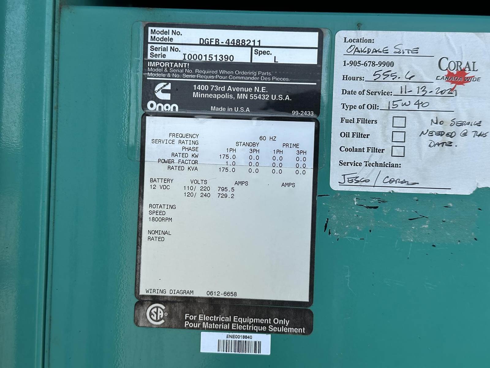 2000 Cummins DGFB Diesel Generator
