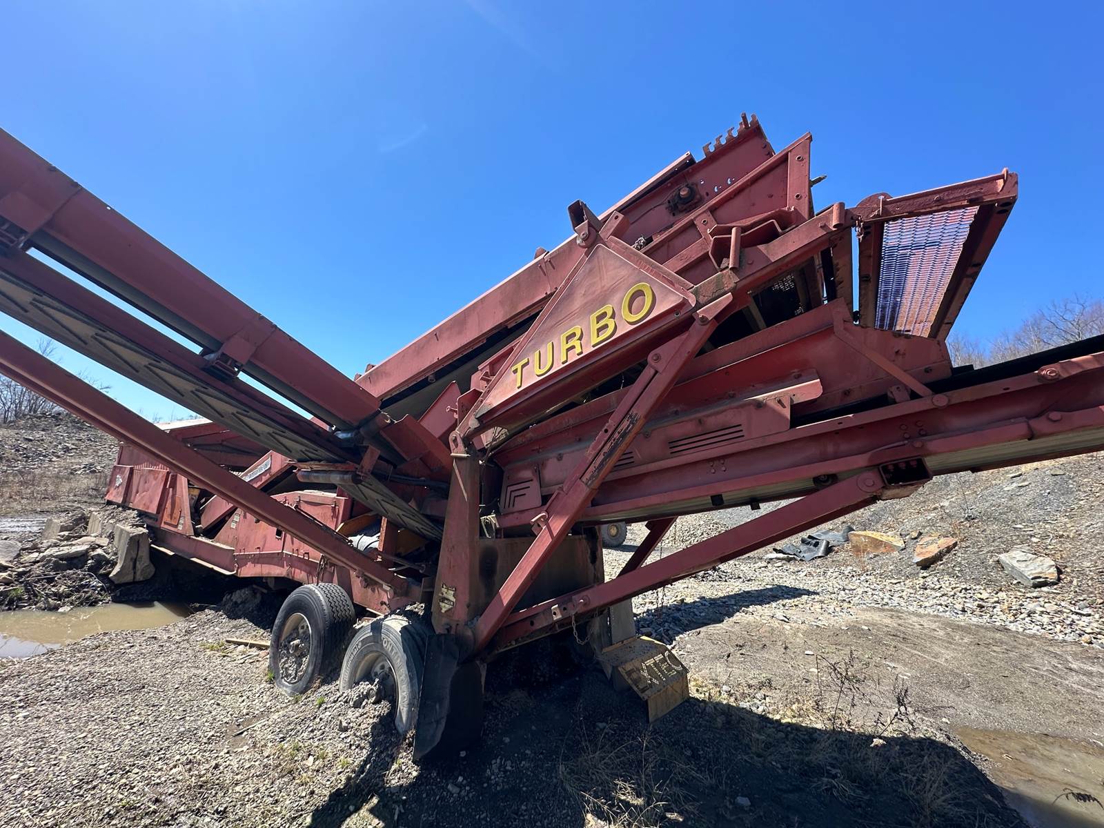 2000 Extec Turbo Screener- 75 HP Duetz Diesel, 5th Wheel, 6'X12' Grizzly Bar, 36" Main Conveyor, Two Discharge Conveyors w/ BRAND NEW BELTS, 385/65R/22.5, Opt. Weight- 48,500 LBS., CALL FOR VIDEOS!!!!
