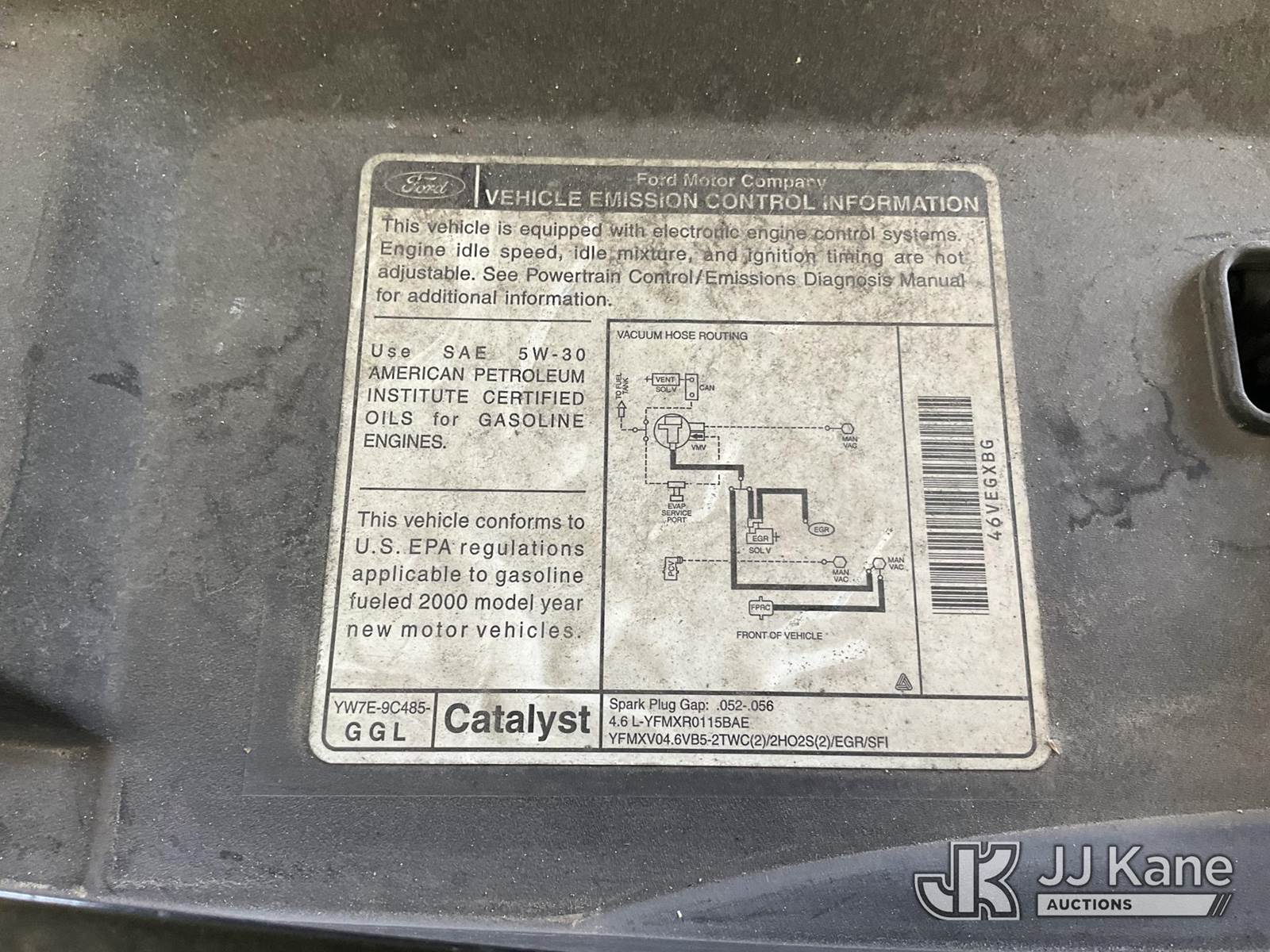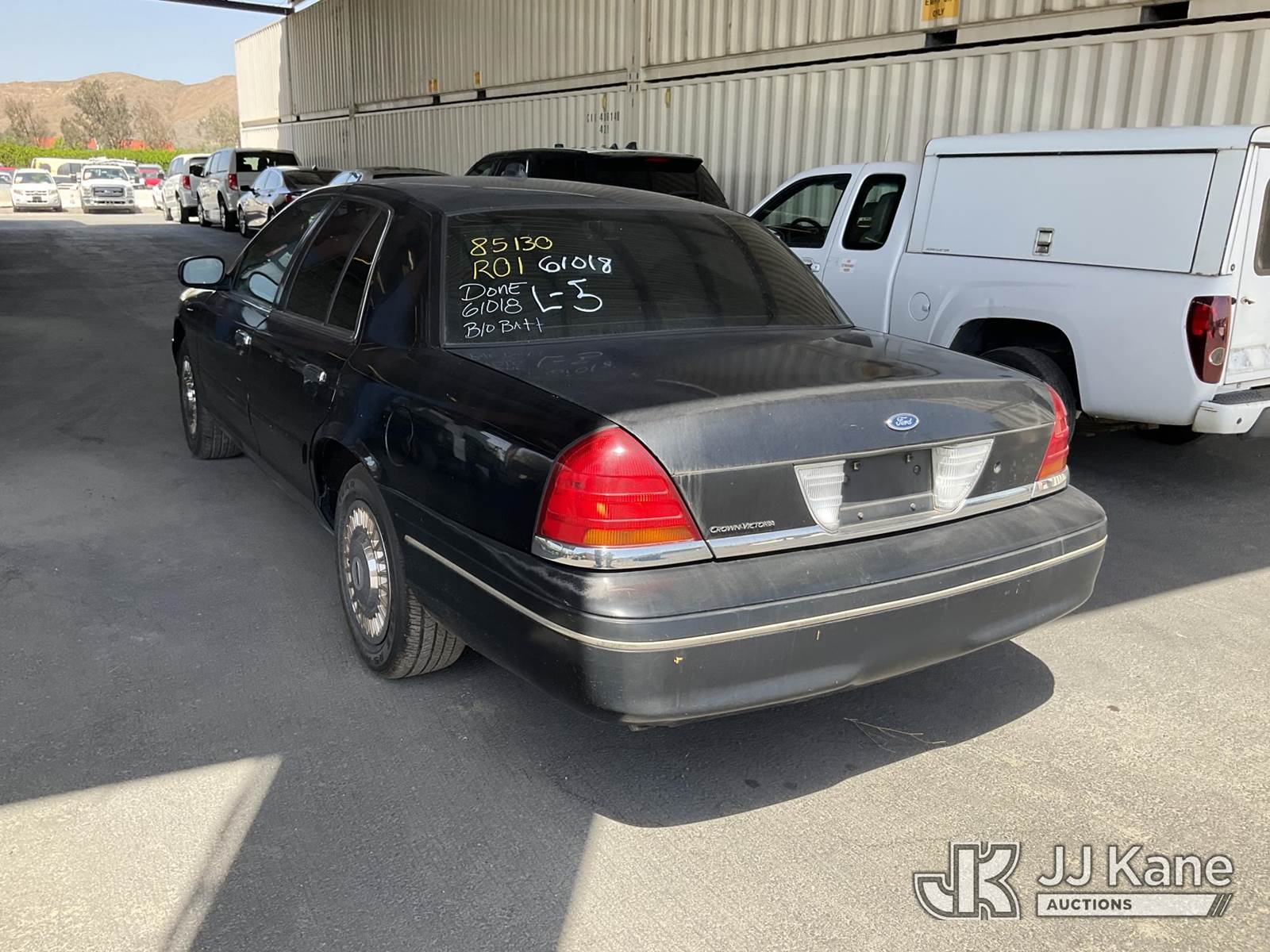 2000 Ford Crown Victoria Police Interceptor 4-Door Sedan, s/n 2FAFP71W9YX203408, 4.6L V8 SOHC 16V RWD, GAS, 4-Speed Automatic, A/C, (Exempt from Odometer Disclosure - Reads 127,422 miles) (Runs & Moves) This is a Titled Item NOTE: This unit is being sold AS IS/WHERE IS via Timed Auction and is located in Jurupa Valley, CA. Inspection & preview days for this unit are the 2 business days prior to the first day of items closing for this auction, item is located at 4510 Muth Way Jurupa Valley, CA 92509 and hours of operations are 8a-4p. For pre-sale questions, please contact please contact Office Staff @ (310) 353-7140. Dealer License Number 45696. (Buyer is responsible for removal. Assistance by consignor or JJ Kane Auctions is not assured.)