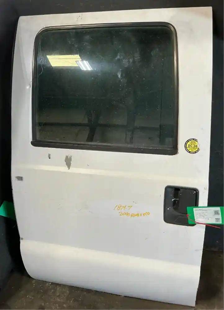 2000 Ford F-350 Rear Driver Side Door, Manual Window. Visible Rust On Bottom Edge & Window Edge, Interior Panel Scuffs/Scratches.