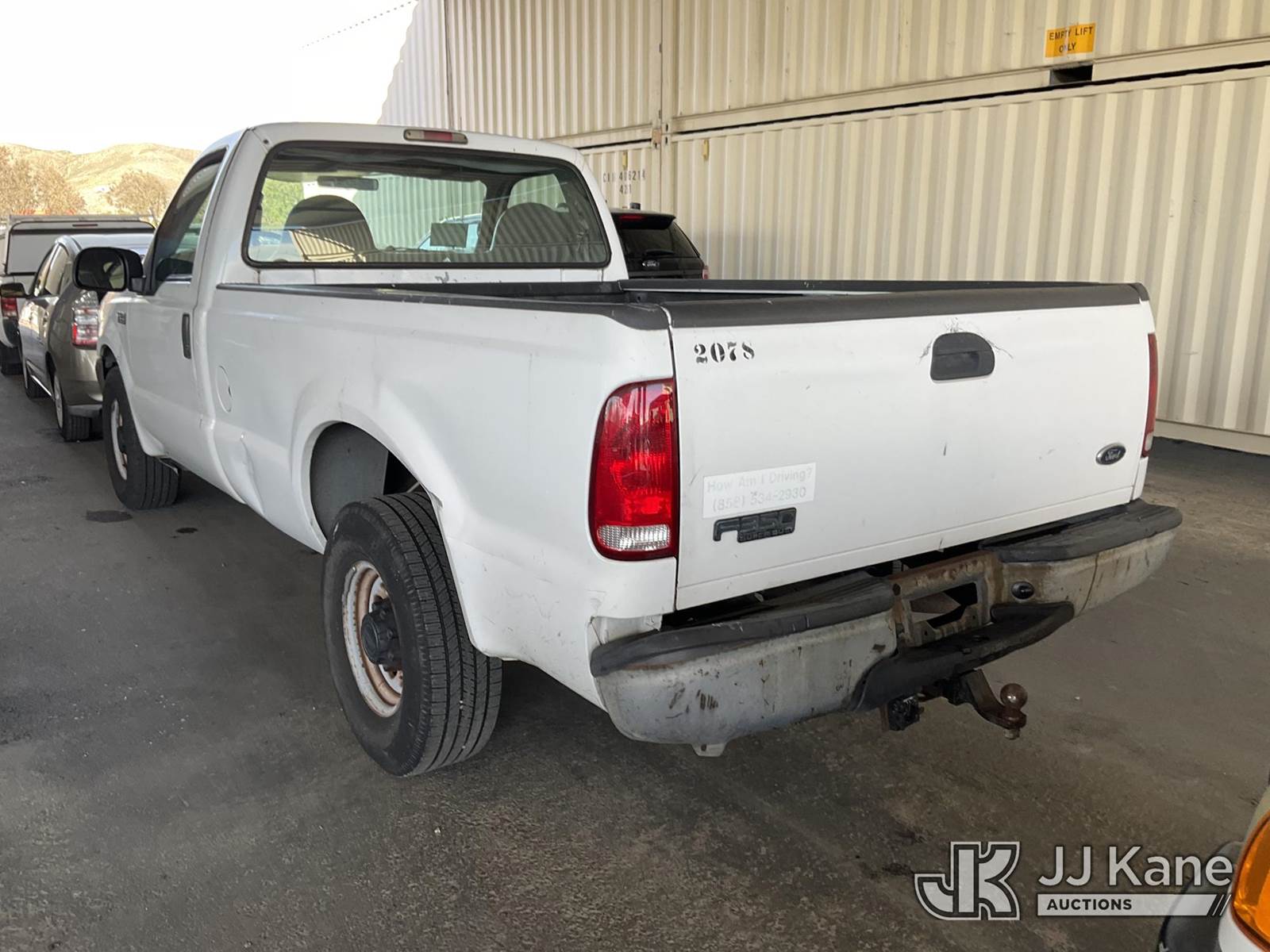 2000 Ford F-350 SD Pickup Truck, 6.8L V10 SOHC 20V Gas, RWD, 4-Speed Automatic, A/C, with Tow package, (Exempt from Odometer Disclosure - Reads 69,663 miles) (Runs & Moves) (Rear Bumper Damage) This is a Titled Item NOTE: This unit is being sold AS IS/WHERE IS via Timed Auction and is located in Jurupa Valley, CA. Inspection & preview days for this unit are the 2 business days prior to the first day of items closing for this auction, item is located at 4510 Muth Way Jurupa Valley, CA 92509 and hours of operations are 8a-4p. For pre-sale questions, please contact please contact Office Staff @ (310) 353-7140. Dealer License Number 45696. (Buyer is responsible for removal. Assistance by consignor or JJ Kane Auctions is not assured.)