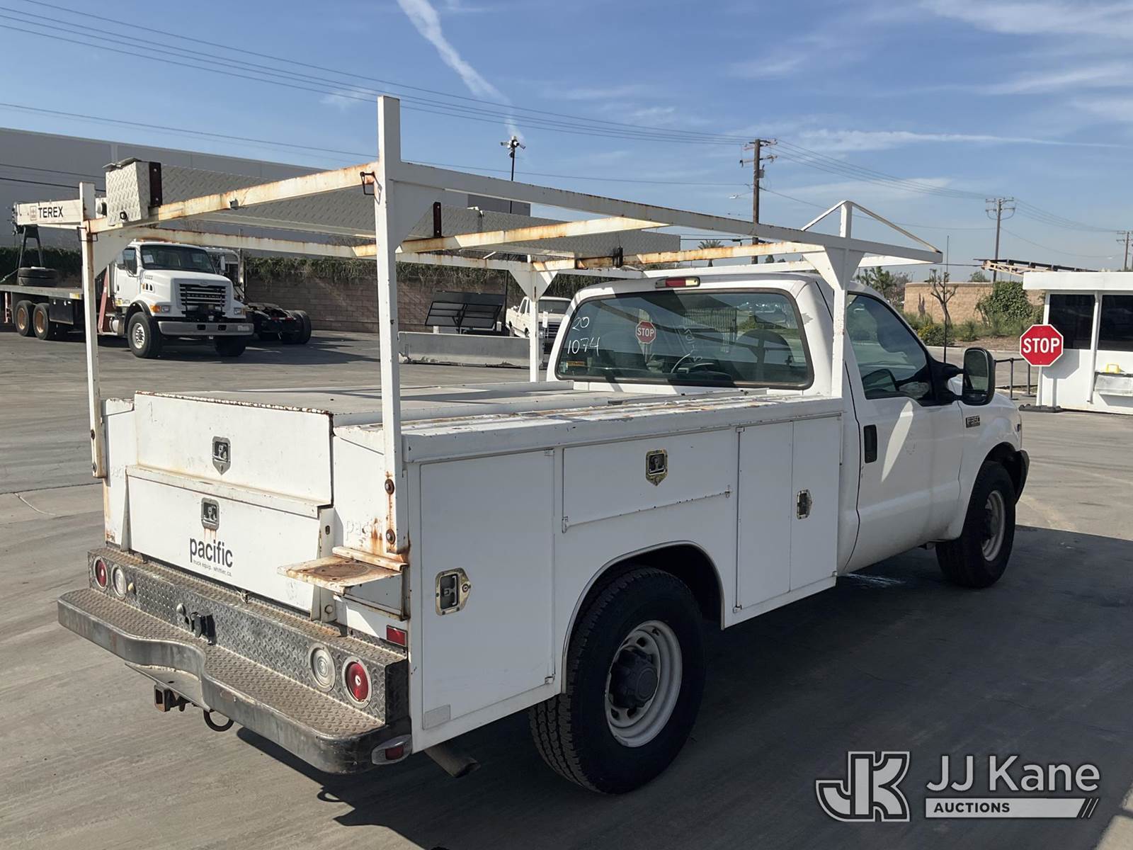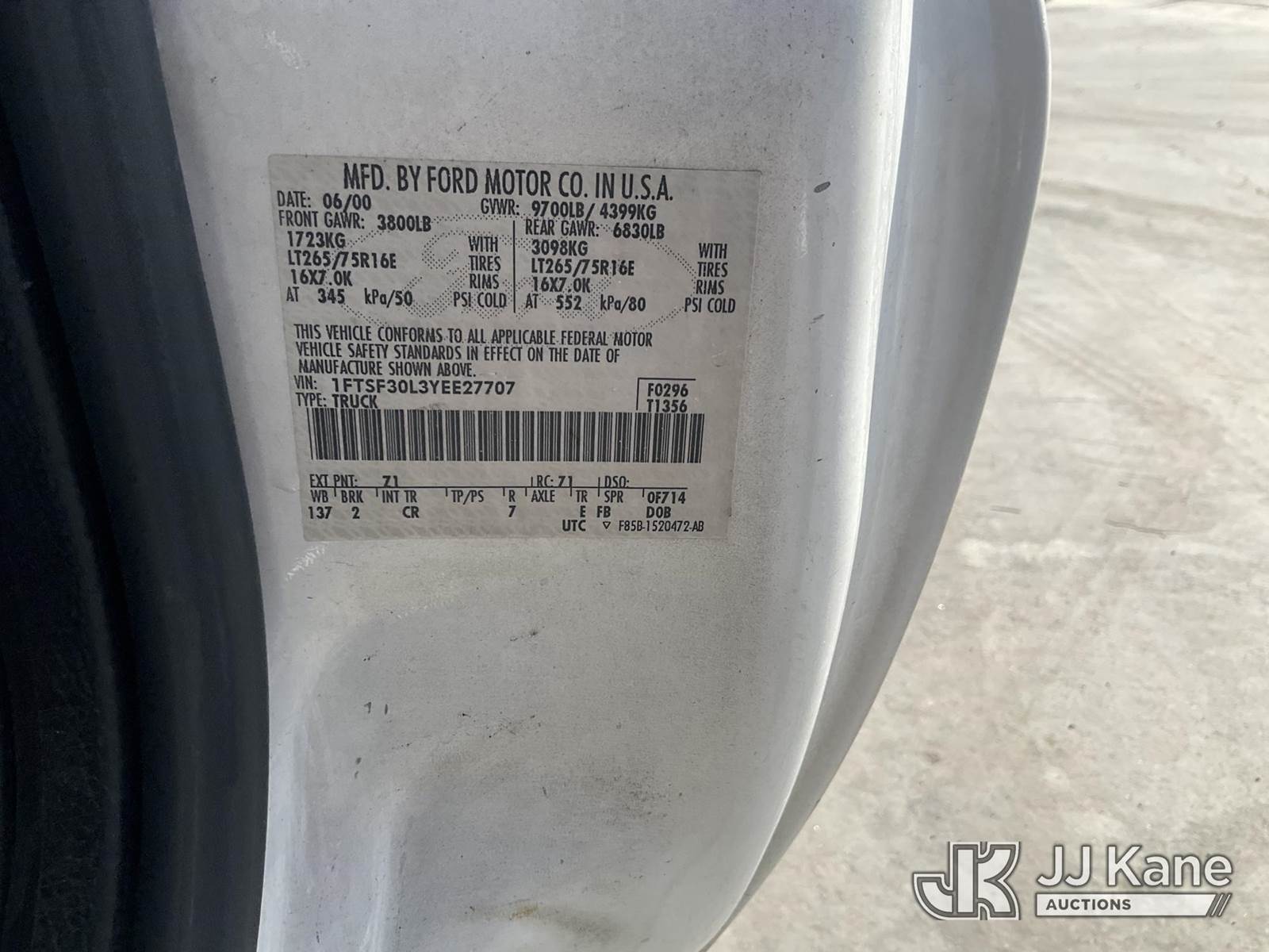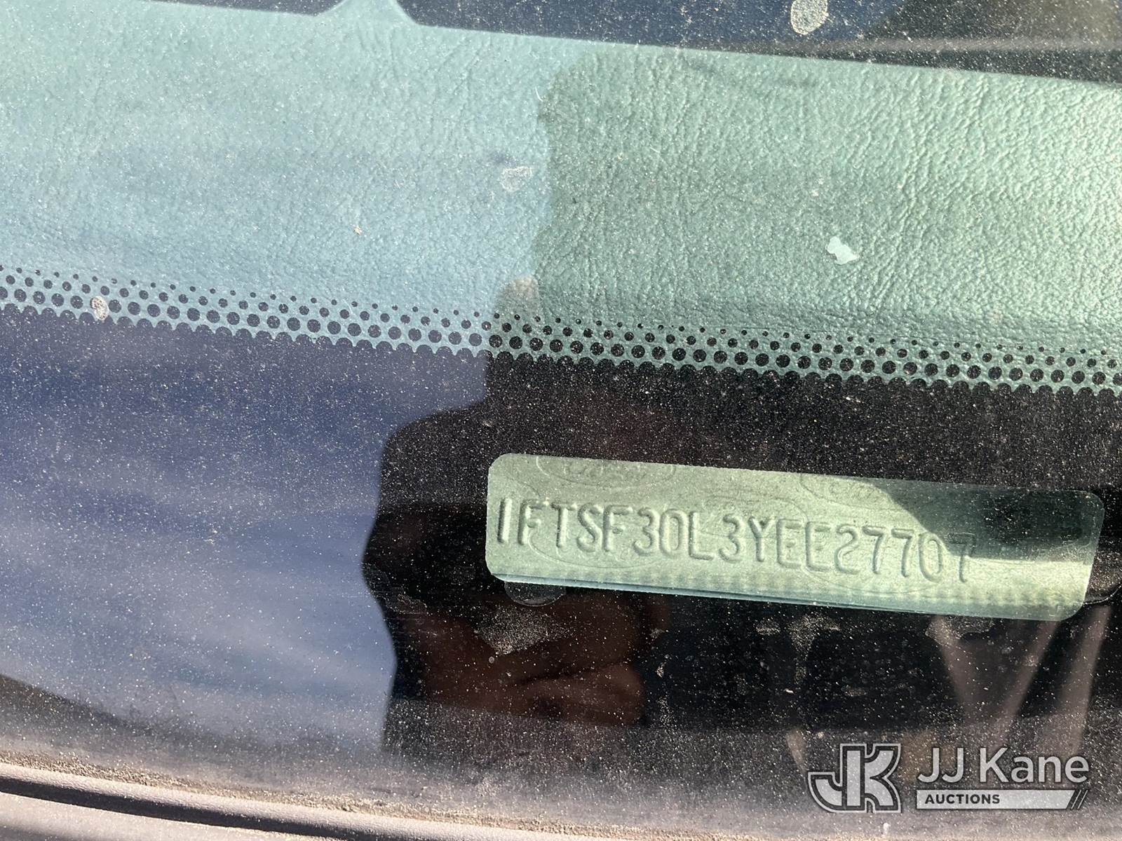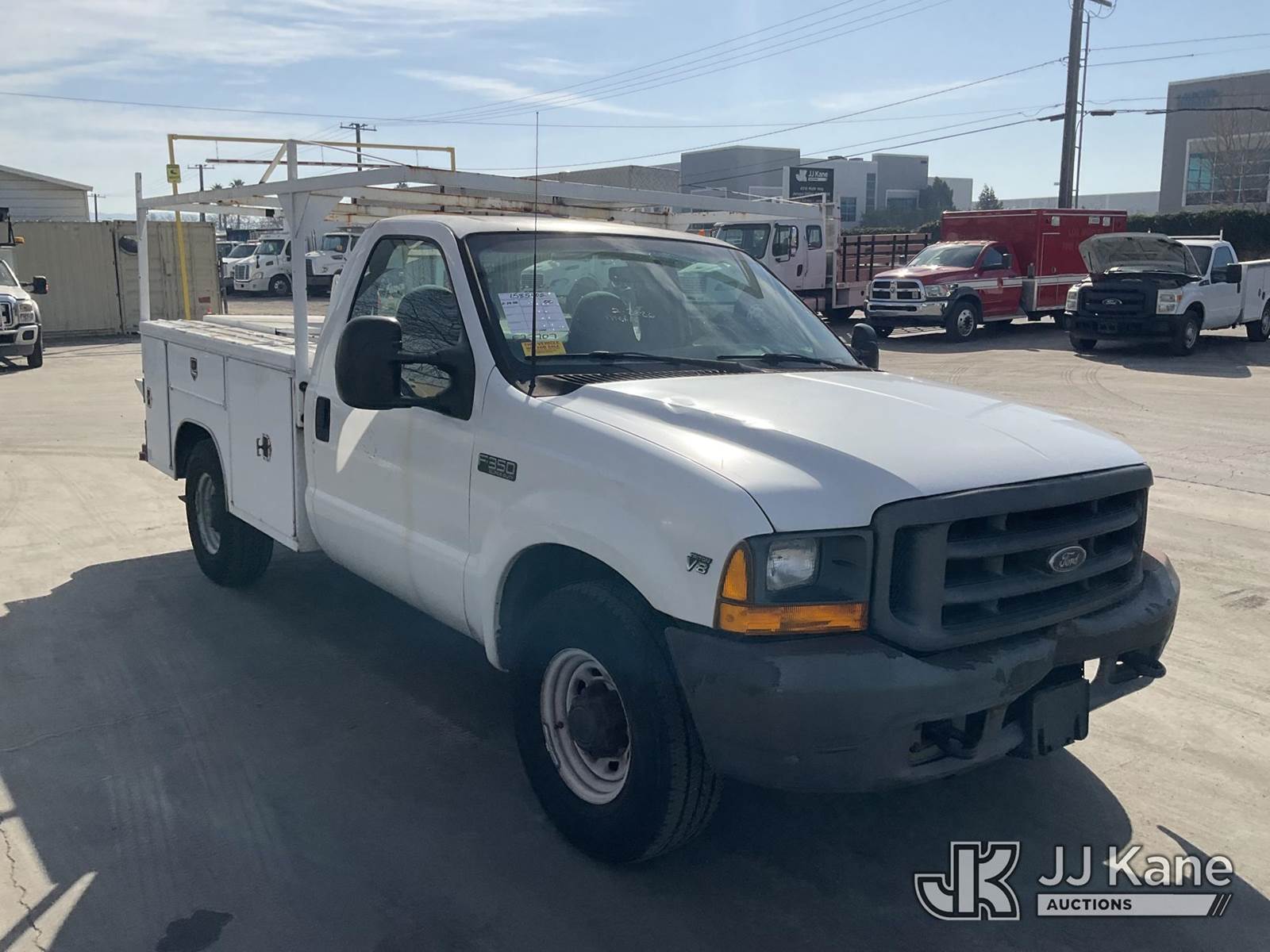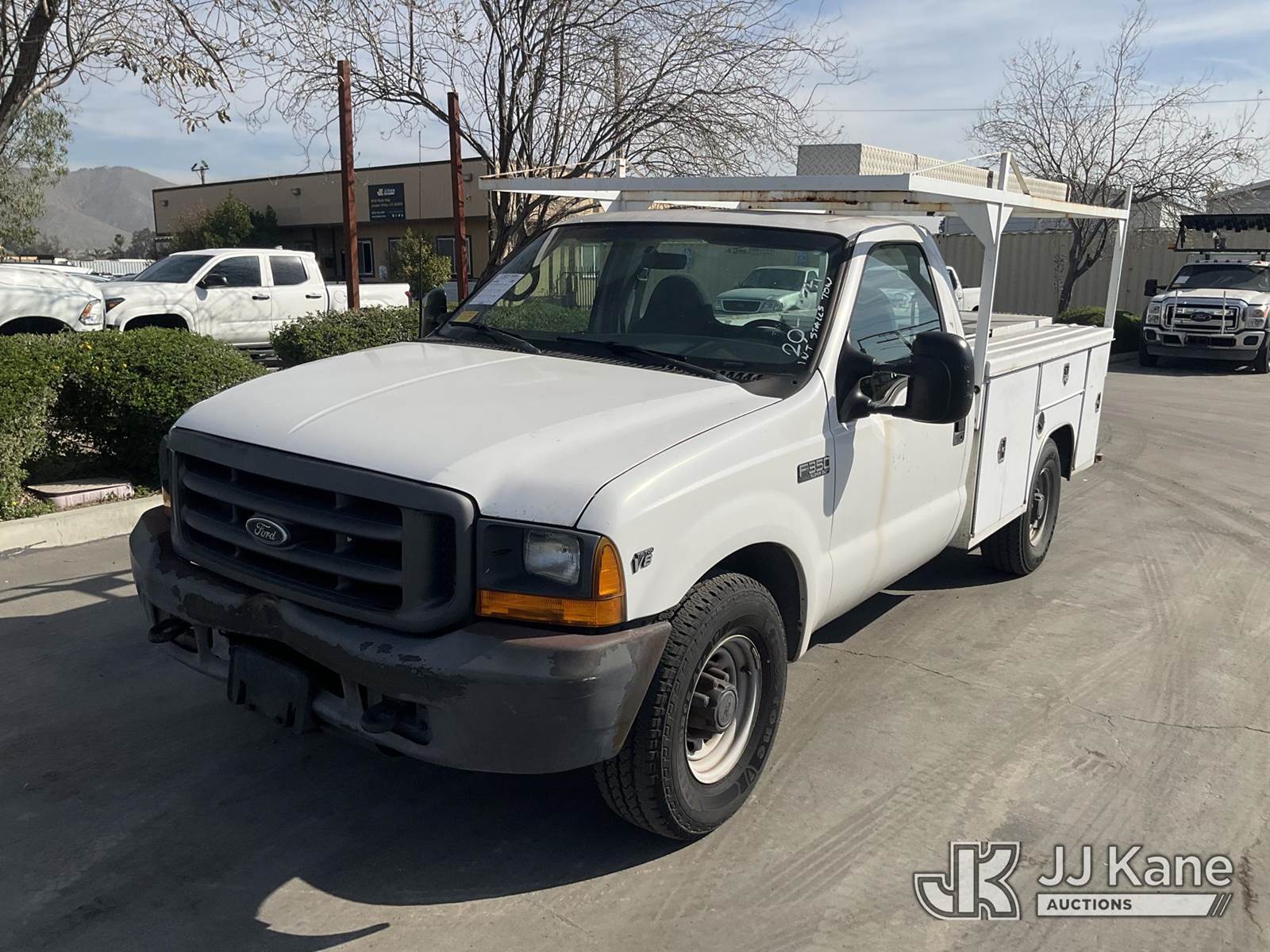 2000 Ford F-350 SD Service Truck, s/n 1FTSF30L3YEE27707, 5.4L V8 SOHC 16V RWD, Gas, Auto, A/C, with tow package, ladder rack, utility bed, (Exempt from Odometer Disclosure - Reads 69,958 miles) (Runs & Moves) This is a Titled Item NOTE: This unit is being sold AS IS/WHERE IS via Timed Auction and is located in Jurupa Valley, CA. Inspection & preview days for this unit are the 2 business days prior to the first day of items closing for this auction, item is located at 4510 Muth Way Jurupa Valley, CA 92509 and hours of operations are 8a-4p. For pre-sale questions, please contact please contact Office Staff @ (310) 353-7140. Dealer License Number 45696. (Buyer is responsible for removal. Assistance by consignor or JJ Kane Auctions is not assured.)