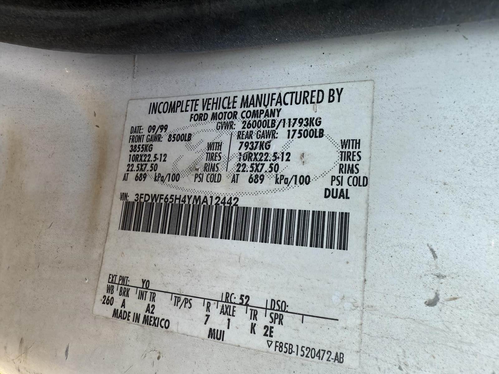46317 Miles, 285 HP, Front Axle Weight: 20000 lb, Rear Axle Weight: 23000 lb