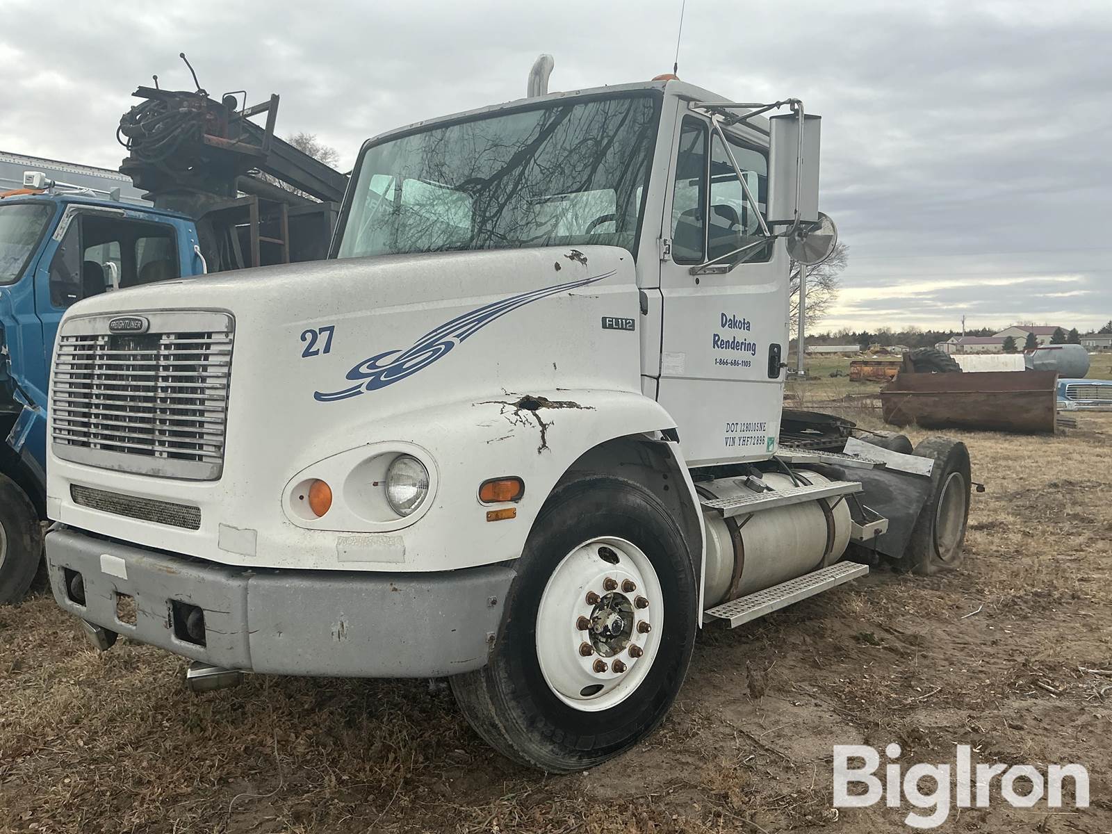 2000 Freighliner FL112 S/A Truck Tractor, 643,190 miles Showing, Title Will Be Marked Miles Exempt, Caterpillar C-10 6-Cylinder Diesel, Water Cooled Engine, Manual Transmission, Air Suspension, Steel Wheels, Adjustable 5th Wheel, Single Exhaust Stack, Double Fuel Tank, 11R22.5 Tires, NOT OPERATIONAL DAY OF LISTING, VIN: 1FUWTEDAXYHF72896