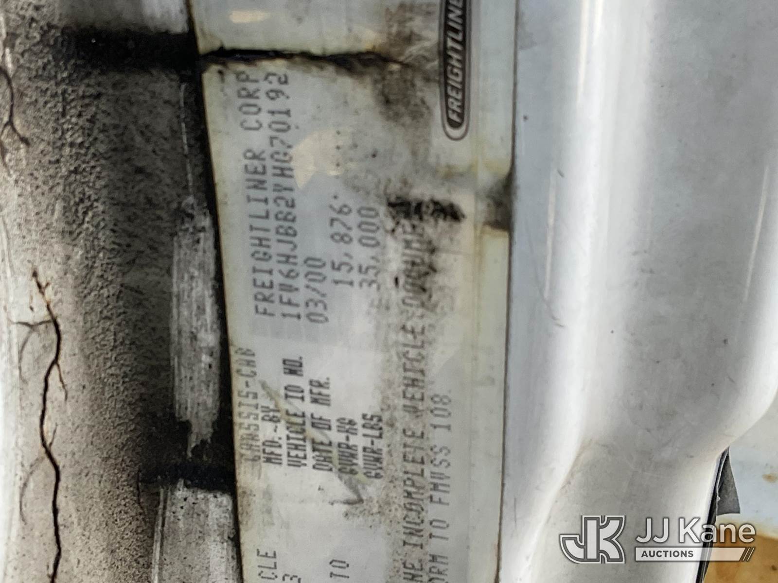 2000 Freightliner FL70 Reel Carrier Truck, 7.2L L6 DIESEL Auto, 4X2, A/C, with rear capstan, winch in bed, (Exempt from Odometer Disclosure - Reads 91,142 miles) (Runs & Moves) (Rust Damage) This is a Titled Item NOTE: This unit is being sold AS IS/WHERE IS via Timed Auction and is located in Verona, KY. Inspection & preview days for this unit are the 2 business days prior to the first day of items closing for this auction, item is located at 2841 Verona-Mudlick Rd Ste B Verona, KY 41092 and hours of operations are 8a-4p. For pre-sale questions, please contact Office Staff @ (502) 612-5080. Auctioneer Michael Whitebread / License # 256617. (Buyer is responsible for removal. Assistance by consignor or JJ Kane Auctioneers is not assured.)