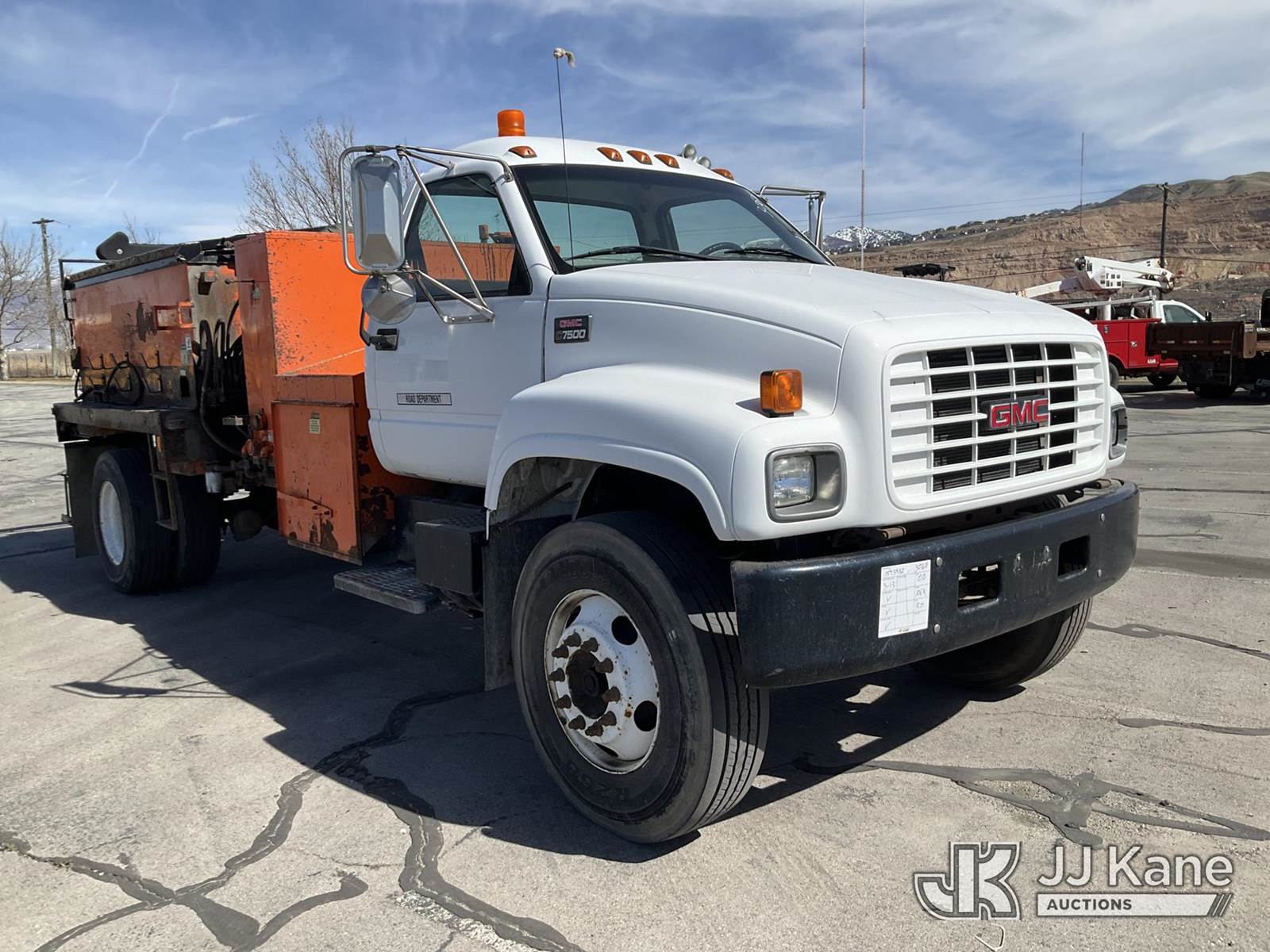 2000 GMC C7500 Asphalt Patch Truck, 7.2L diesel, Auto, A/C, with HD Industries TCM415-160 Pro Patch, (Exempt from Odometer Disclosure - Reads 106,303 miles) (Runs & Moves) This is a Titled Item NOTE: This unit is being sold AS IS/WHERE IS via Timed Auction and is located in Salt Lake City, UT. Inspection & preview days for this unit are the 2 business days prior to the first day of items closing for this auction, item is located at 2353 N Redwood Rd Salt Lake City, UT 84116 and hours of operations are 8a-4p. Titles executed exactly as bidder registered. Ensure your name and/or business name and address in JJ Kane and/or ProxiBid is correct before bidding. For pre-sale questions, please contact Office Staff @ (801) 519-0123. (Buyer is responsible for removal. Assistance by consignor or JJ Kane Auctions is not assured.)