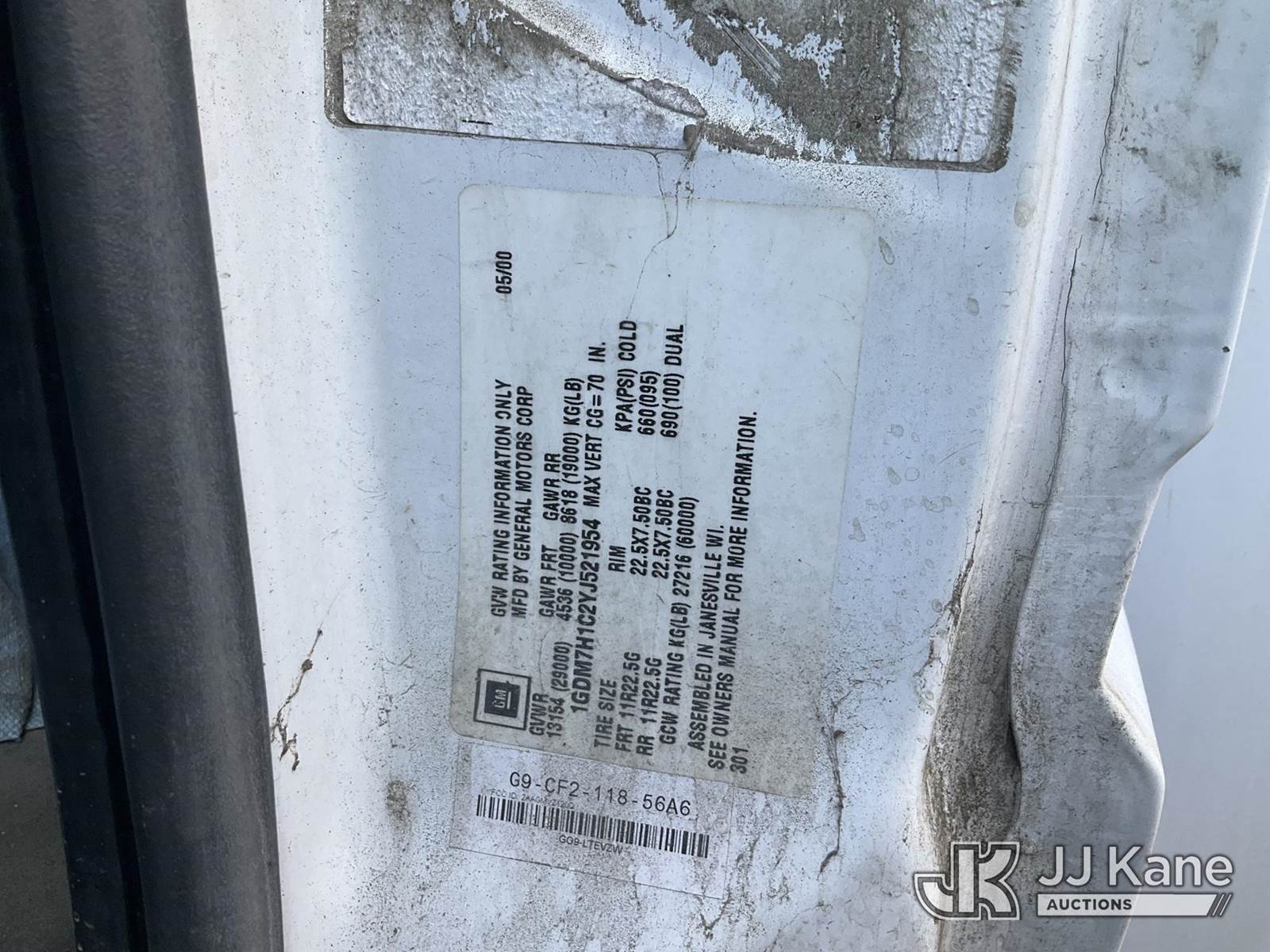 2000 GMC C7H042 Air Compressor Utility Truck, 7.2L L6 TURBO DIESEL 4X2, Auto, A/C, with Air Compressor , (Exempt from Odometer Disclosure - Reads 036,665 miles) compressor diesel (Not Running, Condition Unknown) (Will Need To Be Towed, Drive Shaft Disconnected, air Compressor Not Running) (Bidding Restricted to Licensed Vehicle Dealers Only), Subject to CARB Regs,CARB non Compliant,Cannot Operate on CA Roads/Highways until Compliant This is a Titled Item NOTE: This unit is being sold AS IS/WHERE IS via Timed Auction and is located in Jurupa Valley, CA. Inspection & preview days for this unit are the 2 business days prior to the first day of items closing for this auction, item is located at 4510 Muth Way Jurupa Valley, CA 92509 and hours of operations are 8a-4p. For pre-sale questions, please contact please contact Office Staff @ (310) 353-7140. Dealer License Number 45696. (Buyer is responsible for removal. Assistance by consignor or JJ Kane Auctions is not assured.)