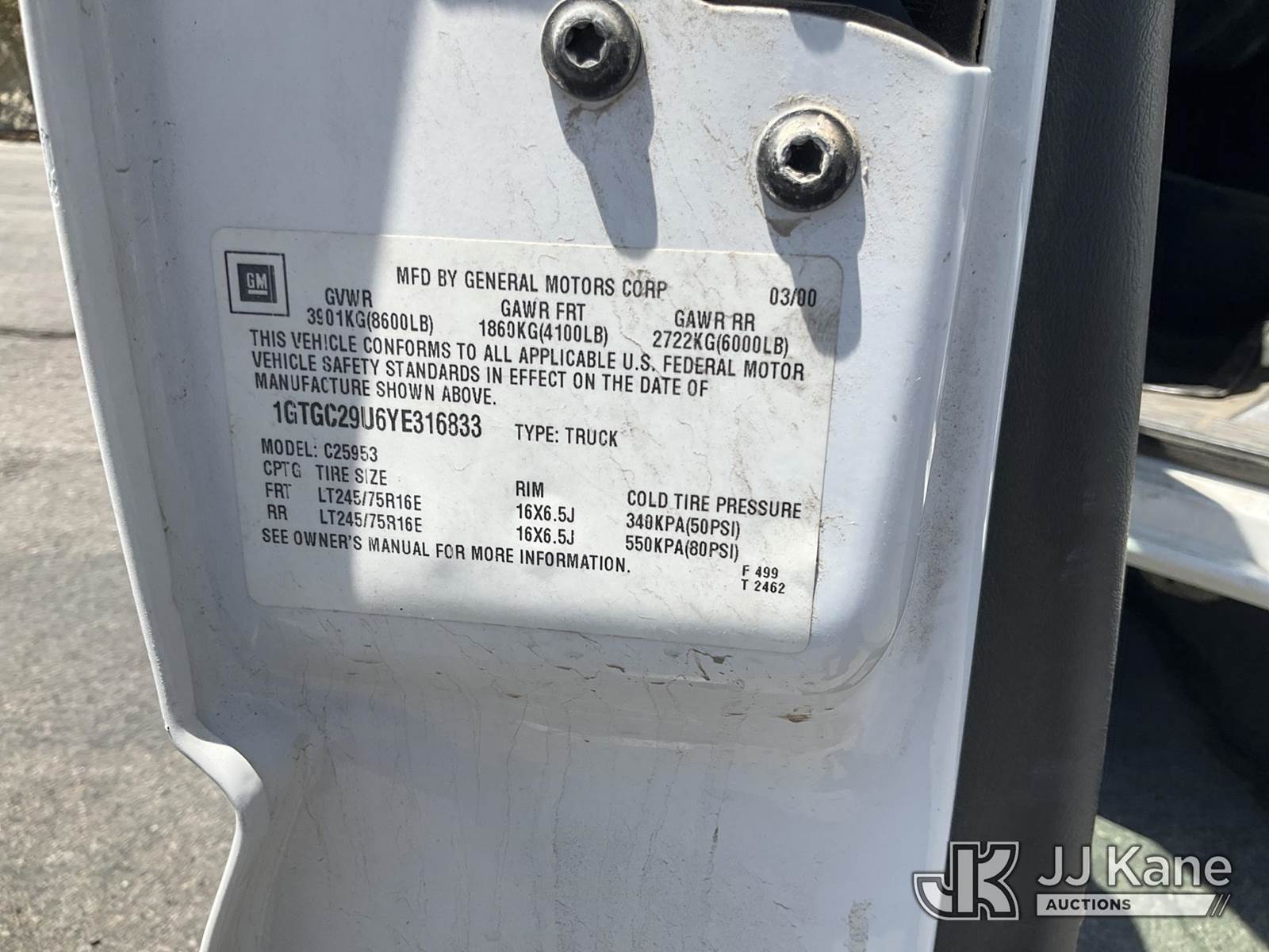 2000 GMC Sierra 2500 Extended-Cab Pickup Truck, 8-cyl gas, Auto, A/C, with service cap, (Exempt from Odometer Disclosure - Reads 95,295 miles) (Runs & Moves) (Bad Battery) This is a Titled Item NOTE: This unit is being sold AS IS/WHERE IS via Timed Auction and is located in Salt Lake City, UT. Titles executed exactly as bidder registered. Ensure your name and/or business name and address in JJ Kane and/or ProxiBid is correct before bidding. For more information or removal arrangements please call 801-519-0123 and provide sale date and lot number. (Buyer is responsible for removal. Assistance by consignor or JJ Kane Auctions is not assured.)