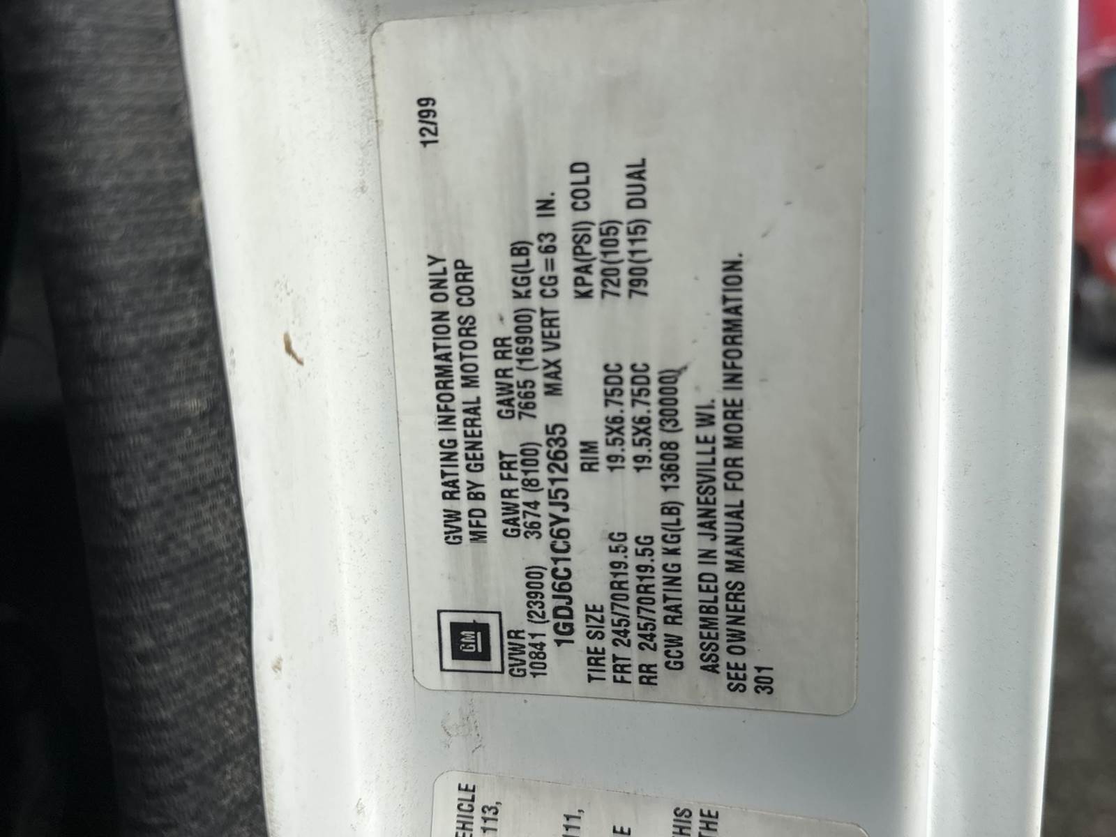 VIN:1GDJ6C1C6YJ512635