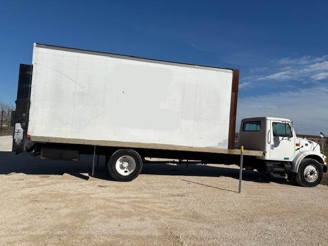 2000 INTERNATIONAL 4700- 26' Moving truck w/ side door and roll-up back door attic. Class 6, 80" wide steel cab, hydraulic brakes, 4x2,...