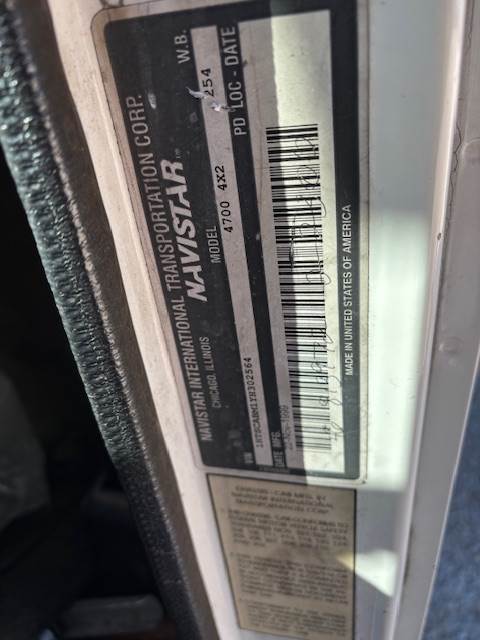 2000 International 4700 4x2 Box Van, International 7.36 Liter Engine, automatic 4 speed transmission, 253 inch wheelbase, 249767 miles and 9509 hours. Wood floors. Custom Bed with Lift, New Air Bags, Air Ride Suspension, 4000 lb Liftgate, New Rear End Suspension, A/C, Covered Bed is 9 ft tall, 247 inch long and 8 t wide. Total Bed Length 296 inches.