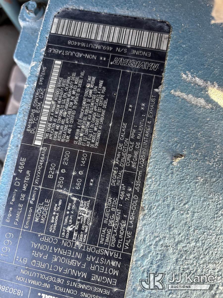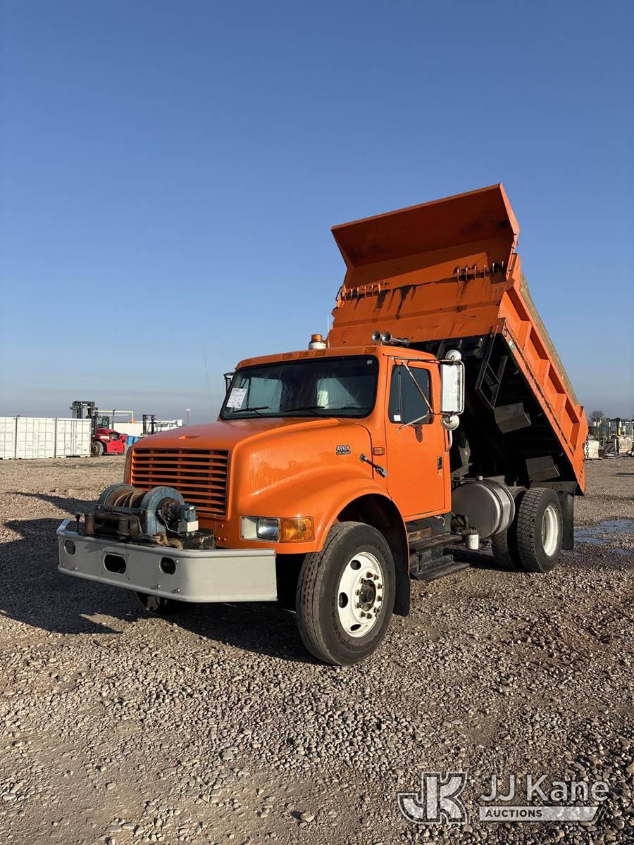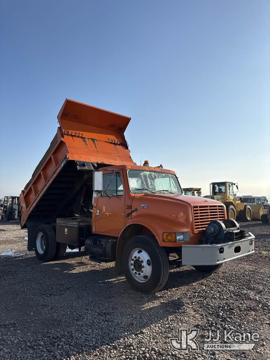2000 International 4900 Dump Truck, 7.6L L6 DIESEL 4X2, 8-spd + Lo & Lo-Lo, A/C, with front winch, (Exempt from Odometer Disclosure - Reads 171,662 miles) (Runs, Moves & Operates) (Reads 10,828 hours) May be subject to ARB Regulations This is a Titled Item NOTE: This unit is being sold AS IS/WHERE IS via Timed Auction and is located in Dixon, CA. Inspection & preview days for this unit are the 2 business days prior to the first day of items closing for this auction, item is located at 8668 Sparling Ln Dixon, CA 95620 and hours of operations are 8a-4p. For pre-sale questions, please contact JJ Kane Staff at (707) 678-8060 (dixon@jjkane.com). Dealer License Number 45696. (Buyer is responsible for removal. Assistance by consignor or JJ Kane Auctions is not assured.)