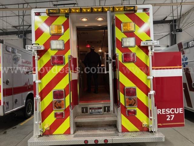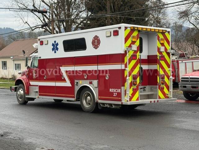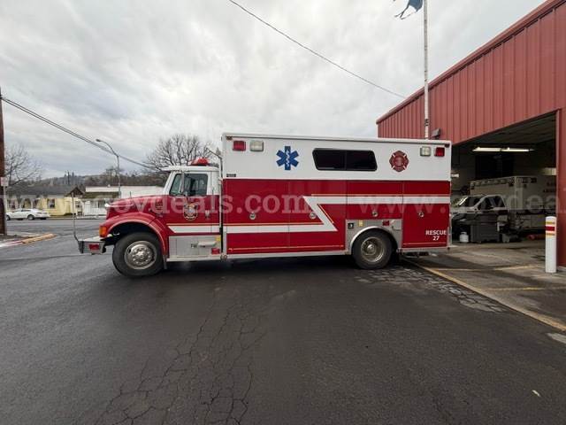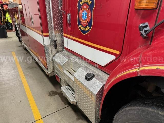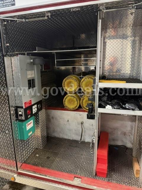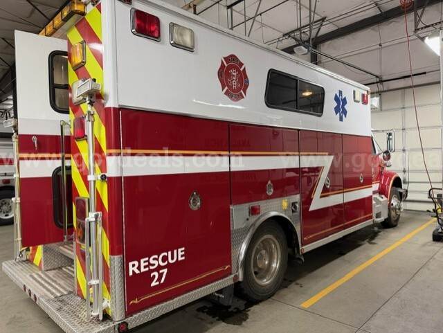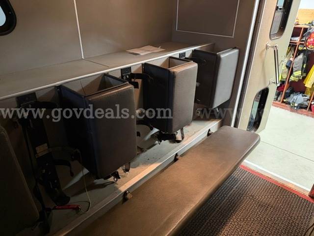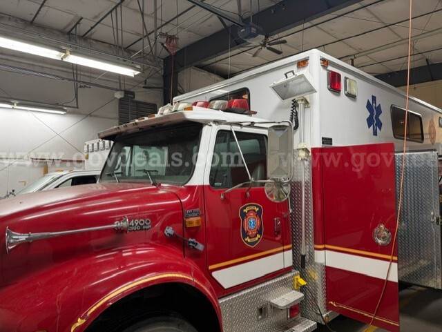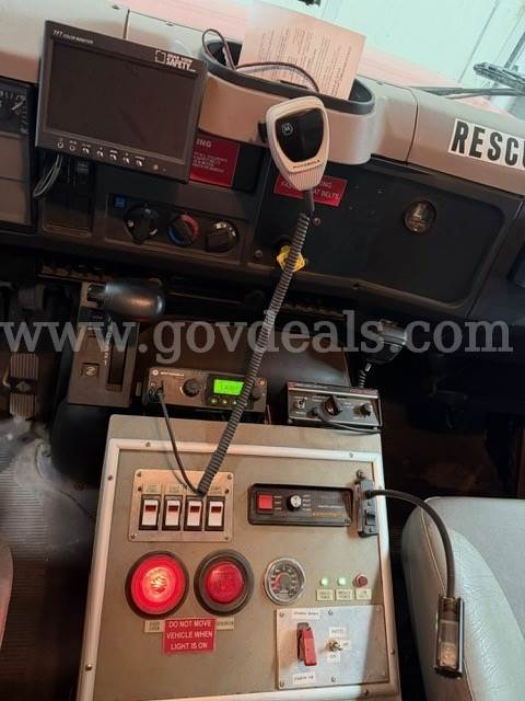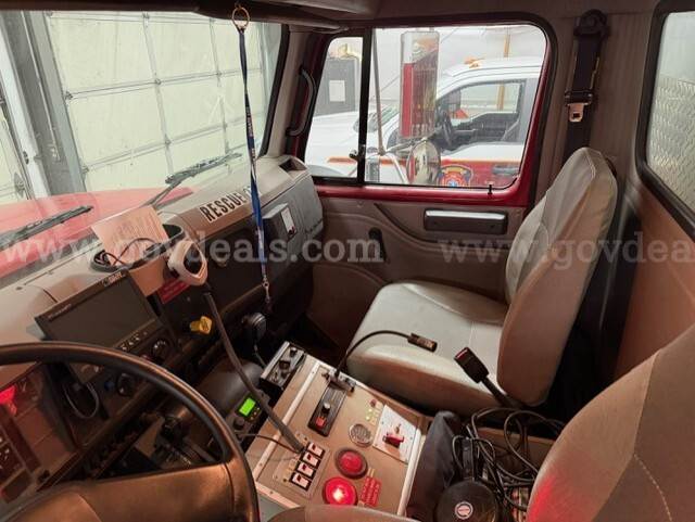 2000 International Navistar 4900 300HP Fire Truck 7.6L Diesel 2WD. Starts and runs 1586.1 hours Engine / Automatic Transmission Runs Maintained every 30 days Date removed from service 12/2024 Tires have auto-chains Exterior has scratches Good tire condition; medium tread; aluminum hubcaps Comes with Motorola PM 1500 radio AC runs Cold Power steering, tilt steering Gross Vehicle Weight (GVW): 13,771 KG/30,360 LB Clearance 11 FT Comes with lightbar Onan Protec PTO generator 4 Large K bottle airfill (manual) 4 exterior telescoping lights