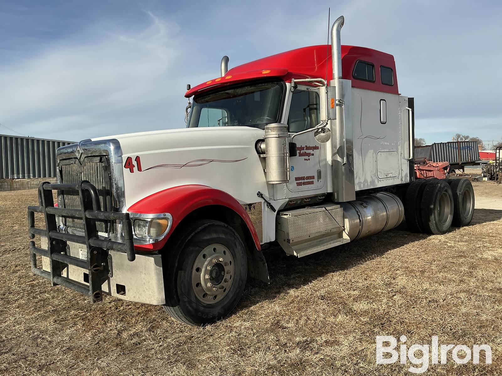 2000 International T/A Truck Tractor w/Wet Kit, 594,717 miles Showing, Title Will Be Marked Miles Exempt, Caterpillar C-15 6-Cylinder Diesel, Water Cooled Engine, 13-Speed Transmission, Air Suspension, Aluminum Wheels, Adjustable 5th Wheel, Double Fuel Tank, Double Exhaust Stack, Grill Guard, A/C, Heater, 315/80R22.5 Front Tires, 11R24.5 Rear Tires, VIN: 2HSCKASR5YC068783NE